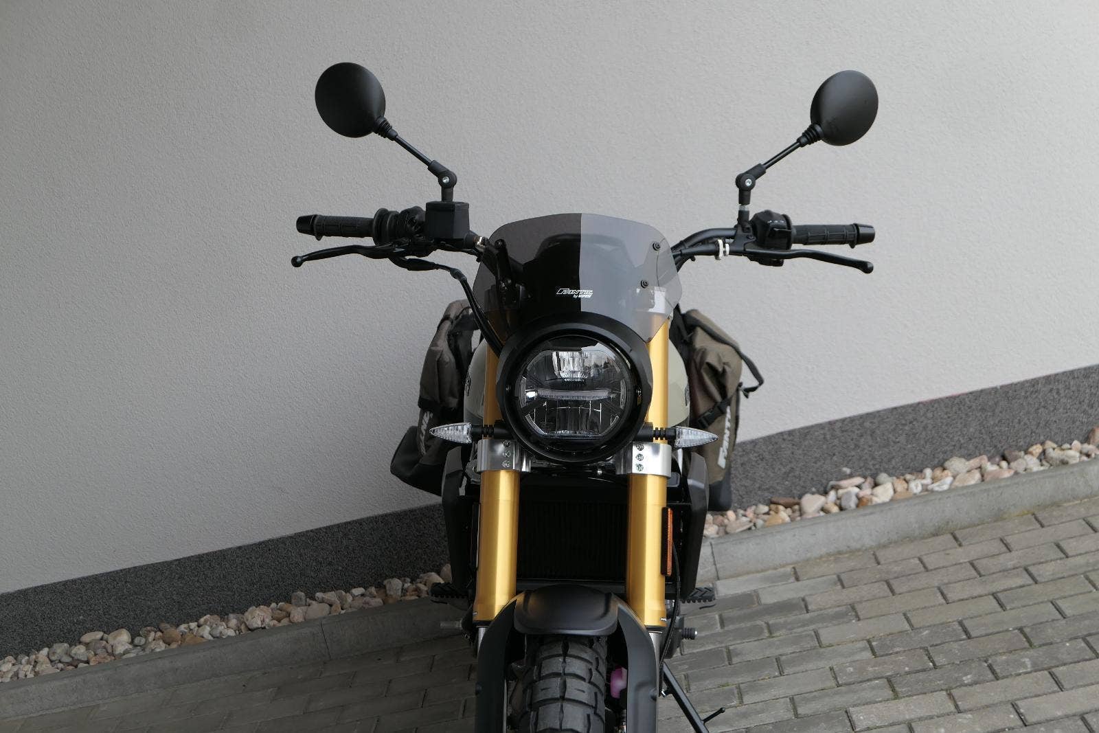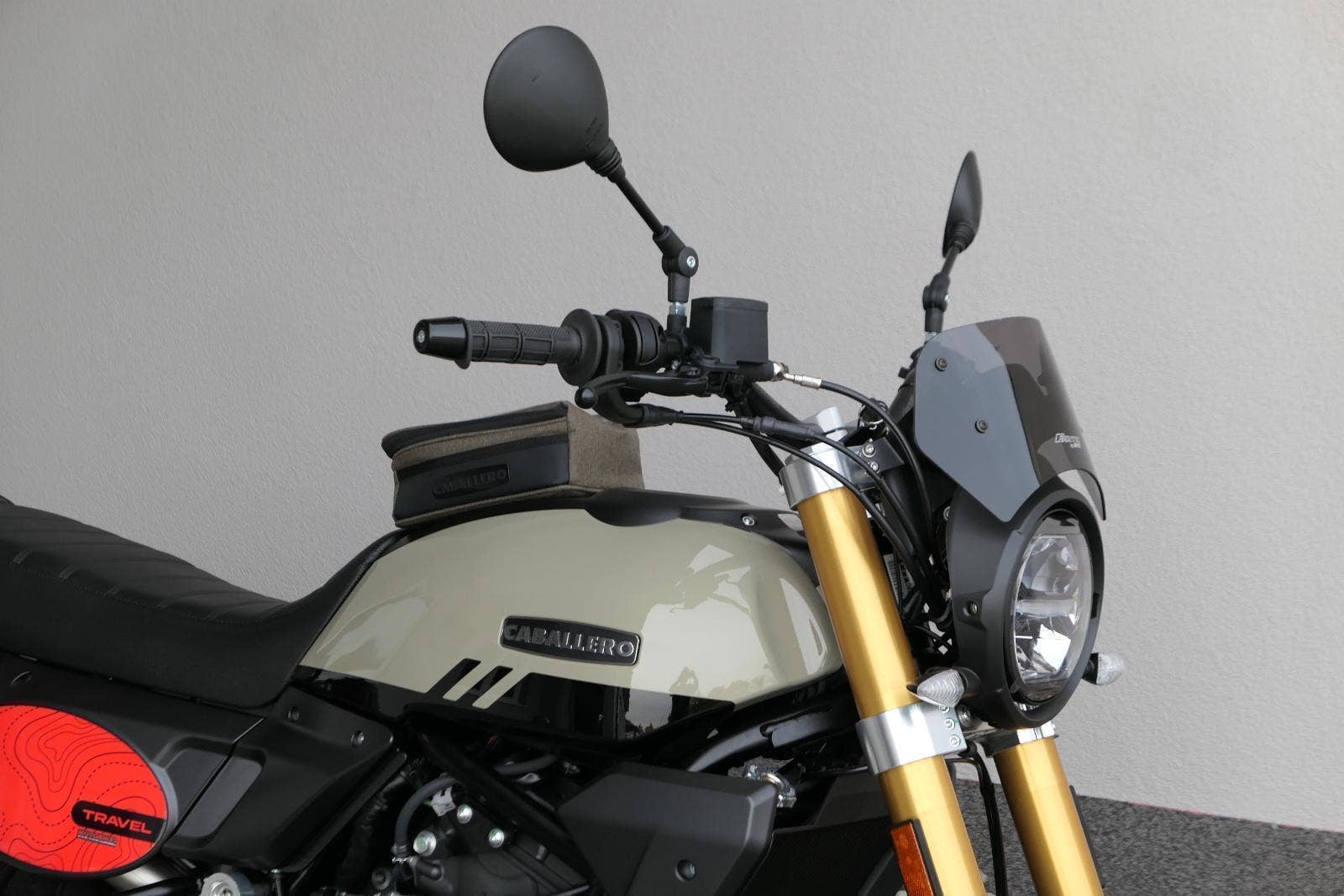 Caballero 700 spojuje výkon paralelního dvouválce Yamaha CP2, špičkovou elektroniku s náklonovým ABS – s možností deativace přímo z řídítek – a nastavitelnou kontrolou trakce, prémiový podvozek Marzocchi a brzdný systém Brembo. Díky nízké hmotnosti 175 kg, 19″ a 17″, drátovým kolům a optimalizovanému odpružení zvládá s lehkostí silnice i terén, přesně tak, jak se na autentický scrambler patří.