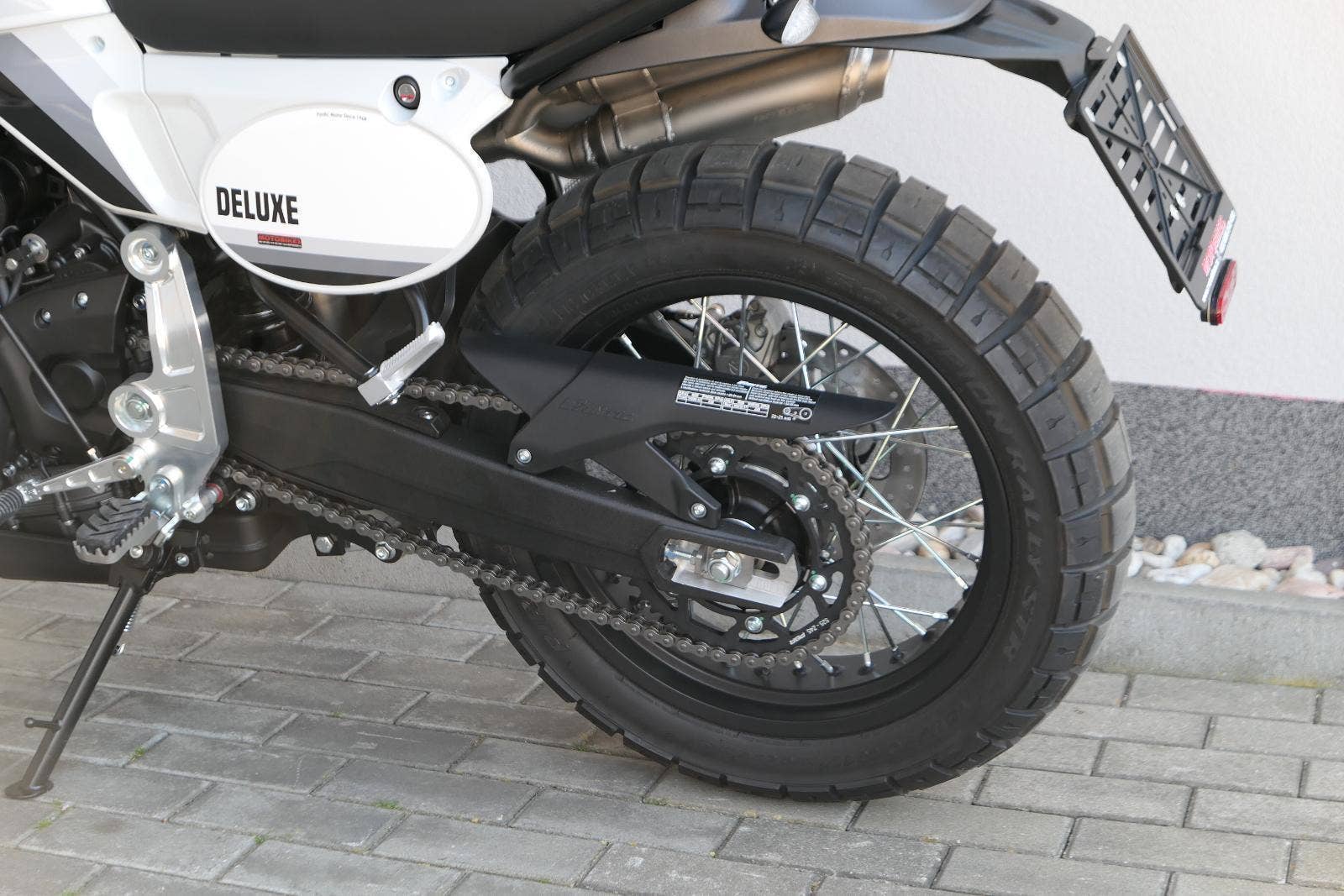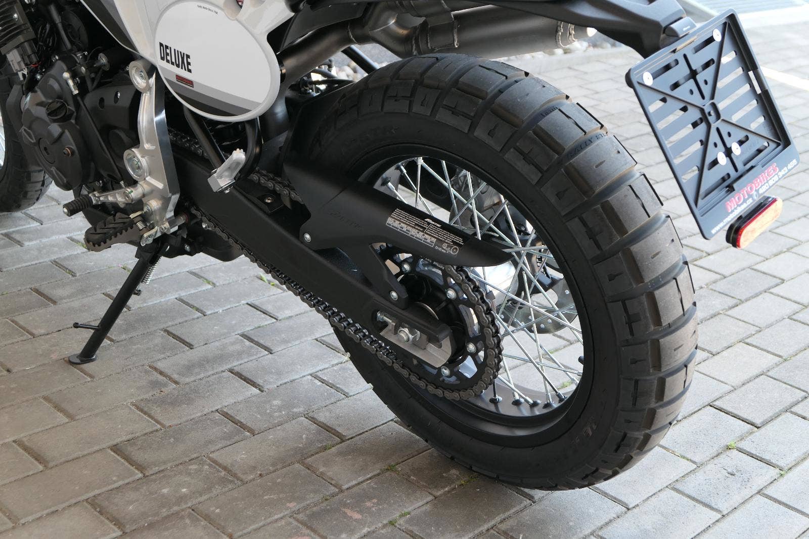 Verze Deluxe představuje designovou evoluci základního modelu Scrambler, která přináší promyšlený design v nové barvě Campovolo Grey v odstínech šedé s třemi modrými pruhy. Oproti verzi Scrambler najdete na Deluxe hrazdová řídítka.