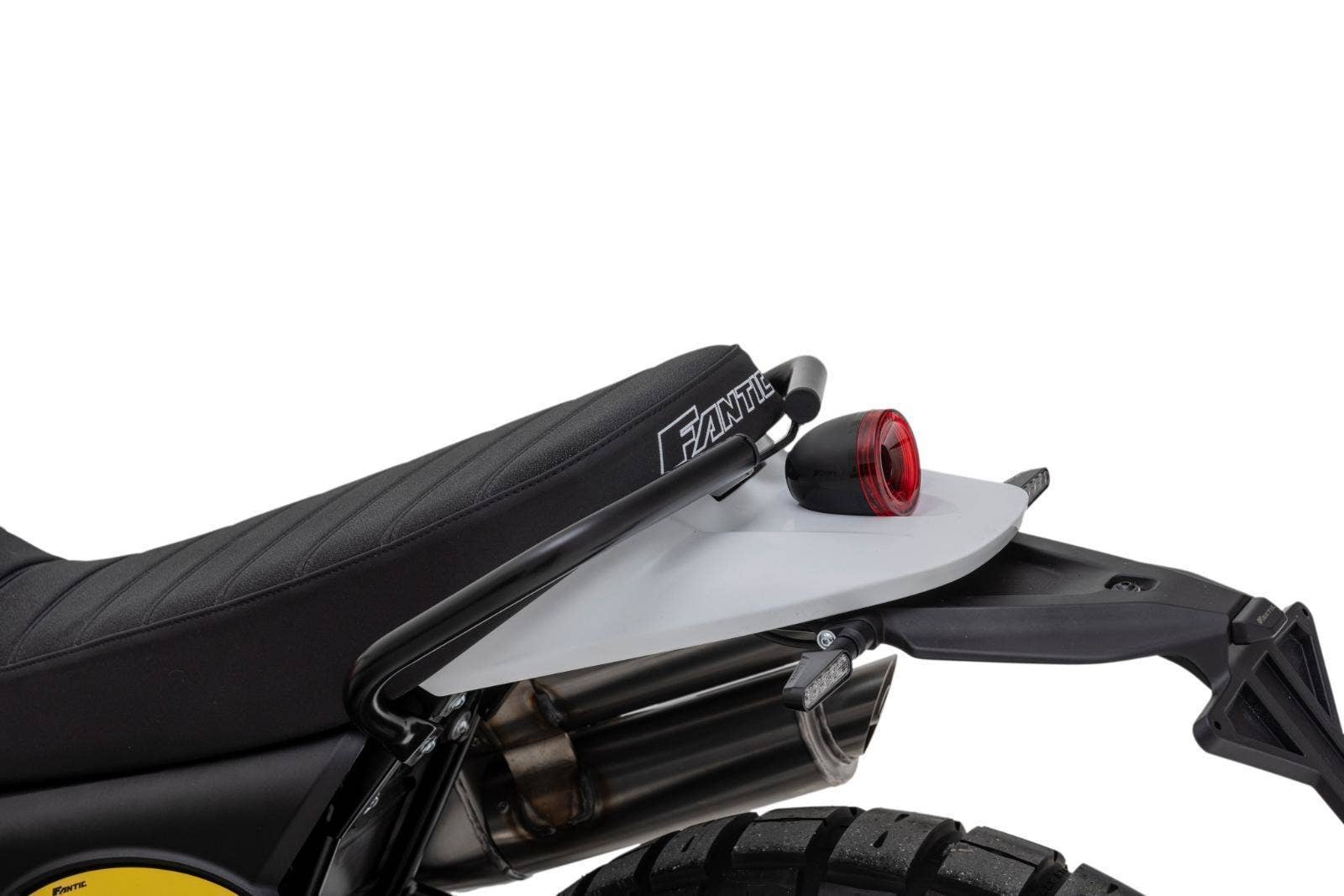 Přední 41mm USD vidlice FANTIC FRS má zdvih 150 mm, zadní odpružení se stejným zdvihem je také tovární FANTIC FSR. U verze Scrambler je nastavitelný odskok u zadního tlumiče.