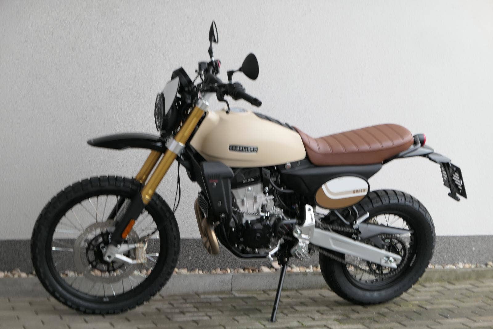 Caballero 500 Rally od Fantic Motor je navrženo pro ty nejextrémnější off-roadové podmínky, kombinuje odvážný design s vysoce účinnými technickými komponenty. Každý detail je vymyšlen s ohledem na odolnost a funkčnost: vysoký přední blatník, kryt motoru, ochranná mřížka světlometu i přední startovní tabulka zdůrazňují jeho dobrodružný charakter.