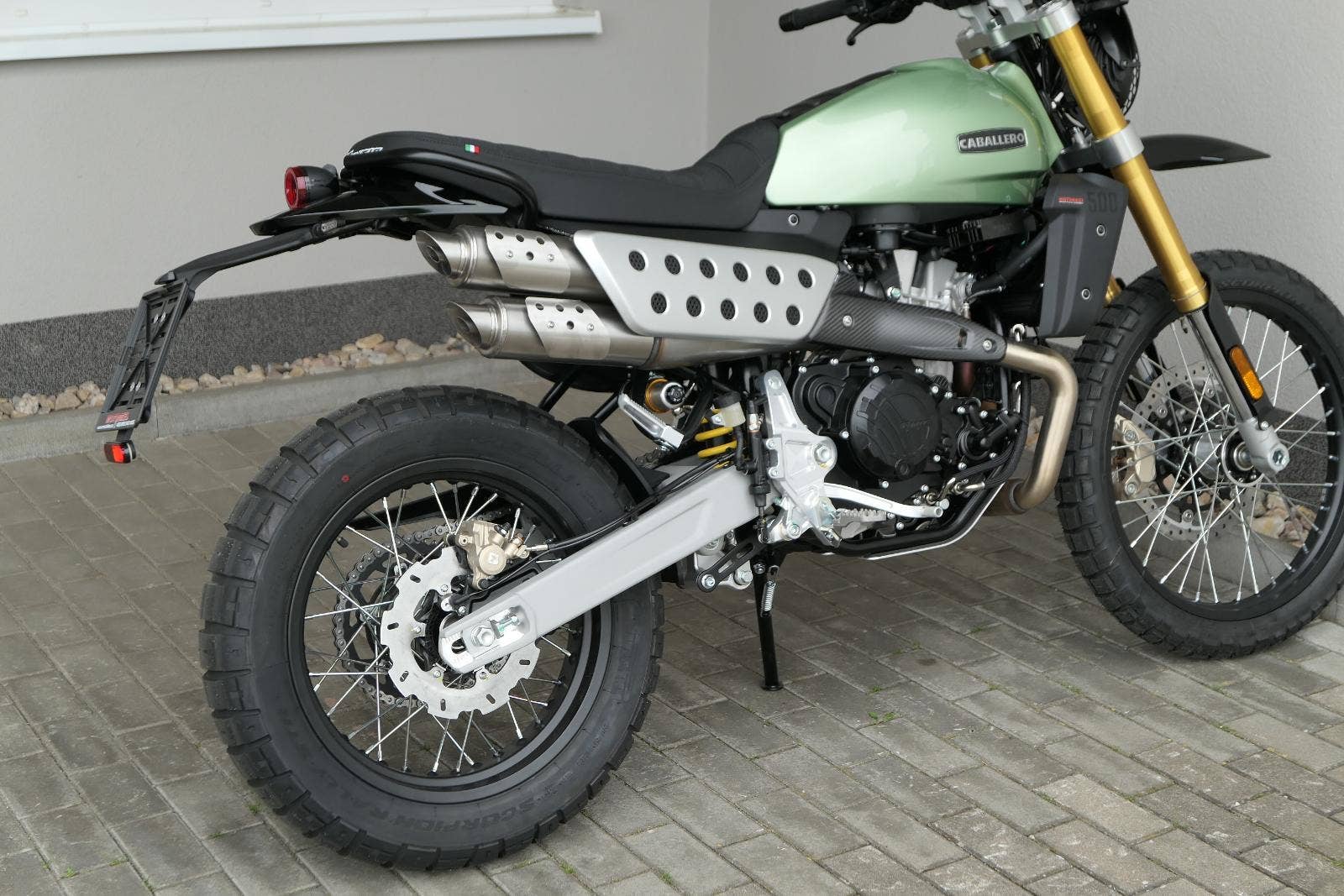 Caballero 500 Rally od Fantic Motor je navrženo pro ty nejextrémnější off-roadové podmínky, kombinuje odvážný design s vysoce účinnými technickými komponenty. Každý detail je vymyšlen s ohledem na odolnost a funkčnost: vysoký přední blatník, kryt motoru, ochranná mřížka světlometu i přední startovní tabulka zdůrazňují jeho dobrodružný charakter.