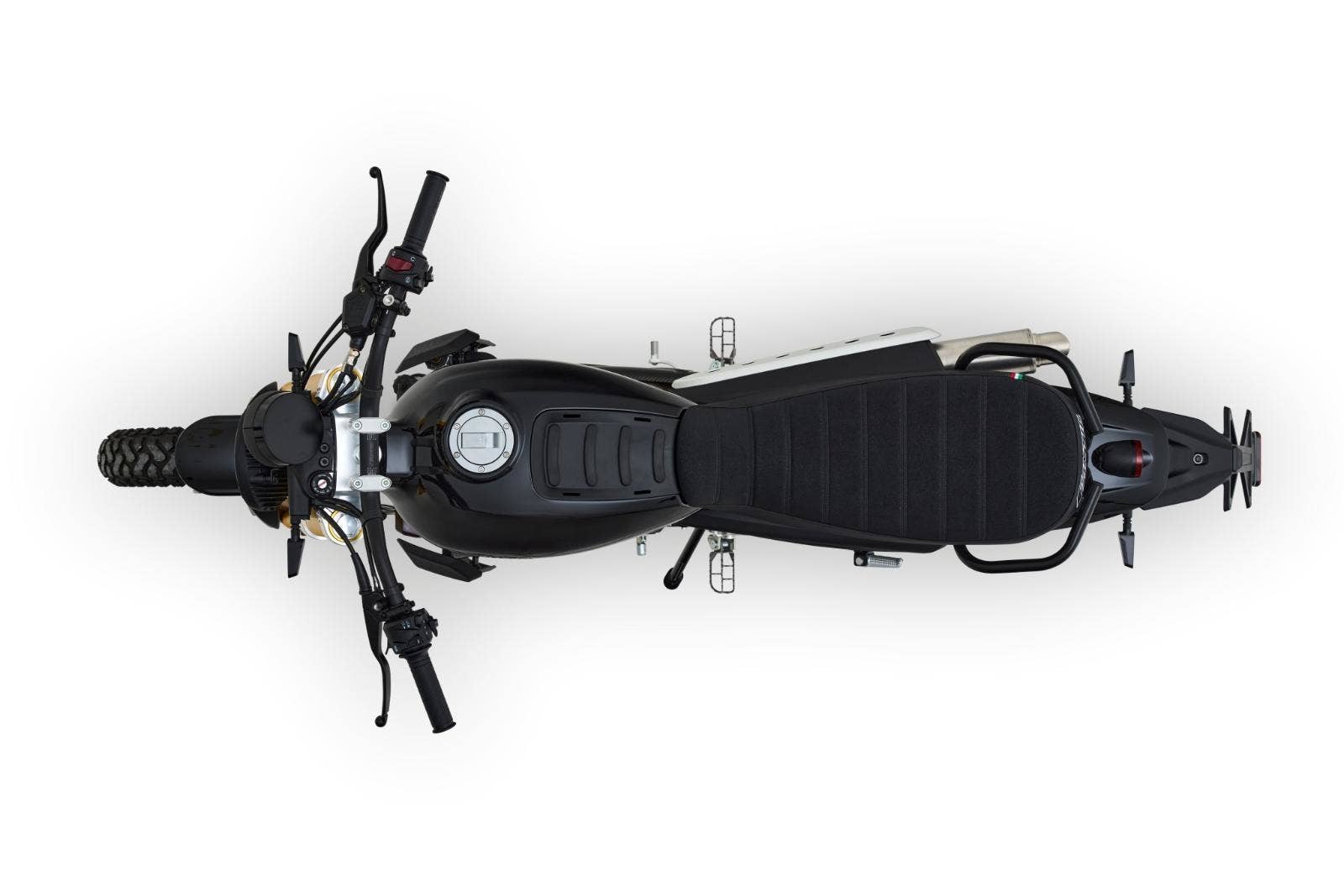 Drátová kola s pneumatikami Pirelli Scorpion Rally (110/80-19 vpředu a 130/80-17 vzadu) dodávají motocyklu autentický scrambler vzhled. 320 mm přední a 230 mm zadní brzdový kotouč a volitelné náklonové ABS Continental zaručuje skvělou bezpečnost v každé situaci.