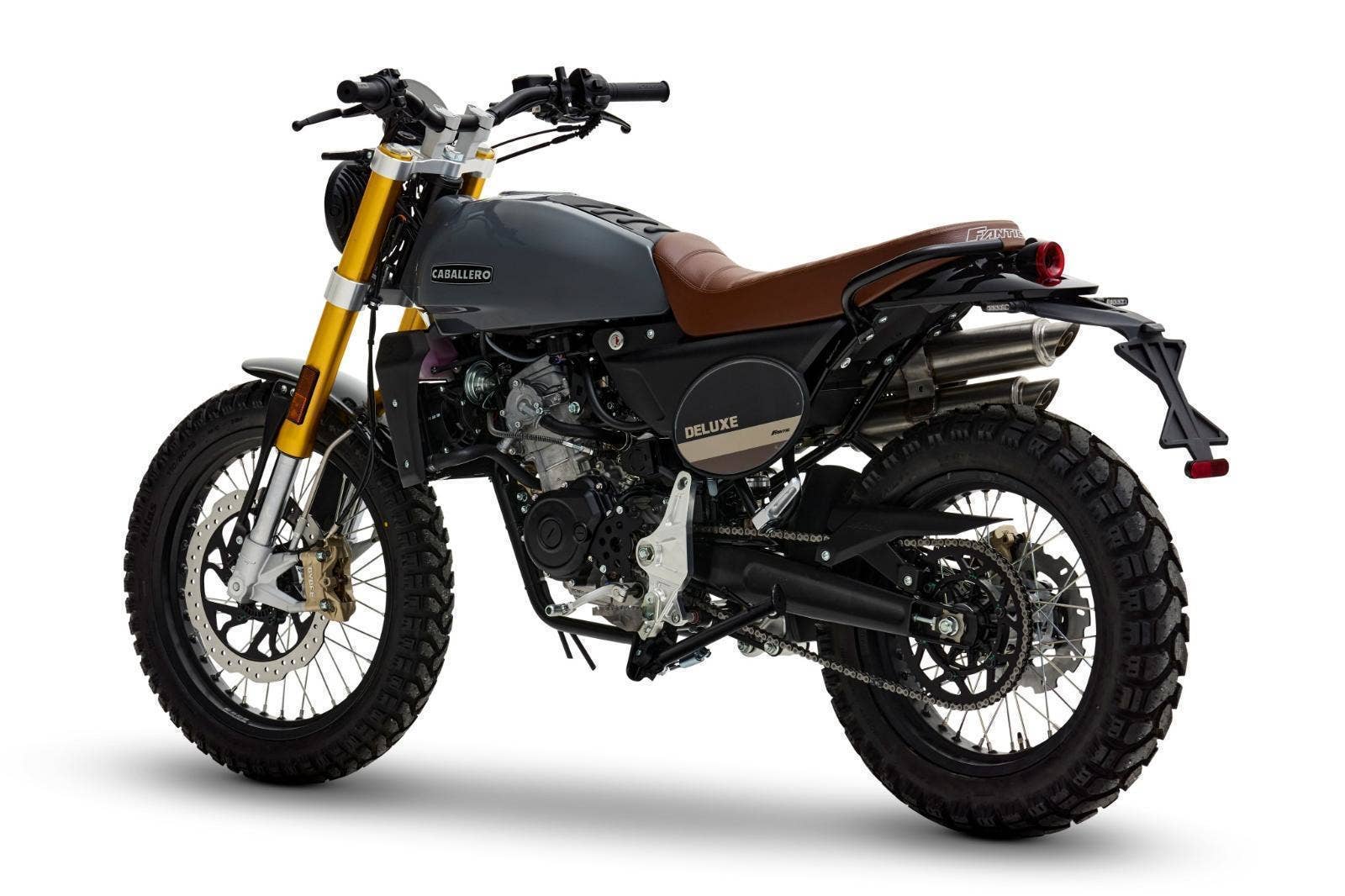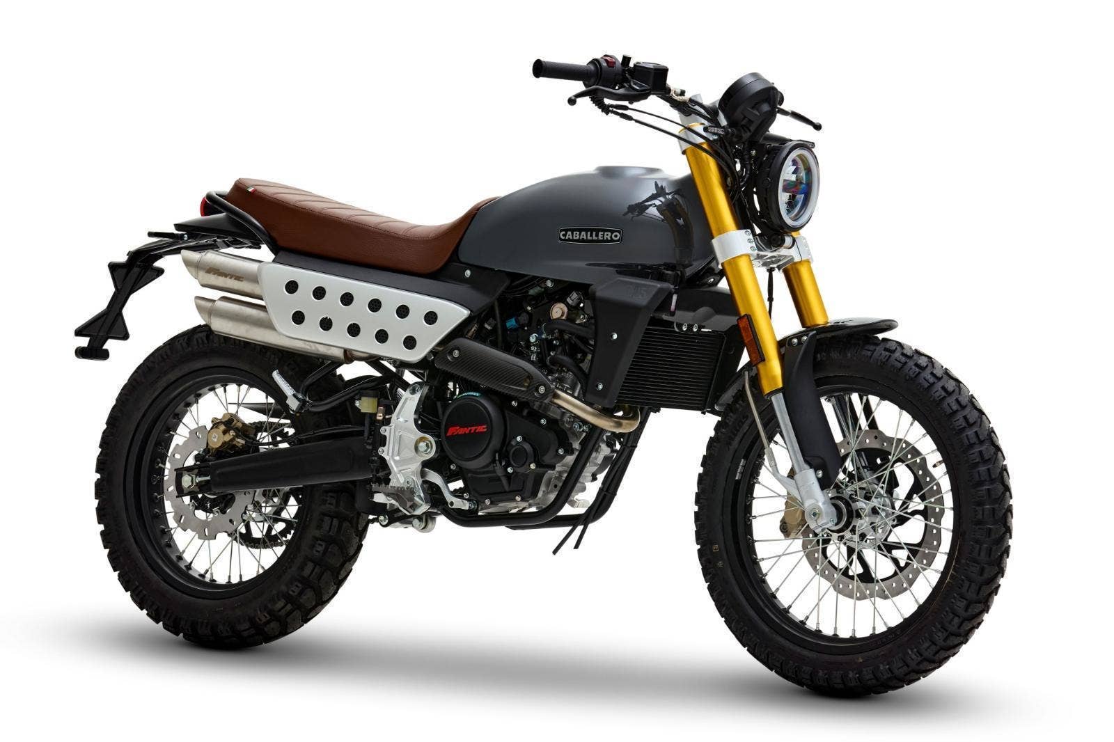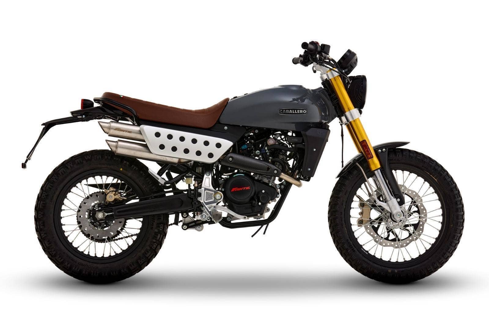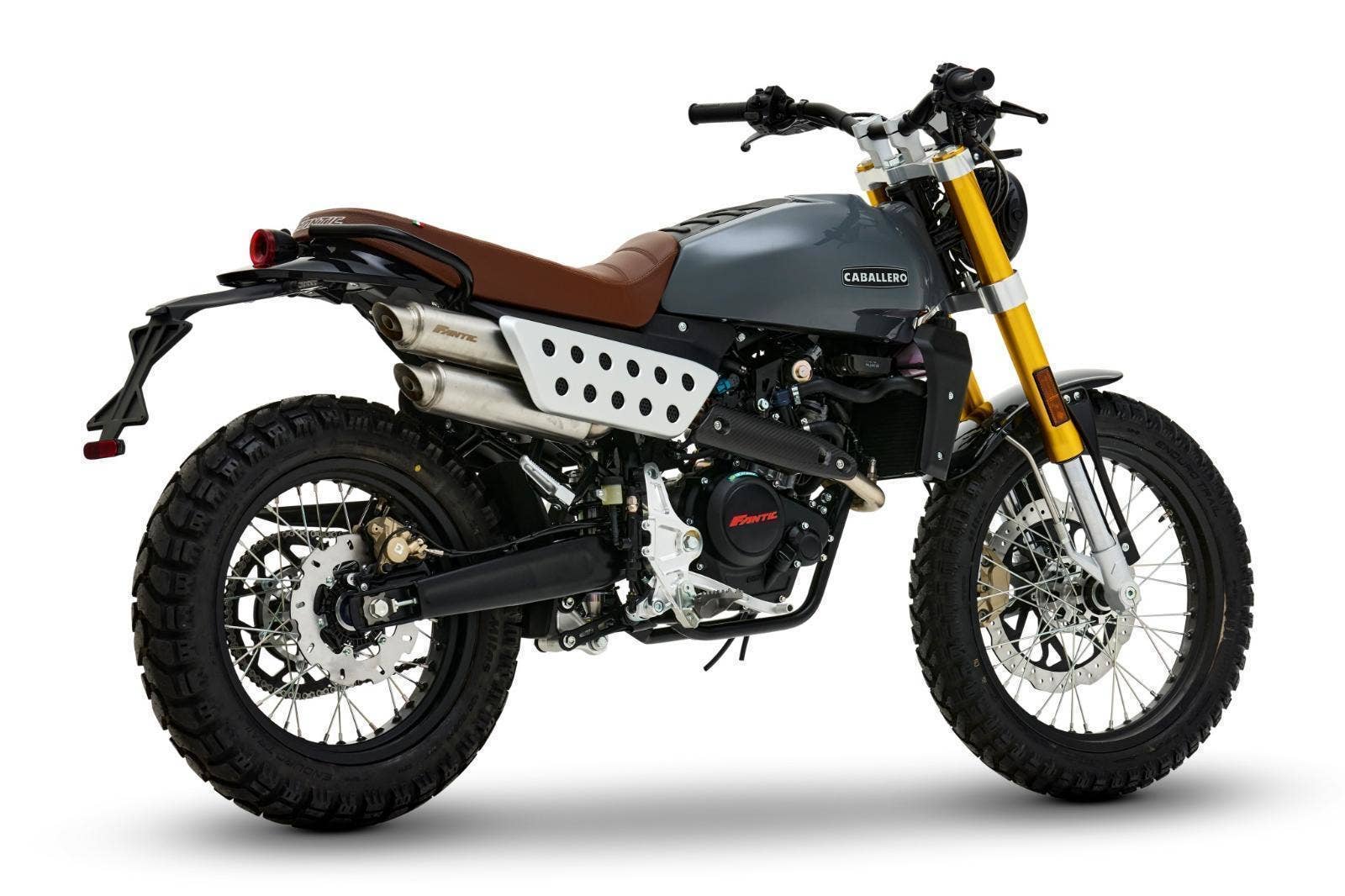 Luxusně lakovaná palivová nádrž a barevně sladěná boční závodní tabulka inspirovaná ikonickým Fantic Motor Caballero ze 70. let. Široká řídítka s off-roadovým tvarem, dvojitý výfukový systém, mnoho CNC detailů, designová přední a zadní LED světla, maximum součástí zakázkově vyráběných v Itálii, to vše dělá z Caballera neodolatelnou hračku pro jezdce všech generací.
