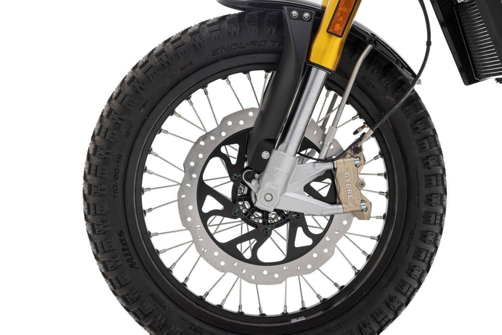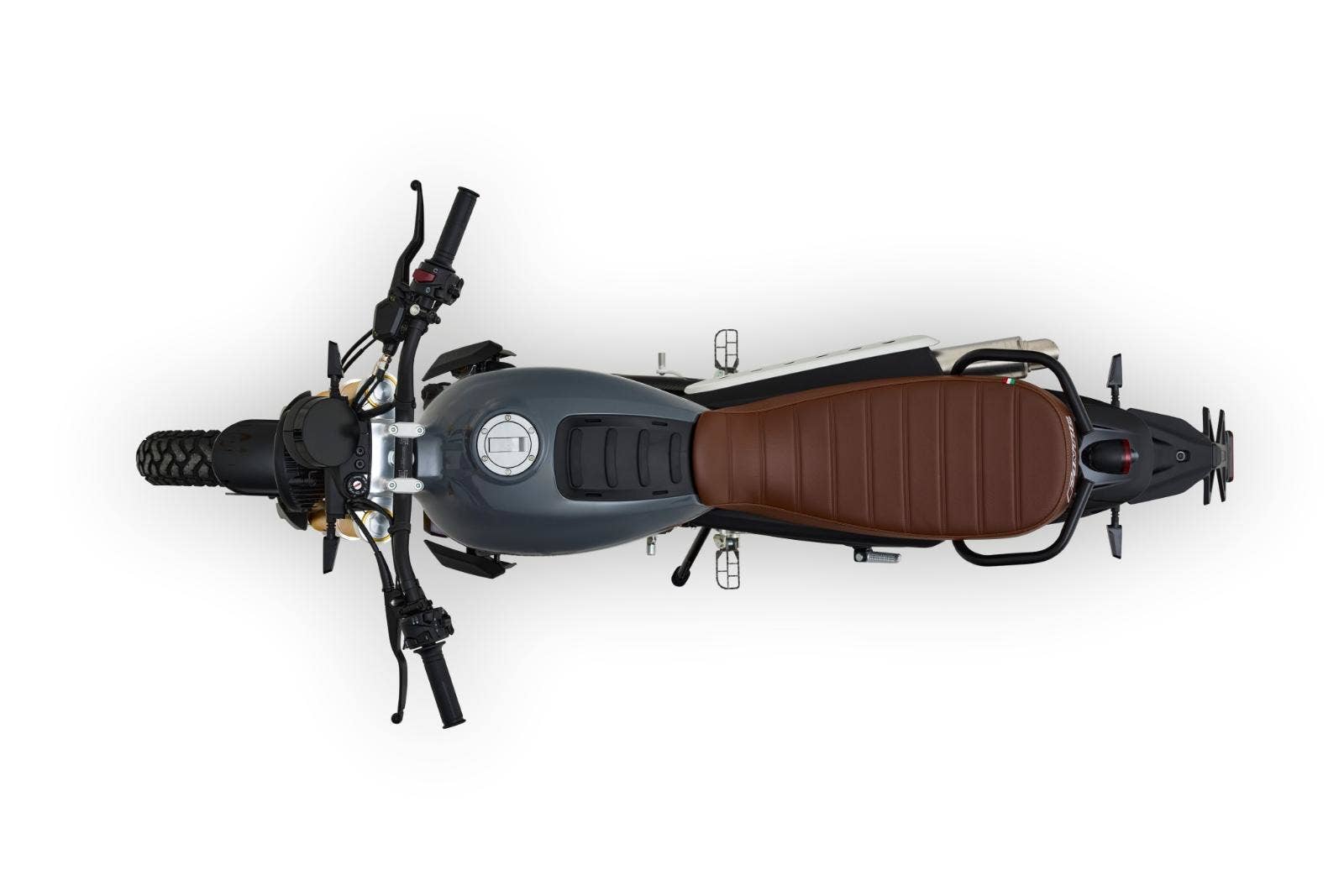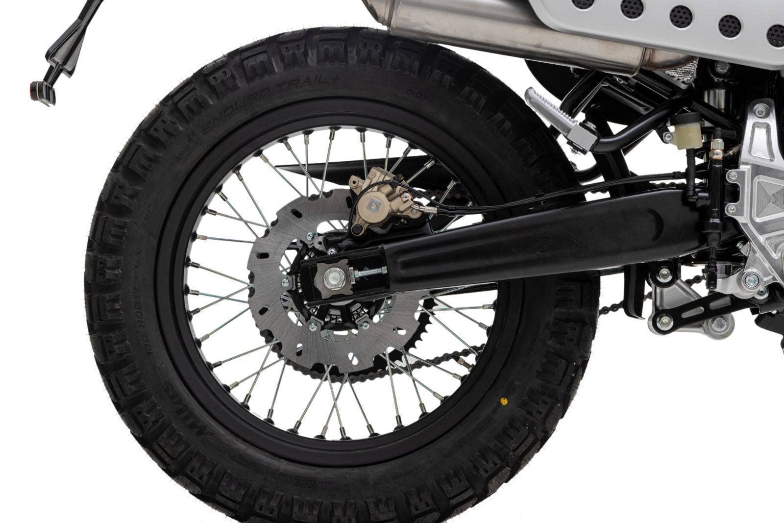 Drátová kola s pneumatikami Pirelli Scorpion Rally (110/80-19 vpředu a 130/80-17 vzadu) dodávají motocyklu autentický scrambler vzhled. 320 mm přední a 230 mm zadní brzdový kotouč a volitelné náklonové ABS Continental zaručuje skvělou bezpečnost v každé situaci.