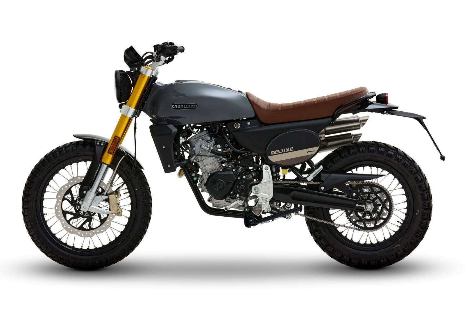 Caballero Deluxe 125 je vyrobeno podle stejných technických specifikací jako provedení Scrambler, ale s důrazem na elegantní vzhled a detaily, jako jsou řídítka s hrazdičkou, kontrastním sedlem a s koženými doplňky nebo a lakovanými blatníky, které ladí s nádrží