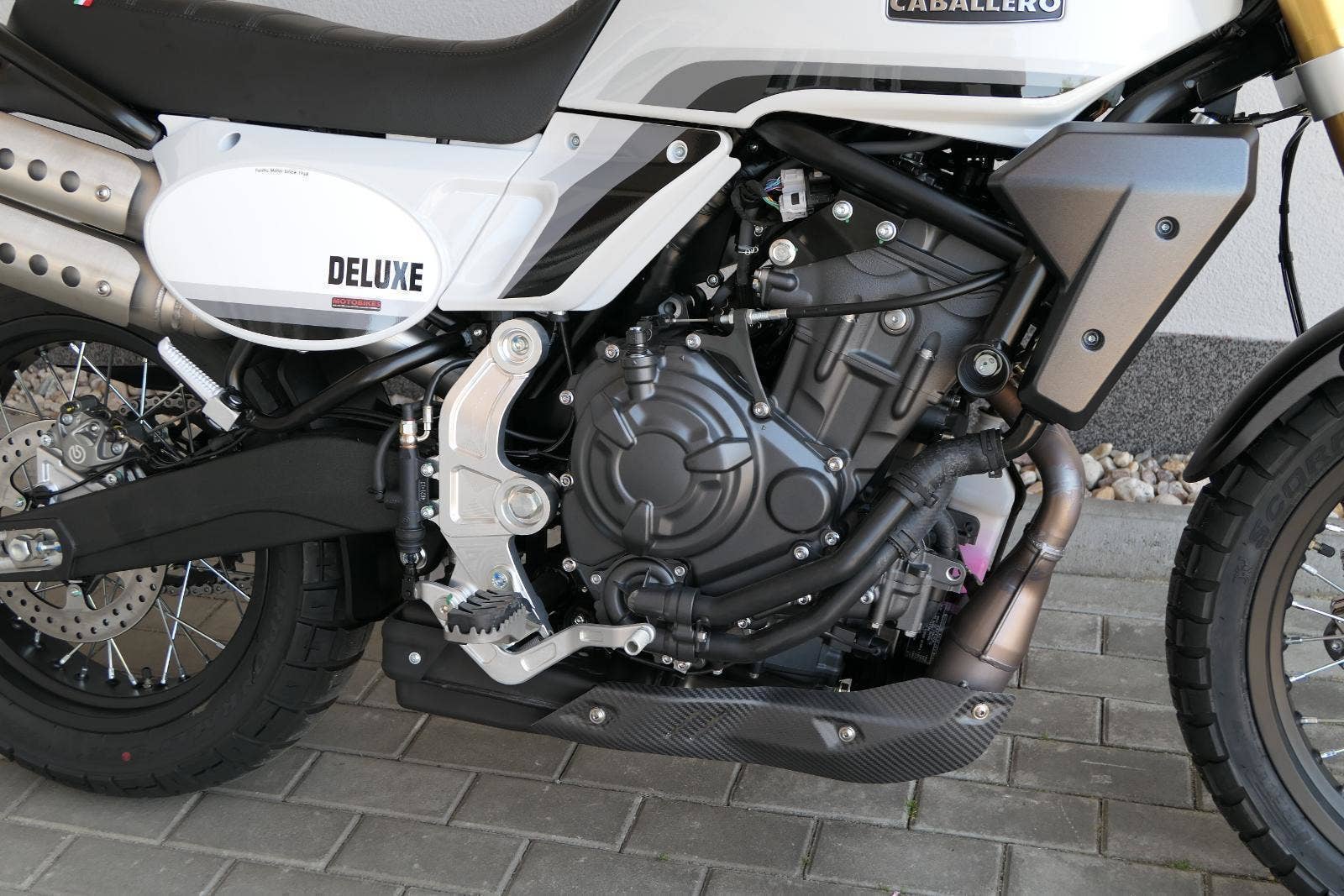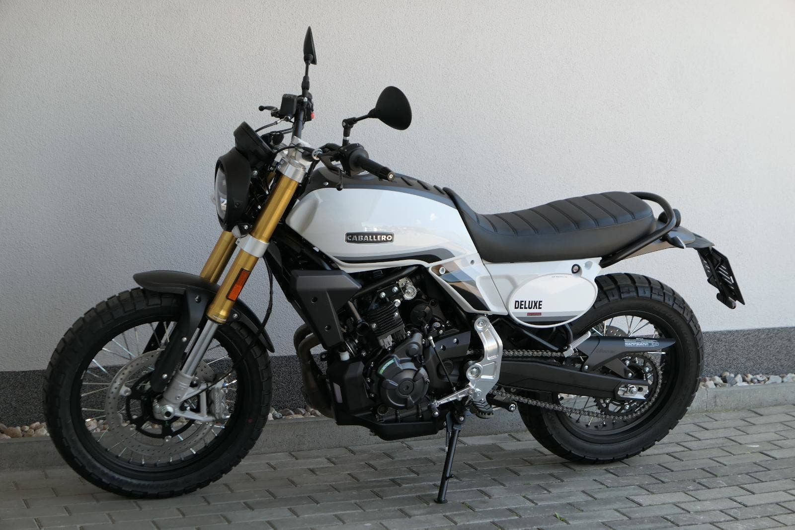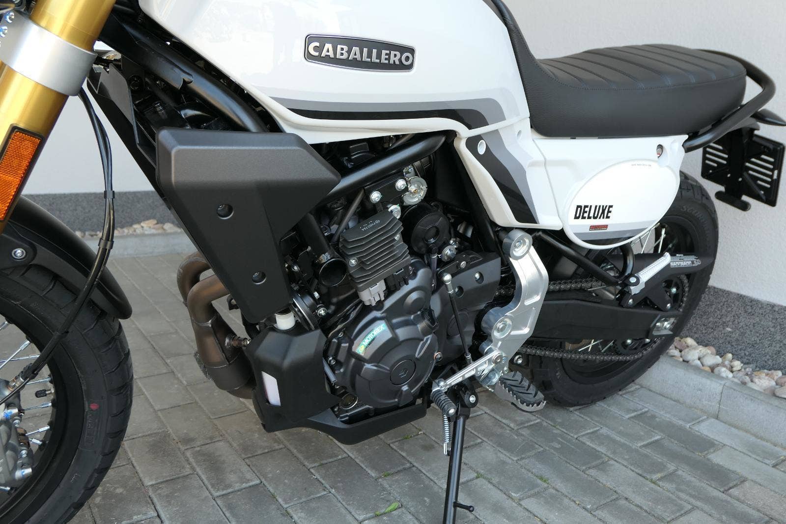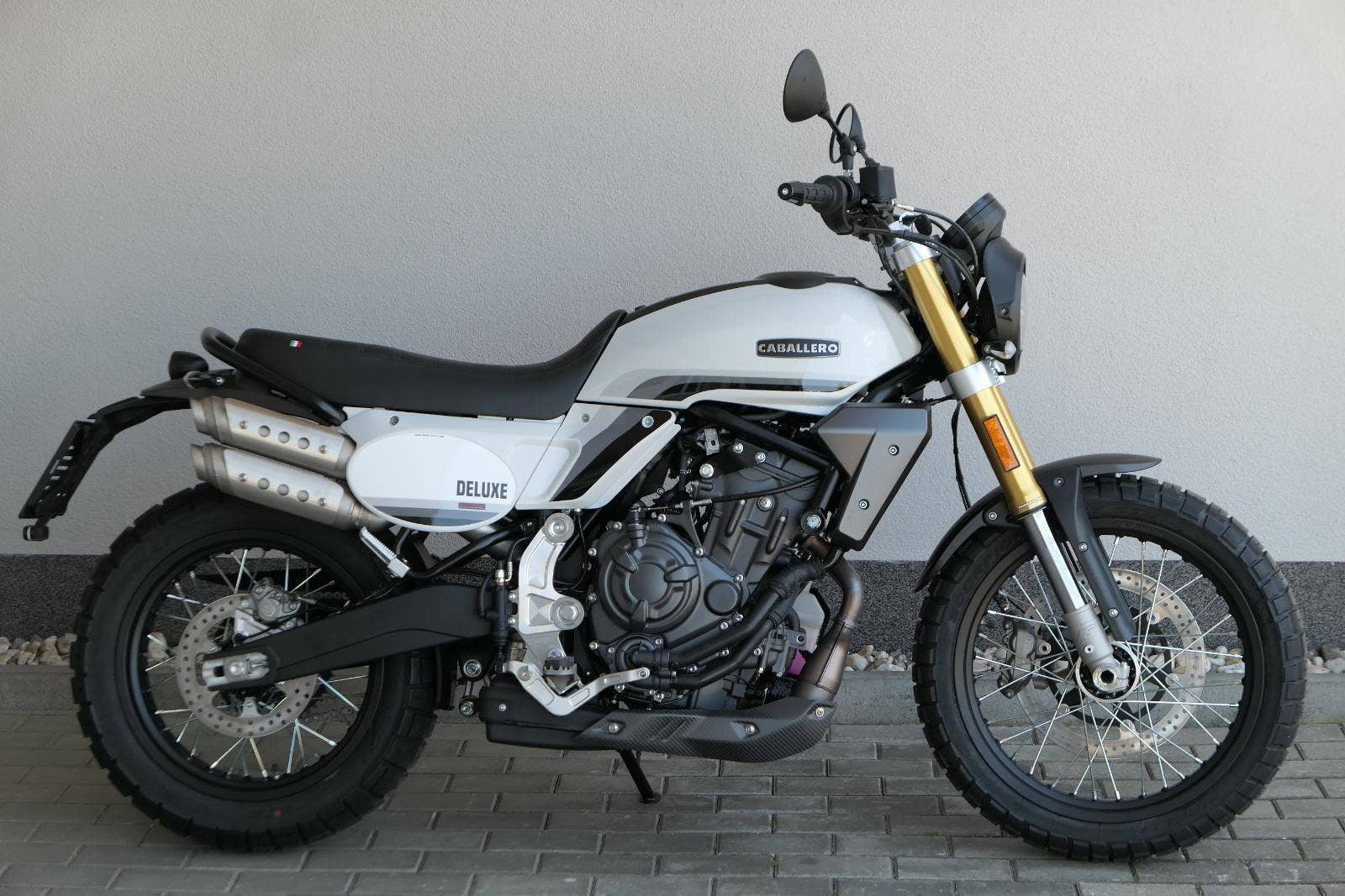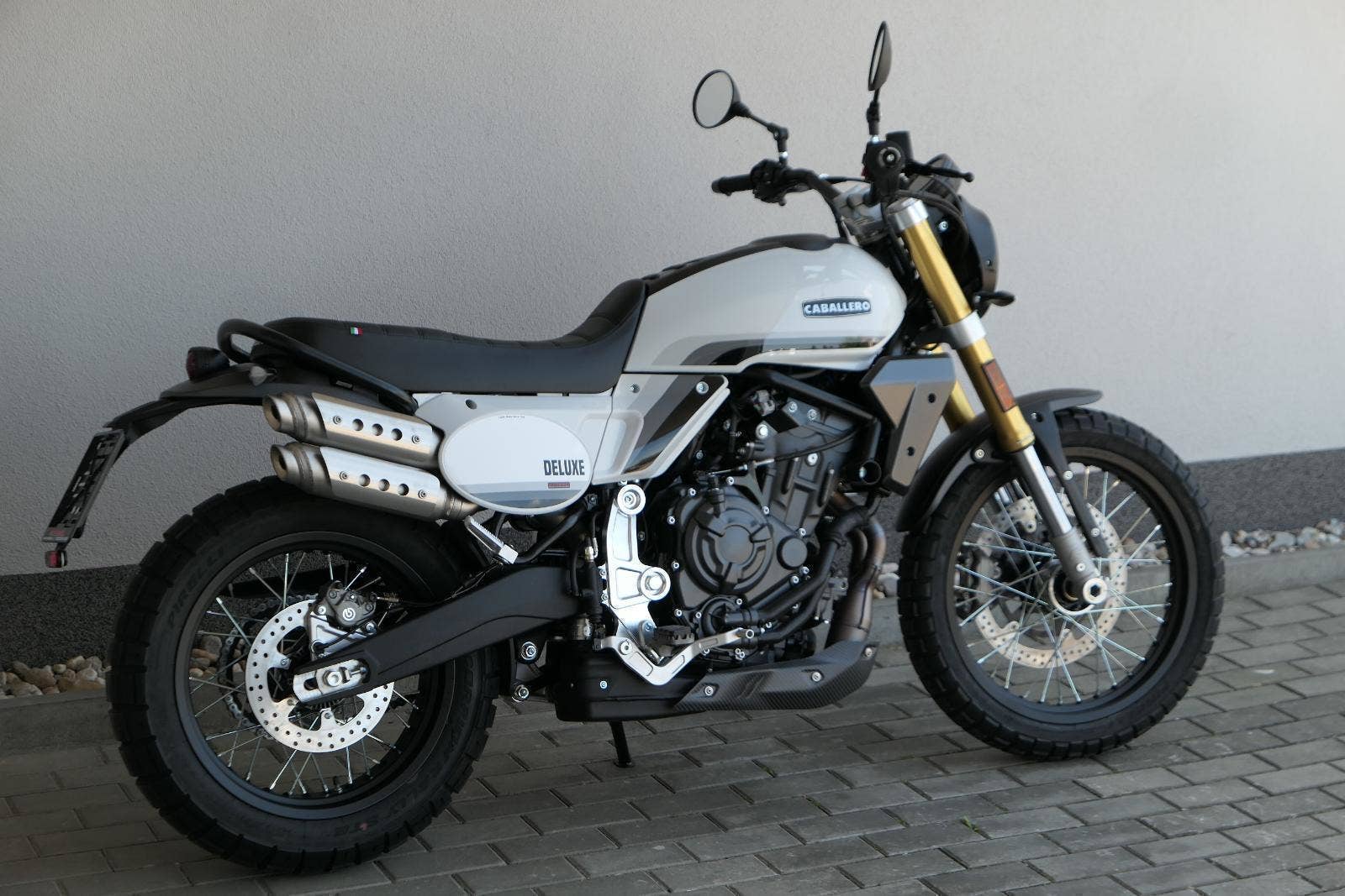 Caballero 700 spojuje výkon paralelního dvouválce Yamaha CP2, špičkovou elektroniku s náklonovým ABS – s možností deativace přímo z řídítek – a nastavitelnou kontrolou trakce, prémiový podvozek Marzocchi a brzdný systém Brembo. Díky nízké hmotnosti 175 kg, 19″ a 17″, drátovým kolům a optimalizovanému odpružení zvládá s lehkostí silnice i terén, přesně tak, jak se na autentický scrambler patří.