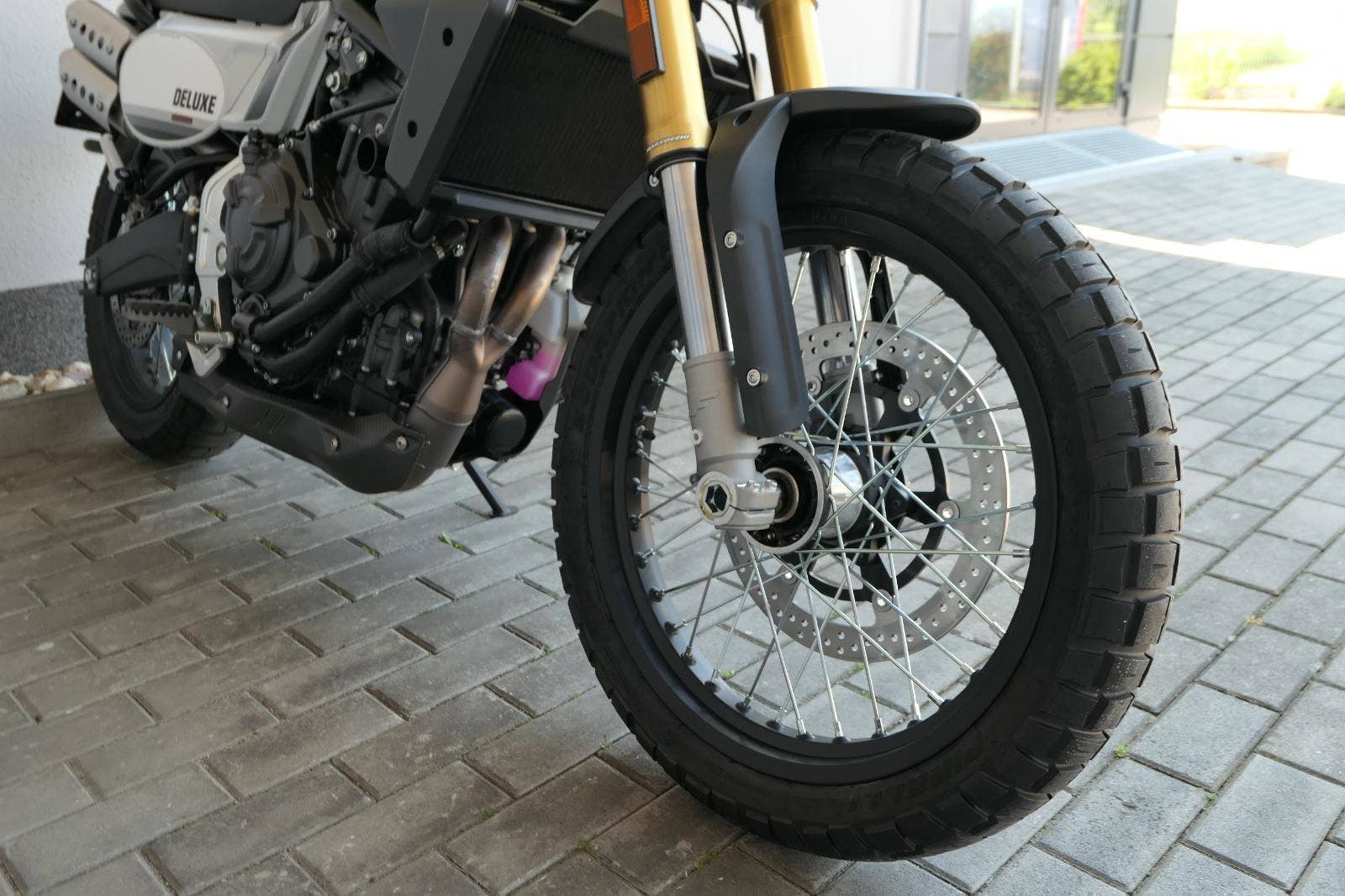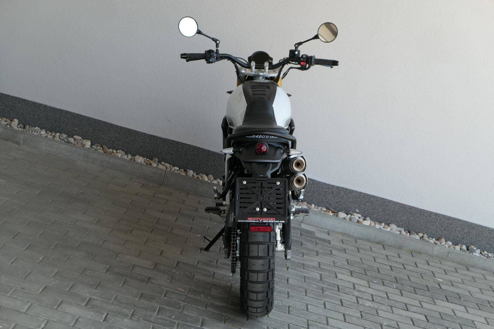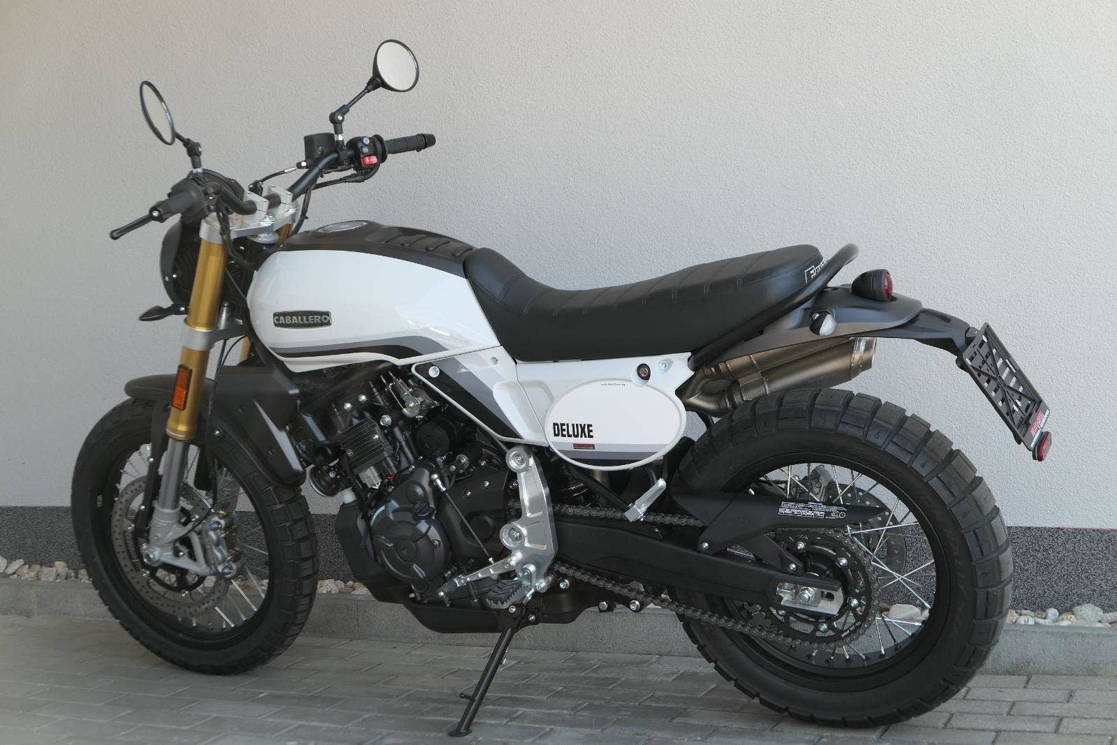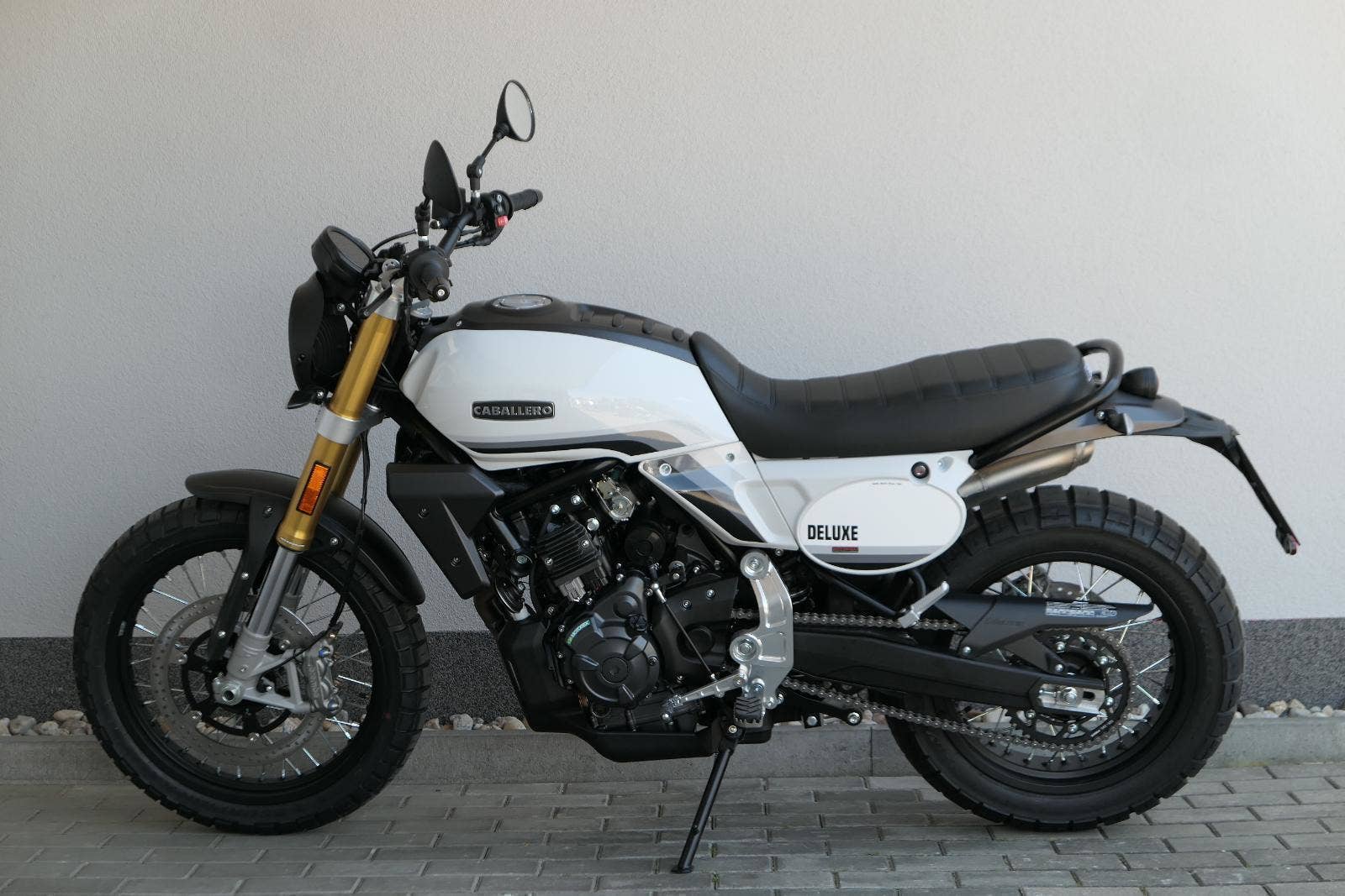Caballero 700 spojuje výkon paralelního dvouválce Yamaha CP2, špičkovou elektroniku s náklonovým ABS – s možností deativace přímo z řídítek – a nastavitelnou kontrolou trakce, prémiový podvozek Marzocchi a brzdný systém Brembo. Díky nízké hmotnosti 175 kg, 19″ a 17″, drátovým kolům a optimalizovanému odpružení zvládá s lehkostí silnice i terén, přesně tak, jak se na autentický scrambler patří.