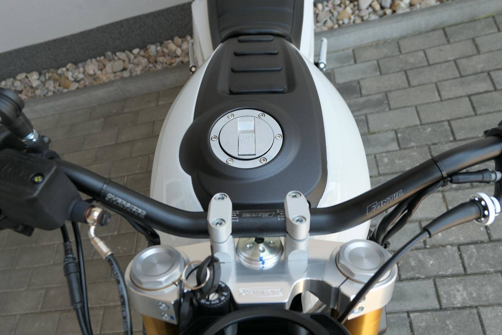 Na první pohled je Caballero 700 snadno rozpoznatelné díky svým čistým a jednoduchým liniím, pečlivě vytvořeným ve Fantic Style Centre. Ikonické prvky, jako je mohutná nádrž, kulaté světlomety a závodní tabulky na bočních panelech, se mísí s moderními prvky, jako jsou CNC držáky motoru, trojité šroubení na brýlích řízení a karbonová ochrana výfukového systému.