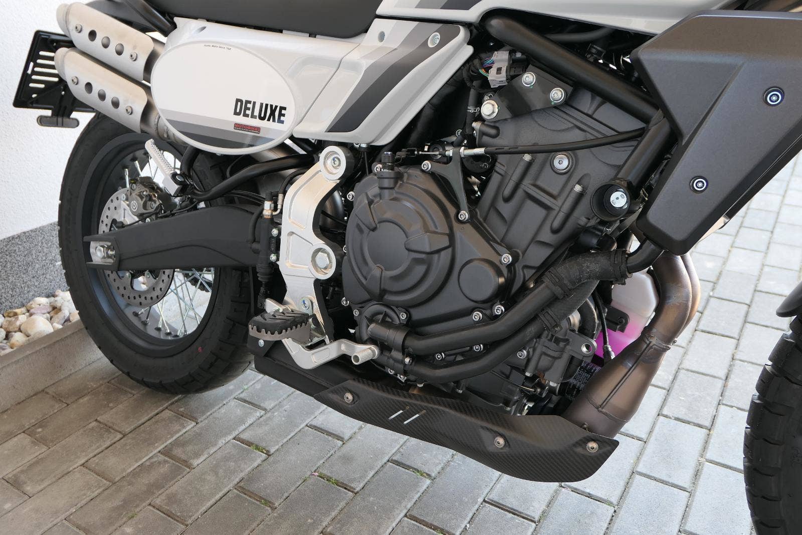 Varianta Deluxe přináší navíc off-roadové řídítka s hrazdičkou a nové šedé lakování Campovolo Grey s dekorativními modrými pruhy.
