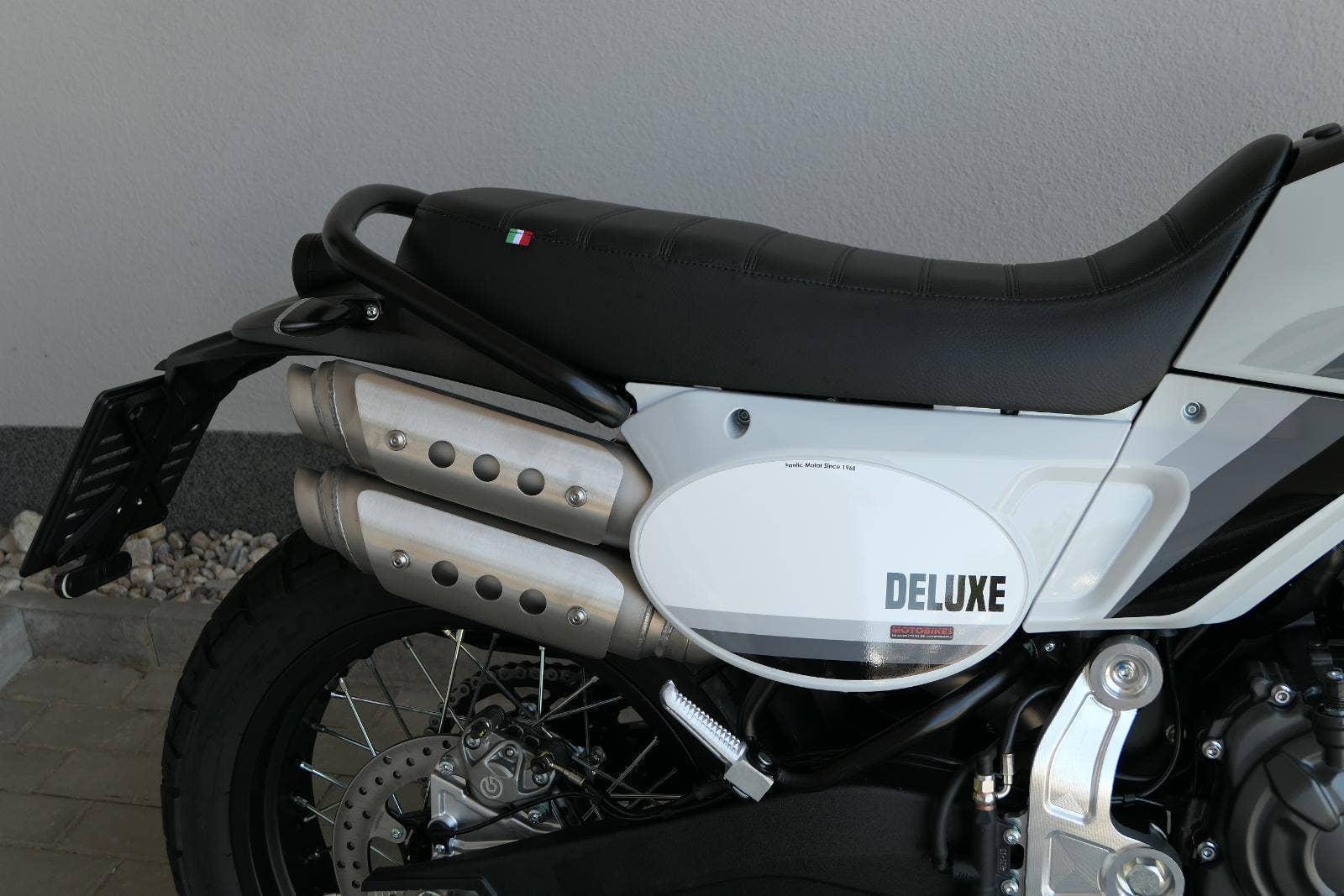 Verze Deluxe představuje designovou evoluci základního modelu Scrambler, která přináší promyšlený design v nové barvě Campovolo Grey v odstínech šedé s třemi modrými pruhy. Oproti verzi Scrambler najdete na Deluxe hrazdová řídítka.
