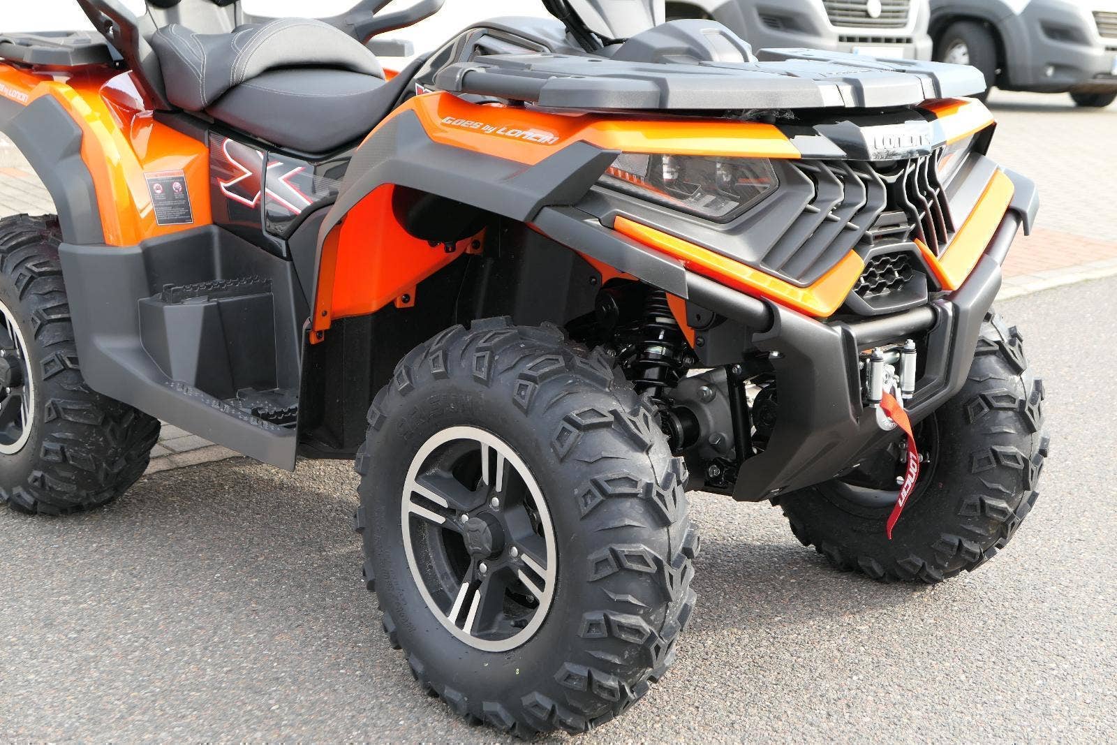 EPS (elektrický posilovač řízení), 12″ alu kola, 3x 12V zásuvka (zapalovač + 2x USB), zámek řízení integrovaný ve spínací skříňce, voděodolný kastlík v předním blatníku a v zadní části čtyřkolky, homologované tažné zařízení s el. zásuvkou na neskutečných 800 kg, silný elektrický naviják 3000 lbs, kryty rukou, ochranné lemy blatníků, přídavné sedadlo s opěradlem a madly pro spolujezdce (u prodloužené verze MAX), přepínání pohonu 2×4/4×4 + uzávěrka předního diferenciálu, přední ochranný rám s plastovým krytím, přední i zadní nosič s možností naložit na ně až 80 kg nákladu, full LED dynamické přední a zadní směrovky integrované do předních i zadních světel