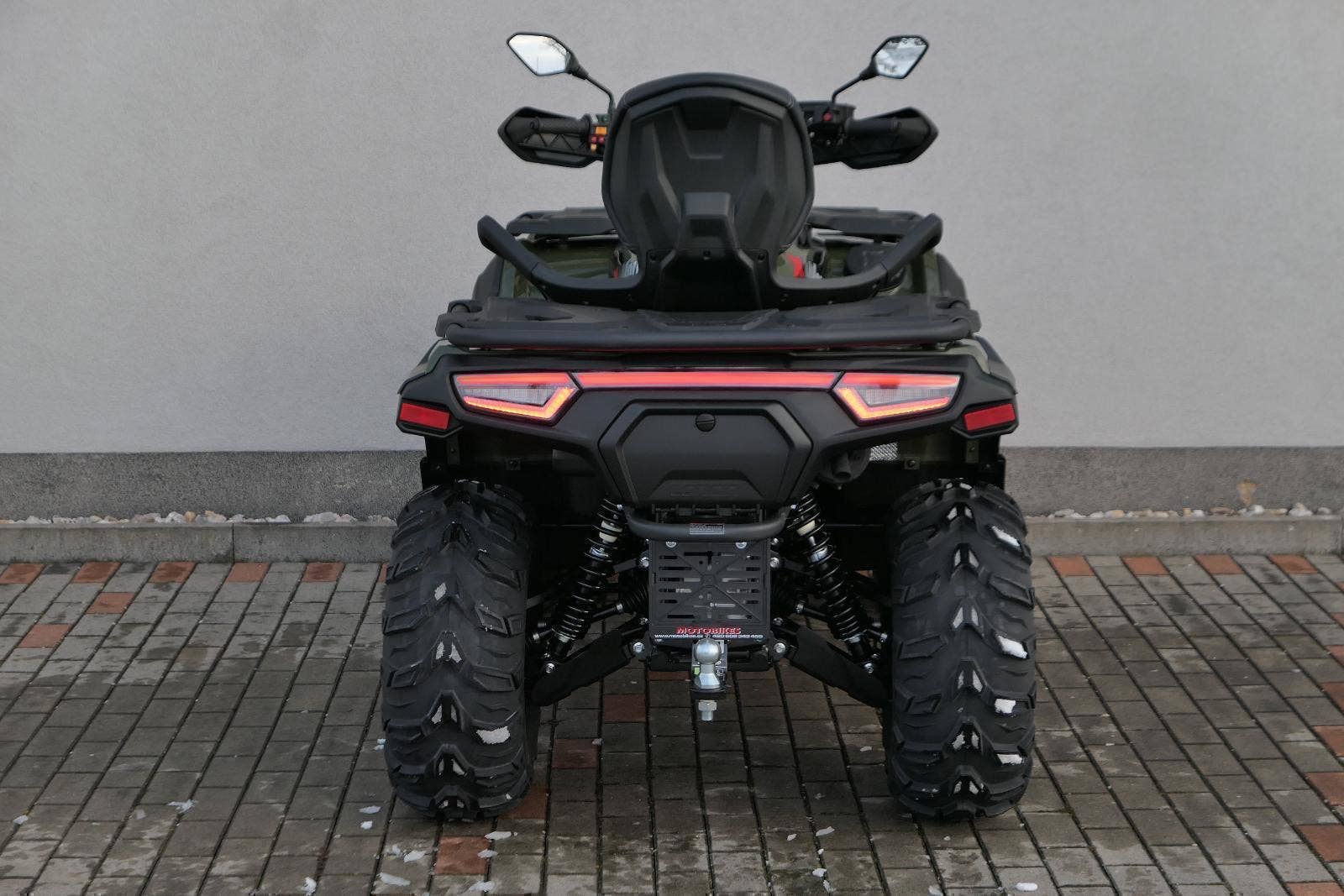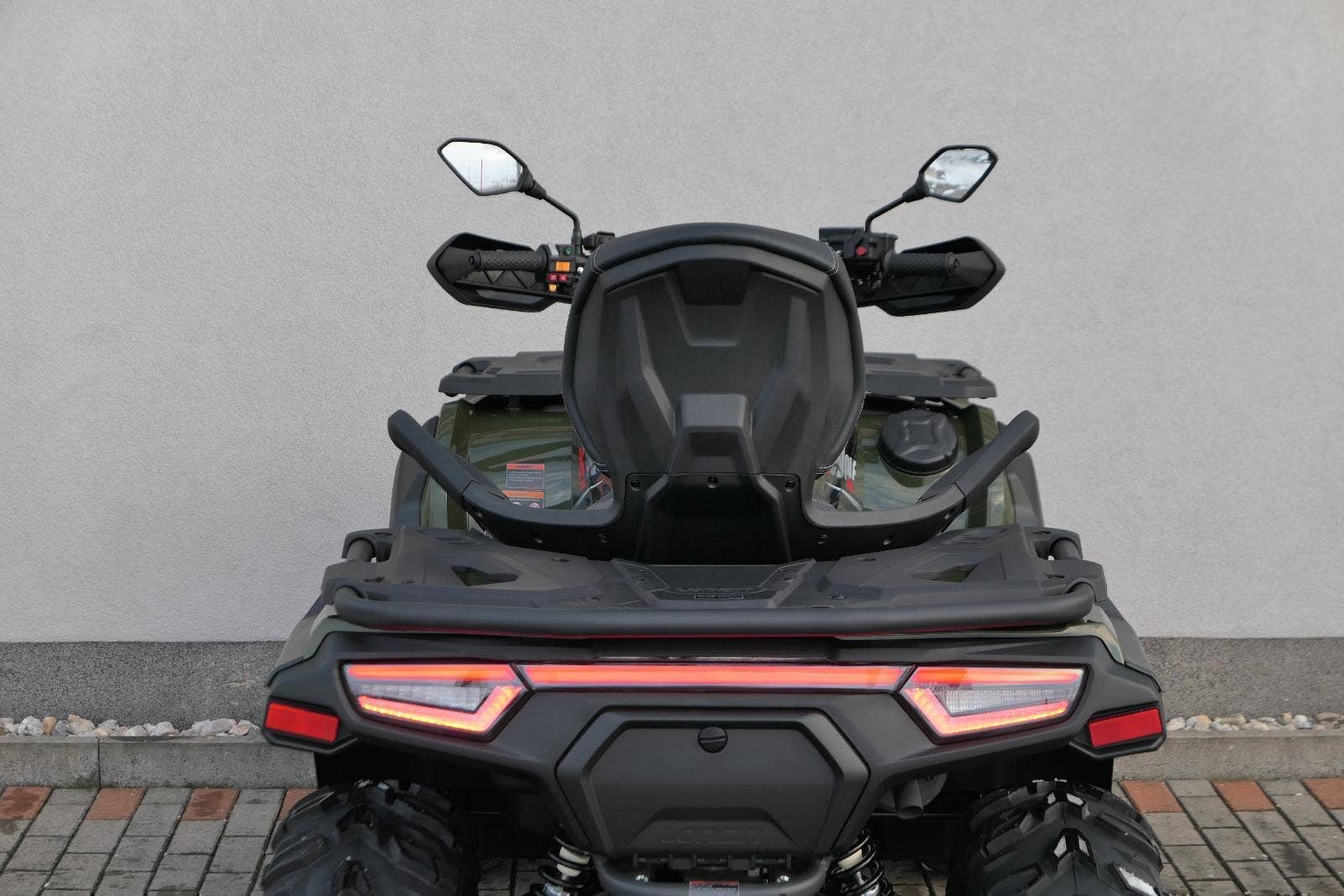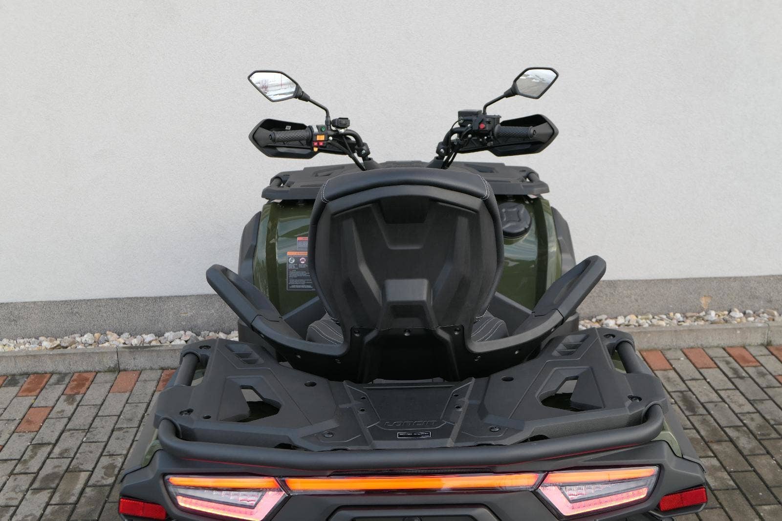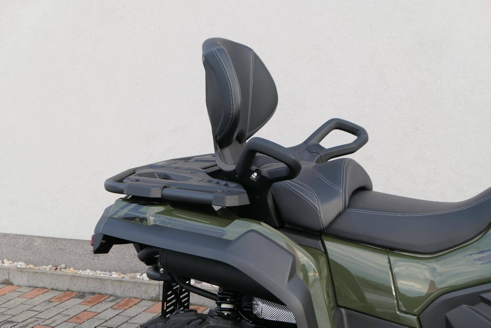 EPS (elektrický posilovač řízení), 12″ alu kola, 3x 12V zásuvka (zapalovač + 2x USB), zámek řízení integrovaný ve spínací skříňce, voděodolný kastlík v předním blatníku a v zadní části čtyřkolky, homologované tažné zařízení s el. zásuvkou na neskutečných 800 kg, silný elektrický naviják 3000 lbs, kryty rukou, ochranné lemy blatníků, přídavné sedadlo s opěradlem a madly pro spolujezdce (u prodloužené verze MAX), přepínání pohonu 2×4/4×4 + uzávěrka předního diferenciálu, přední ochranný rám s plastovým krytím, přední i zadní nosič s možností naložit na ně až 80 kg nákladu, full LED dynamické přední a zadní směrovky integrované do předních i zadních světel