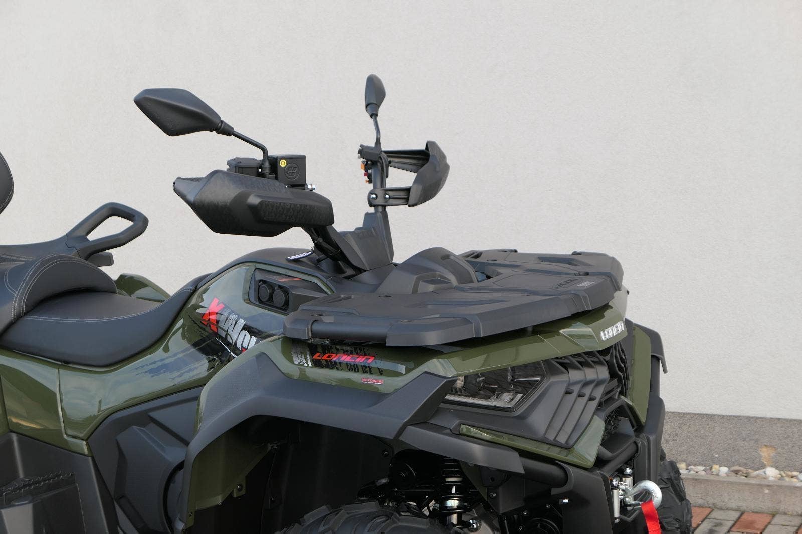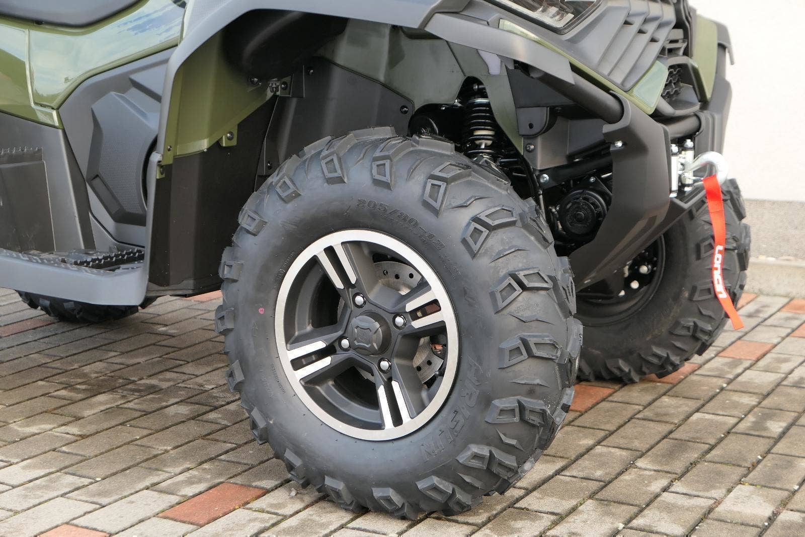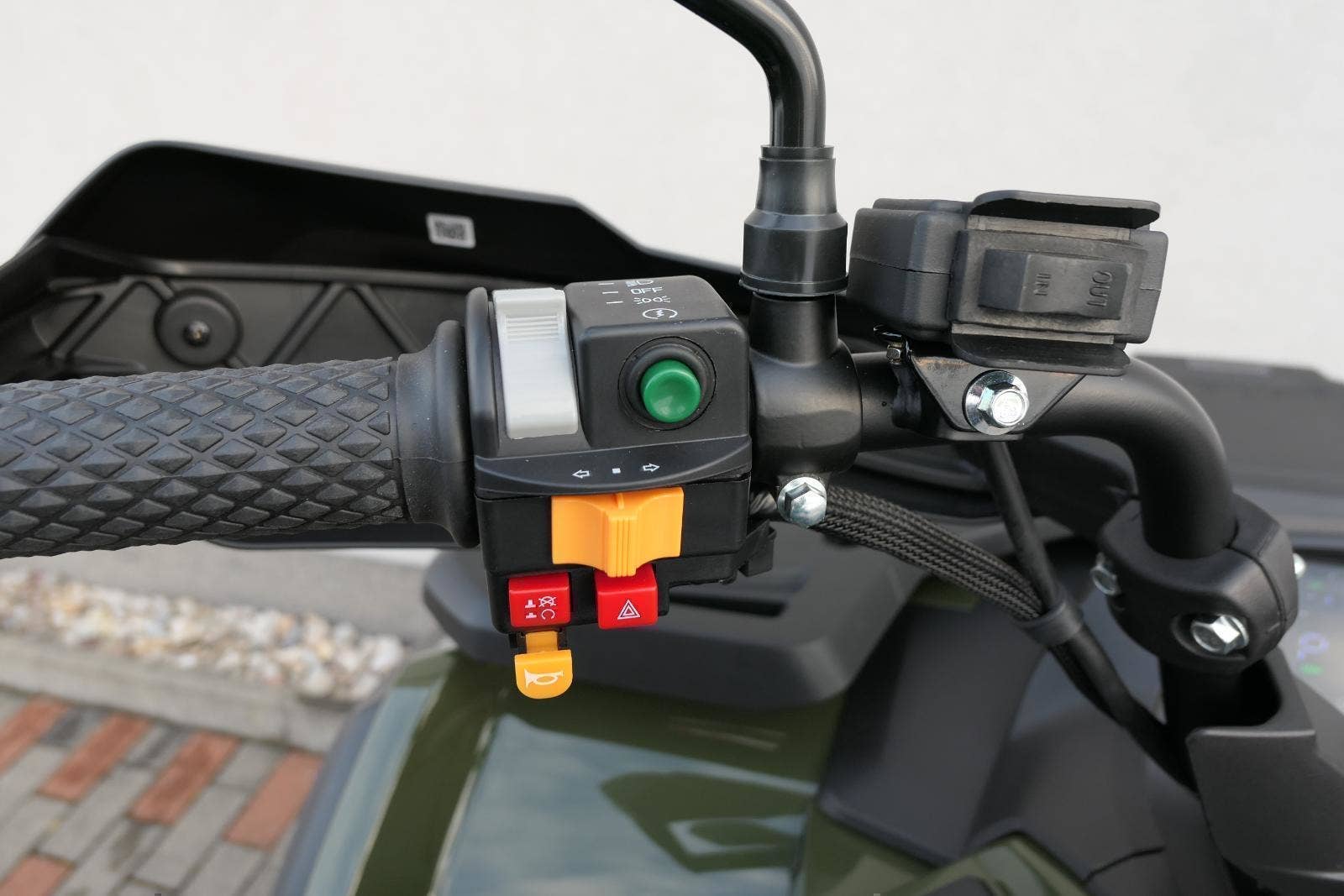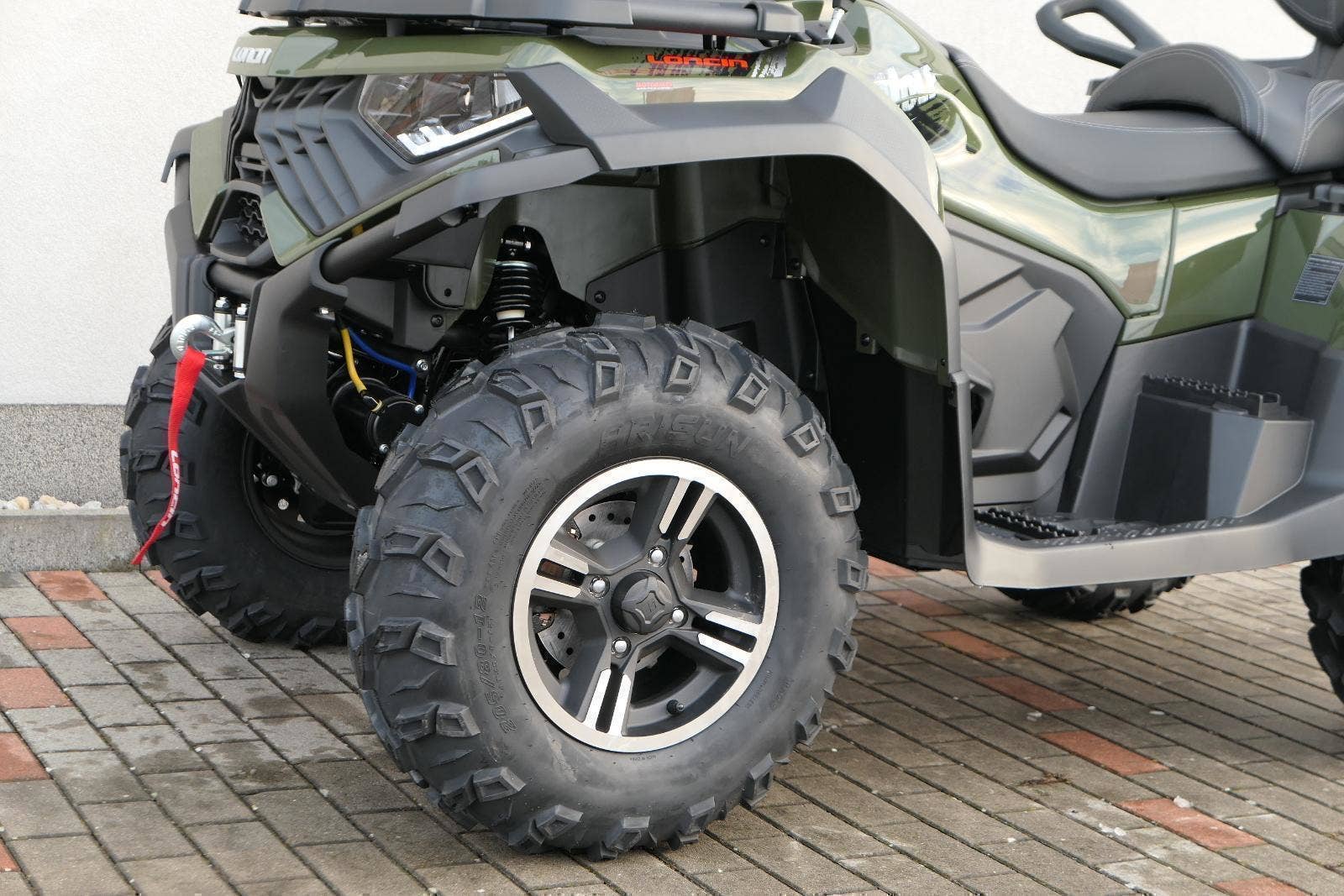 EPS (elektrický posilovač řízení), 12″ alu kola, 3x 12V zásuvka (zapalovač + 2x USB), zámek řízení integrovaný ve spínací skříňce, voděodolný kastlík v předním blatníku a v zadní části čtyřkolky, homologované tažné zařízení s el. zásuvkou na neskutečných 800 kg, silný elektrický naviják 3000 lbs, kryty rukou, ochranné lemy blatníků, přídavné sedadlo s opěradlem a madly pro spolujezdce (u prodloužené verze MAX), přepínání pohonu 2×4/4×4 + uzávěrka předního diferenciálu, přední ochranný rám s plastovým krytím, přední i zadní nosič s možností naložit na ně až 80 kg nákladu, full LED dynamické přední a zadní směrovky integrované do předních i zadních světel