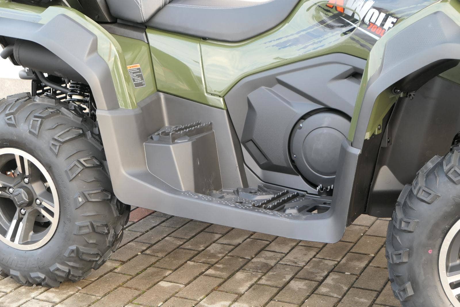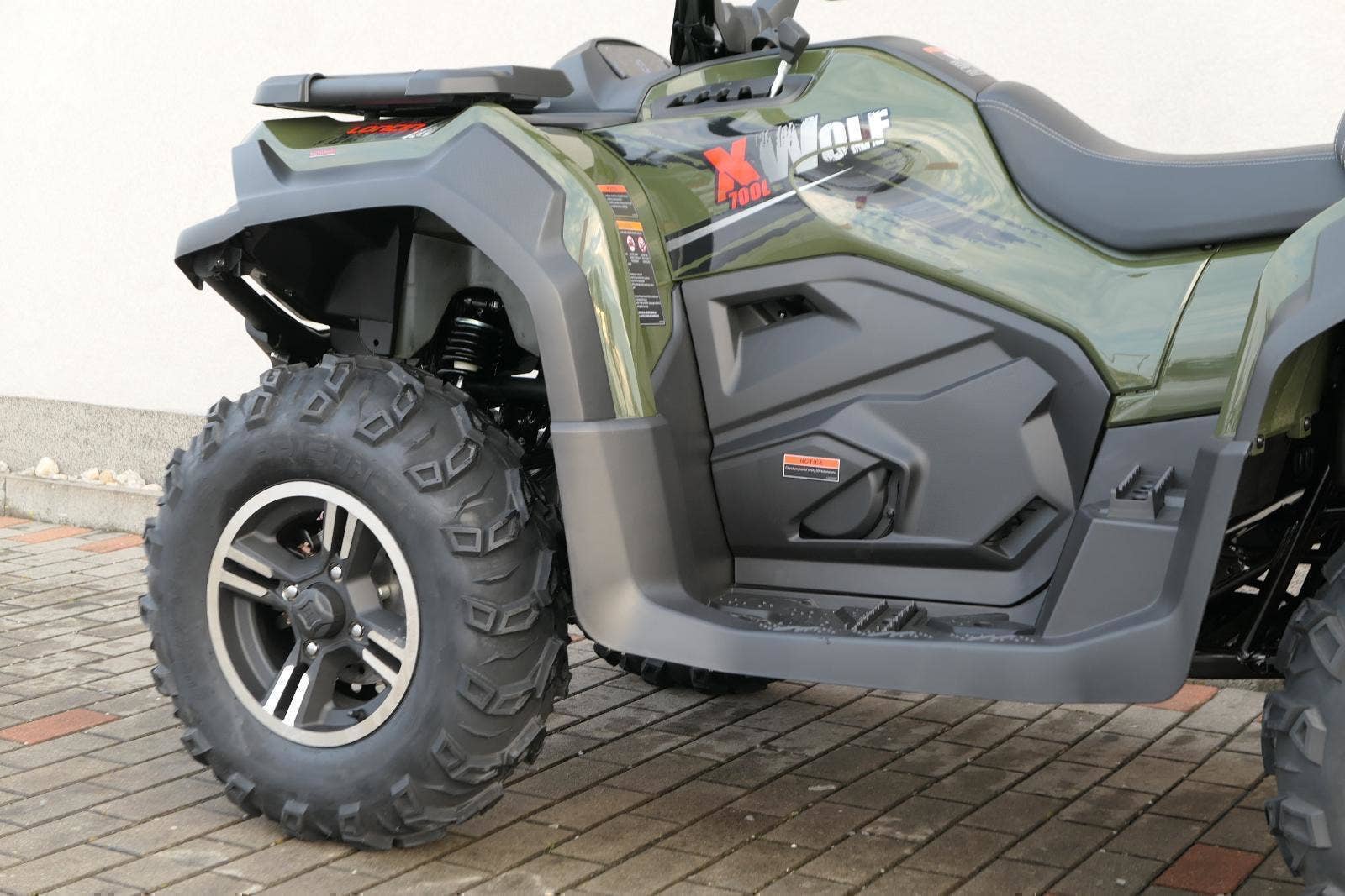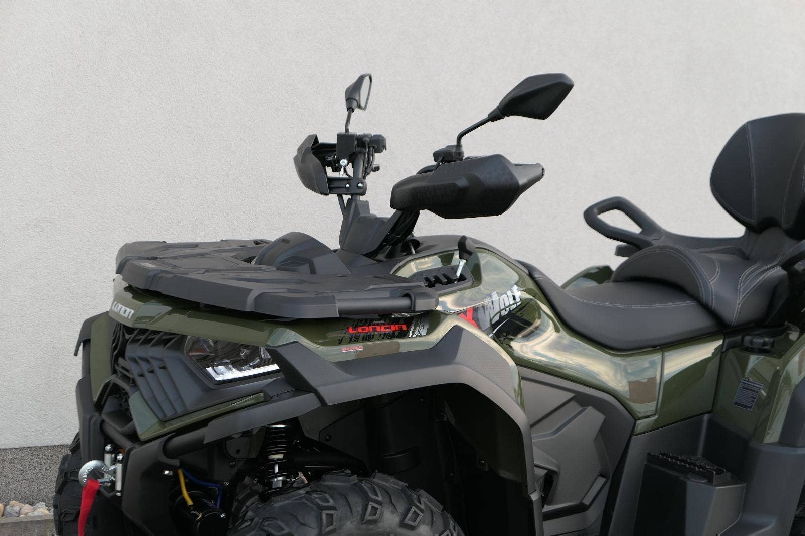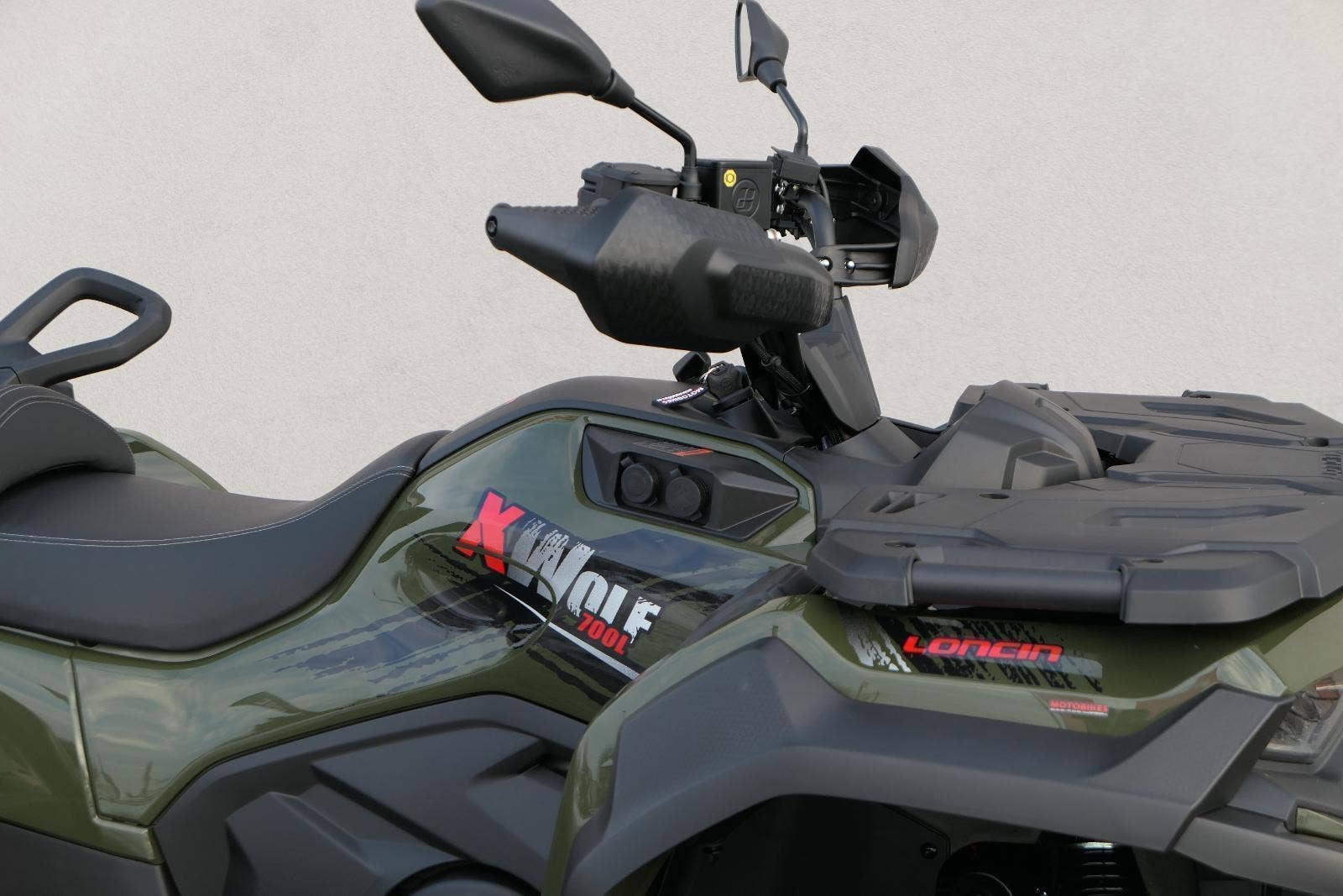 EPS (elektrický posilovač řízení), 12″ alu kola, 3x 12V zásuvka (zapalovač + 2x USB), zámek řízení integrovaný ve spínací skříňce, voděodolný kastlík v předním blatníku a v zadní části čtyřkolky, homologované tažné zařízení s el. zásuvkou na neskutečných 800 kg, silný elektrický naviják 3000 lbs, kryty rukou, ochranné lemy blatníků, přídavné sedadlo s opěradlem a madly pro spolujezdce (u prodloužené verze MAX), přepínání pohonu 2×4/4×4 + uzávěrka předního diferenciálu, přední ochranný rám s plastovým krytím, přední i zadní nosič s možností naložit na ně až 80 kg nákladu, full LED dynamické přední a zadní směrovky integrované do předních i zadních světel