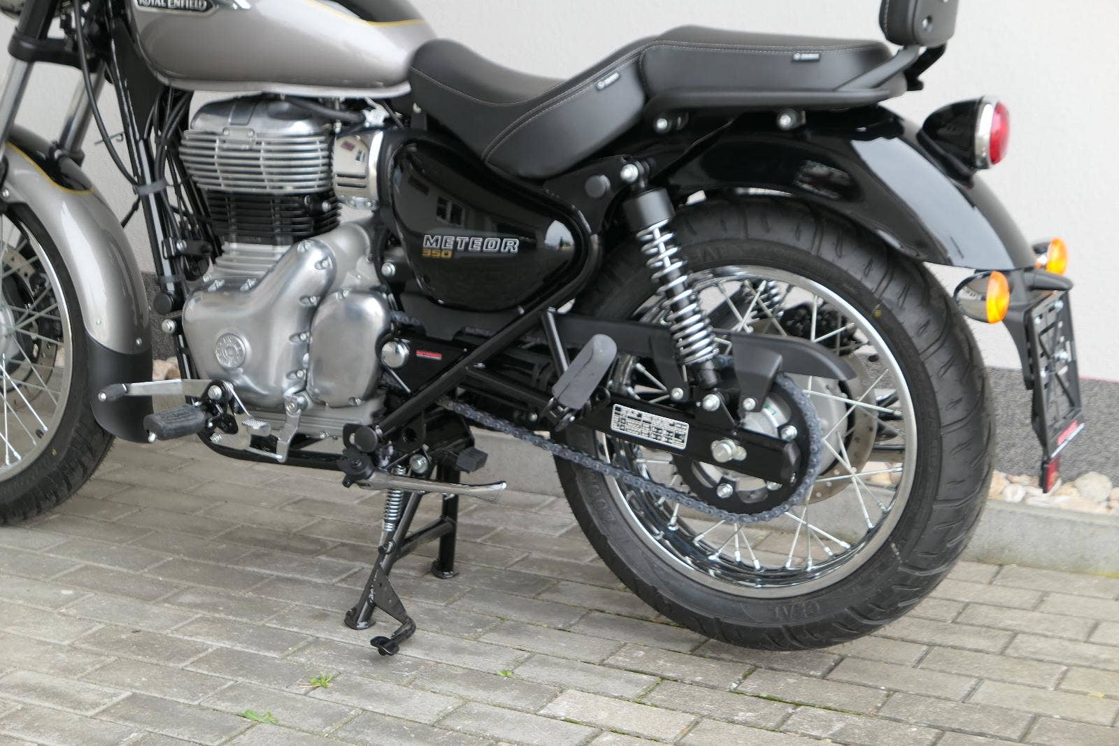 Díky vylepšenému nastavení podvozku, přístupné jízdní poloze, pokročilým brzdným schopnostem, vysoké specifikaci odpružení a rychlému přenosu výkonu je Meteor připraven posvítit si na svět cruiserů. Zcela nový podvozek je silnější, tužší a odolnější a je navržen pro přímou stabilitu, zatáčení a manévrovatelnost bez kompromisů v oblasti pohodlí.