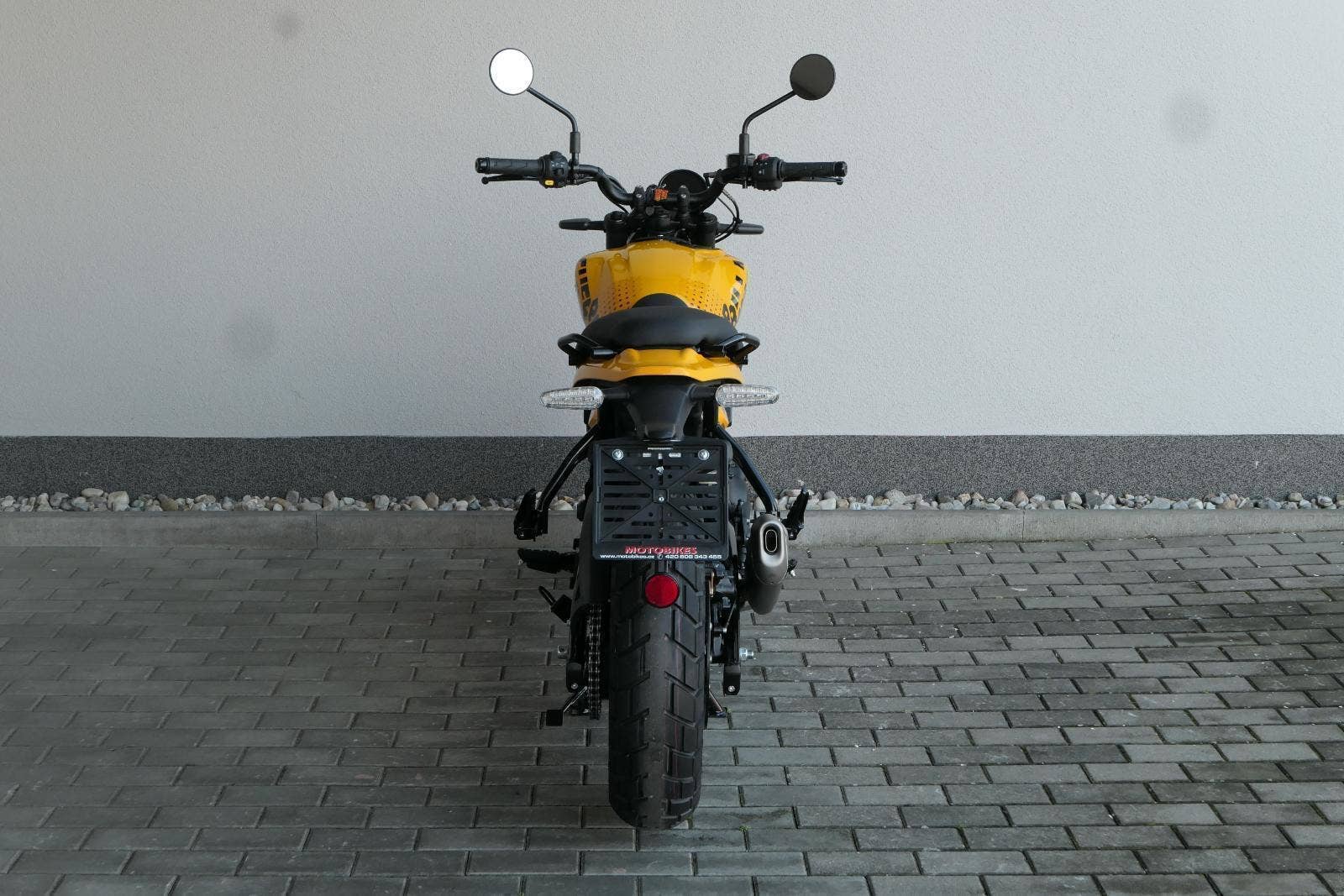 V závislosti na zvolené barevné variantě dostanete také dvě různé přístrojovky. V základu je analogový rychloměr, kombinovaný se dvěma malými displeji – jeden přímo uprostřed rychloměru, jeden připlácnutý ze strany. V dražších variantách najdete celodigitální kulatý TFT displej, který nabídne konektivitu s mobilní a aplikací a lze na něm zobrazit velkou navigaci s mapou