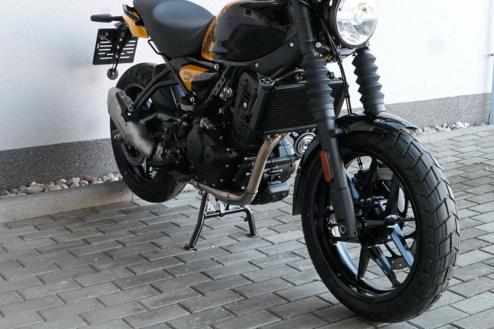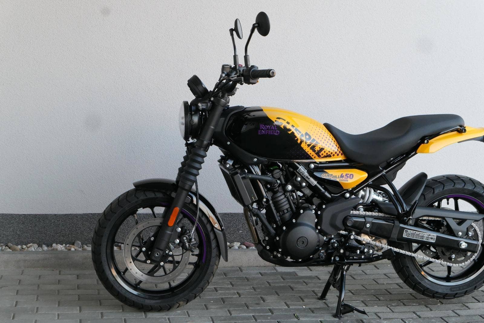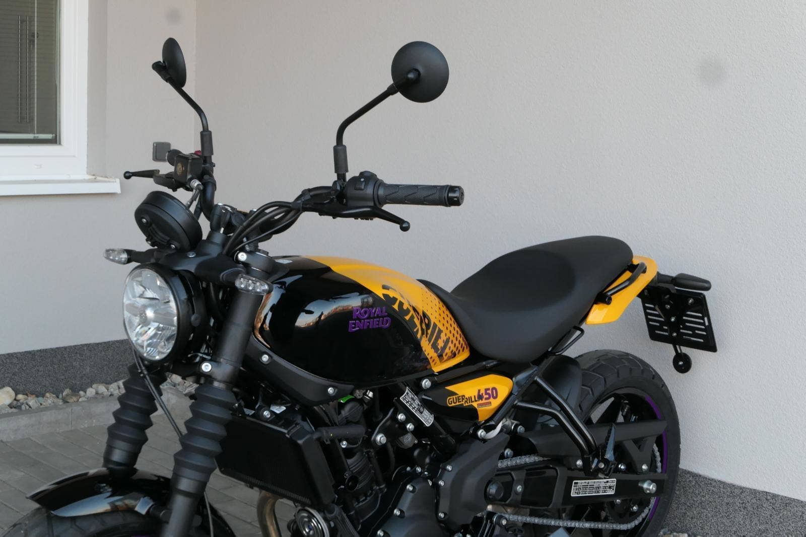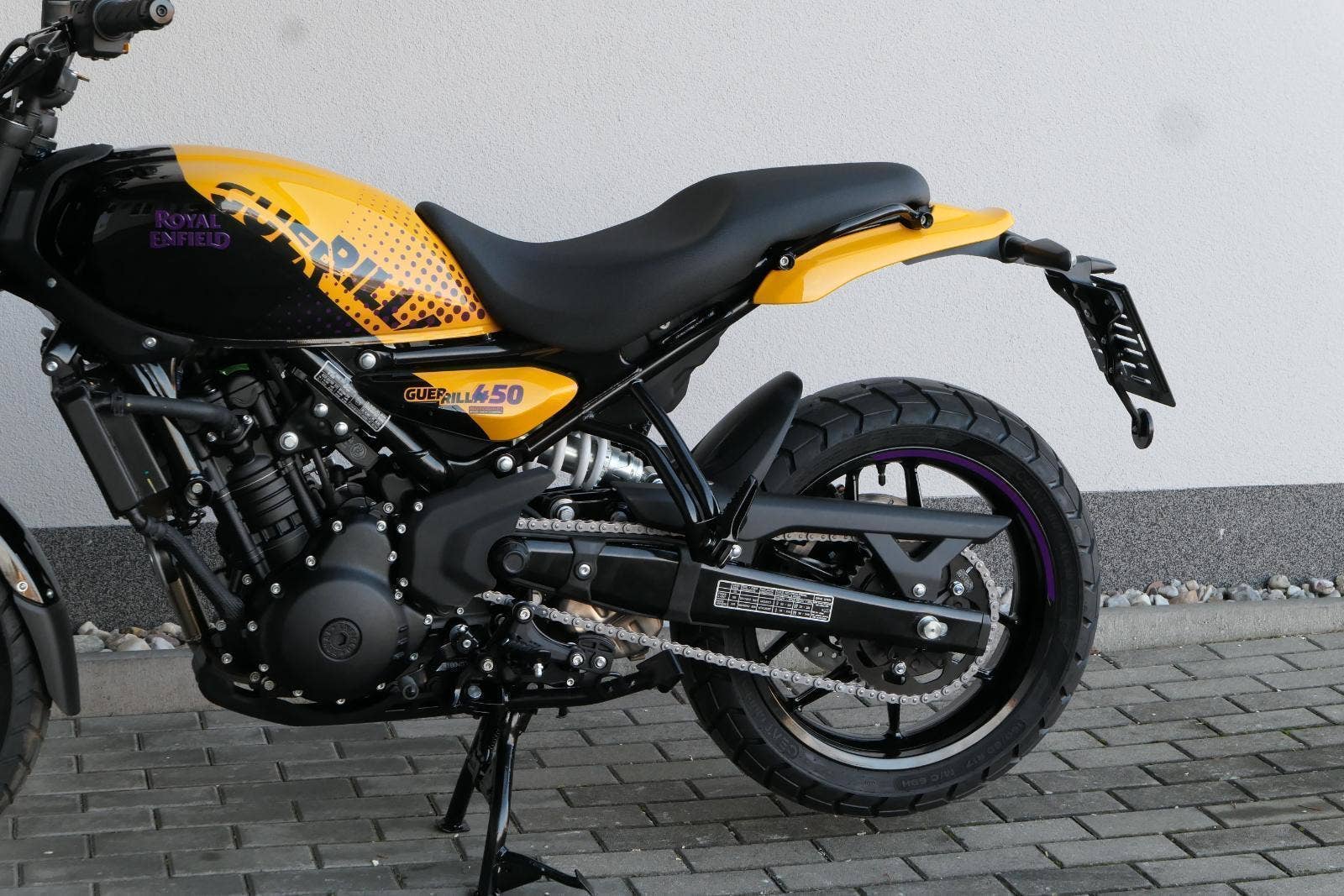 Royal Enfield Guerrilla 450 sdílí motor a technický základ s cestovním endurem Himalayan 450, stojí ale na malých silničních kolech a místo cestování míří na každodenní dojíždění, i na radovánky okolo komína.