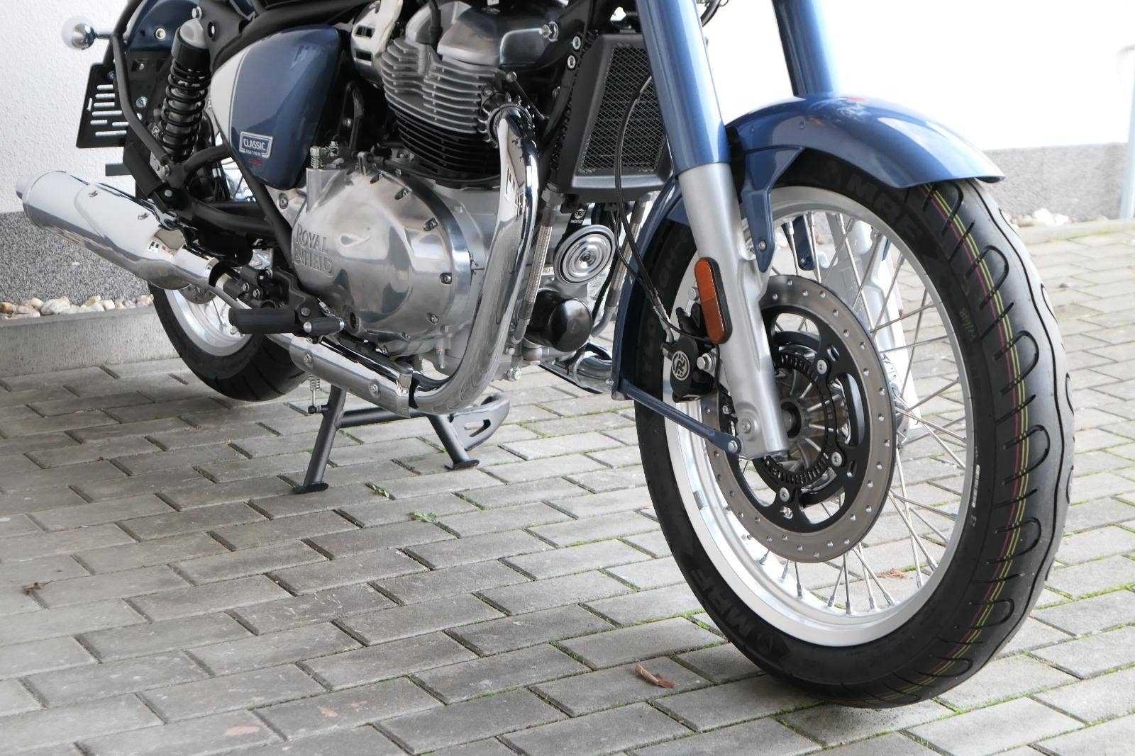 -sebejistotu a plynulost jízdy bez ohledu na to, kam máte namířeno, zajistí ověřené přední odpružení modelu Classic 650 i dvoutrubkové hydraulické zadní odpružení od společnosti Showa.