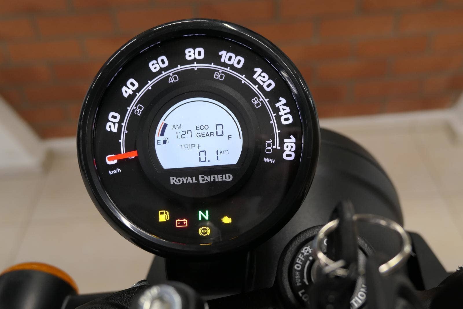 Výkřik směrem k analogové éře, a přitom dokonale synchronizovaný pro moderní denní jízdu. HNTR je vybavený tachoměrem v retro stylu spolu s digitálním LCD displejem, který vám řekne vše, co potřebujete vědět, a je kompatibilní s navigačním systémem Royal Enfield Tripper.
