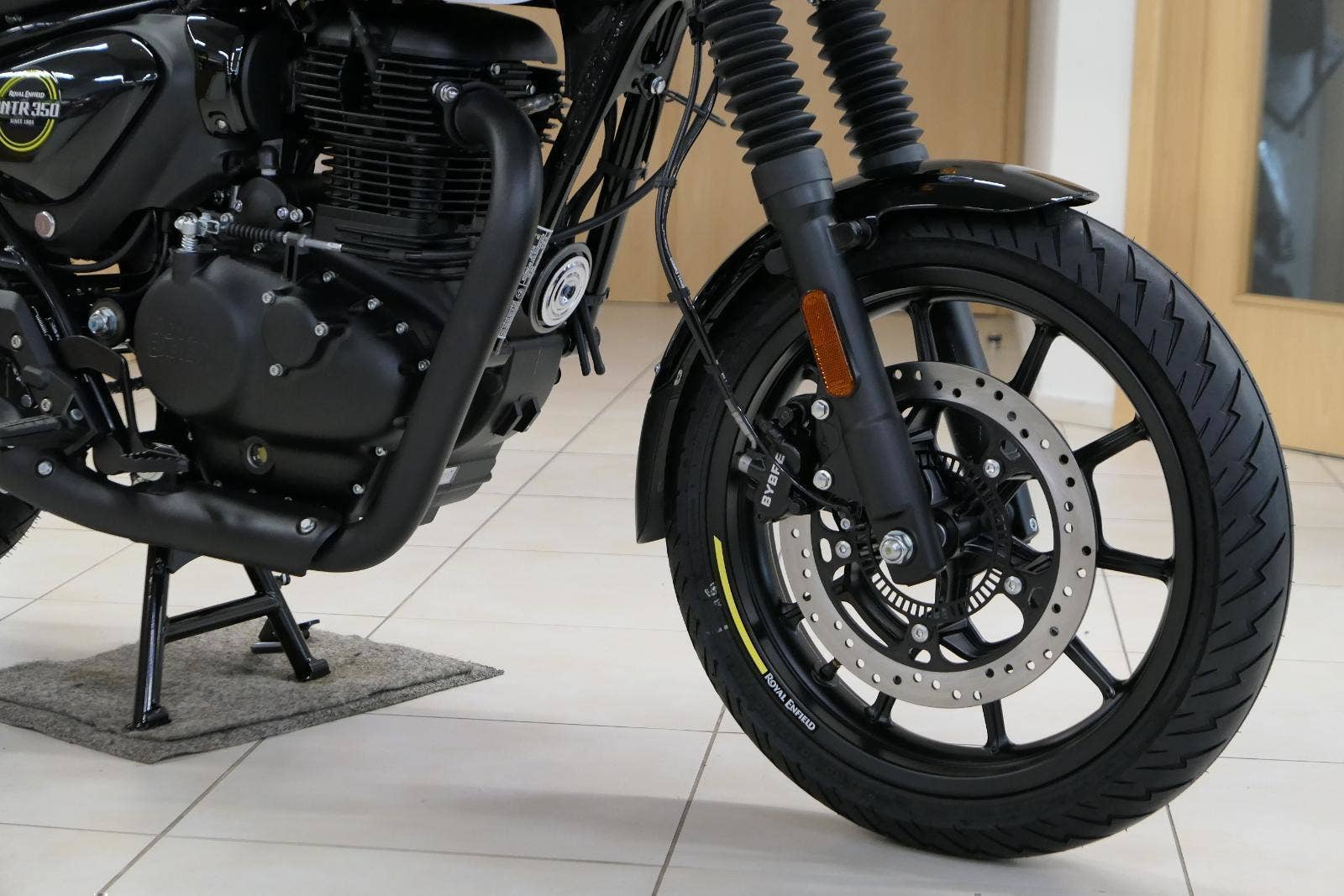 HNTR 350 je jediný vyráběný model Royal Enfield, který používá super ovladatelné 17” přední a zadní pneumatiky a nápadná litá kola. S bezdušovými pneumatikami můžete jet bez přerušení tak dlouho, jak chcete, bez strachu z píchnutí.