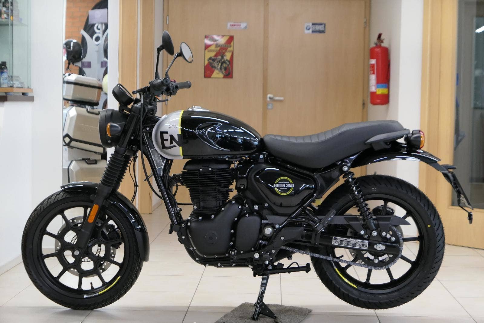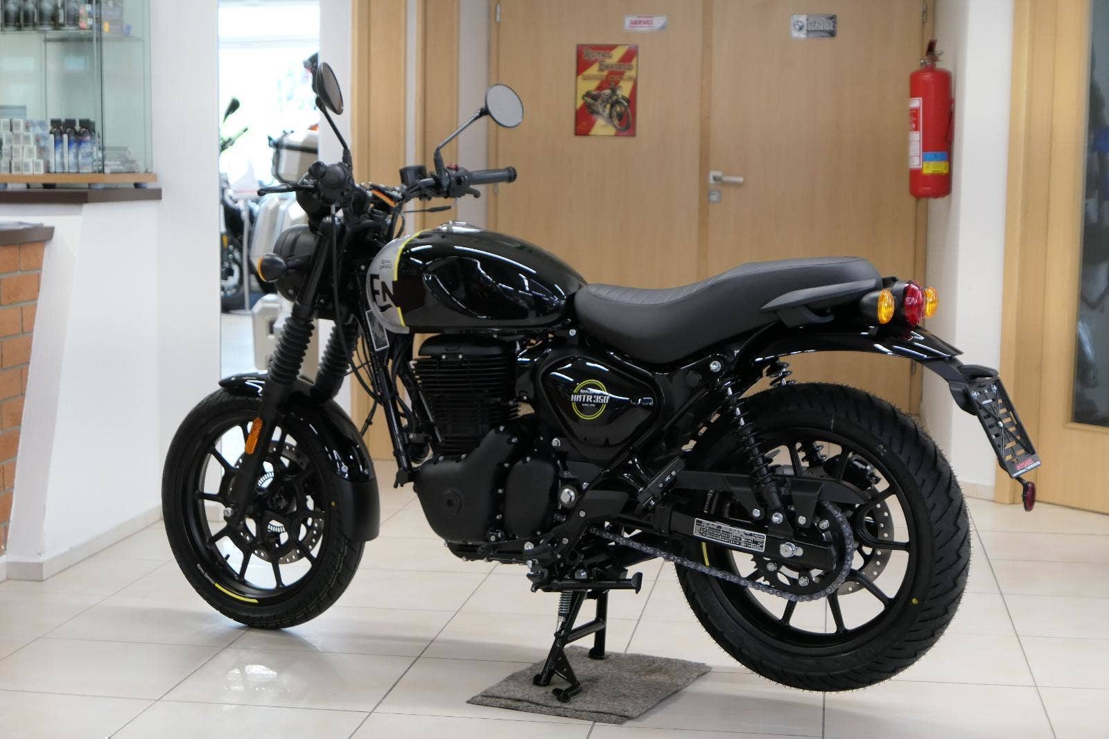 Kratší rozvor, menší váha a sevřenější geometrie, robustní rám Hunteru vybavený sadou super ovladatelných 17” kol, módní estetika v retro stylu a motor s objemem 350 ccm jako extra sval do každé tlačenice.