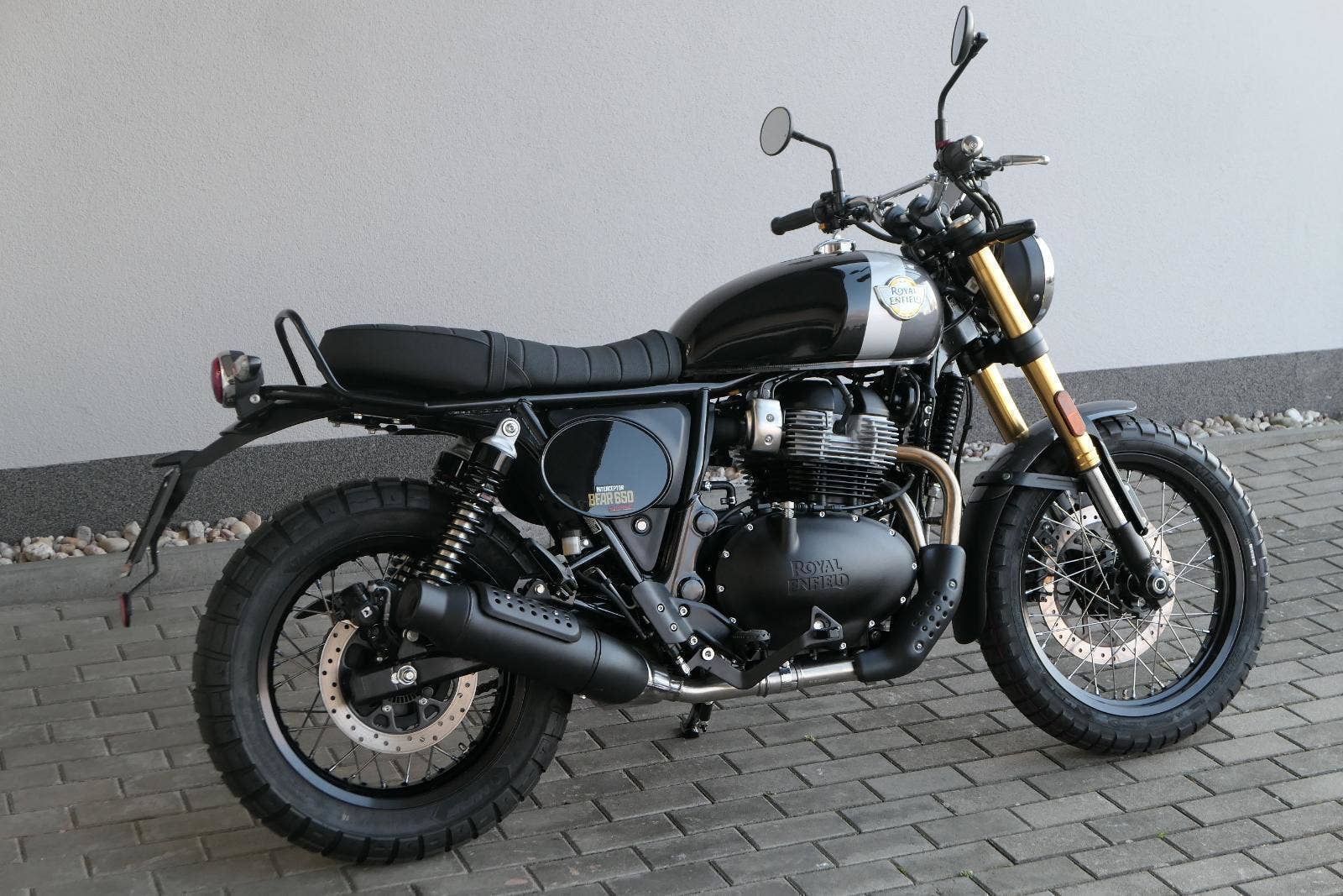 Napájení díky emocím a pohon zajišťuje ověřený paralelní dvouválec Royal Enfield o objemu 650 ccm. Je chráněn pláštěm ve vysoce odolné, prémiové černé úpravě, čímž získává robustní a účelné vzezření a je očividně dokonalým scramblerem.