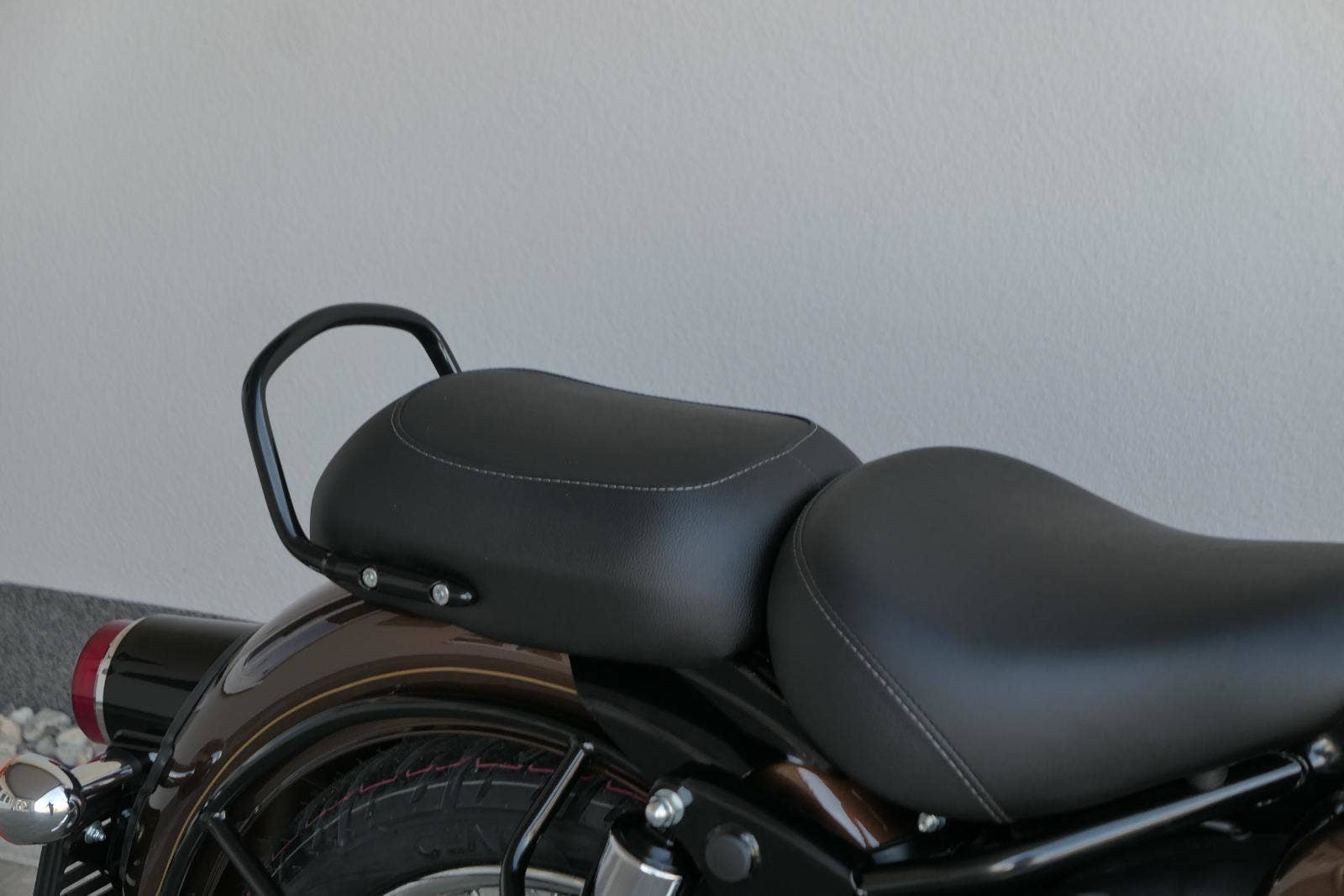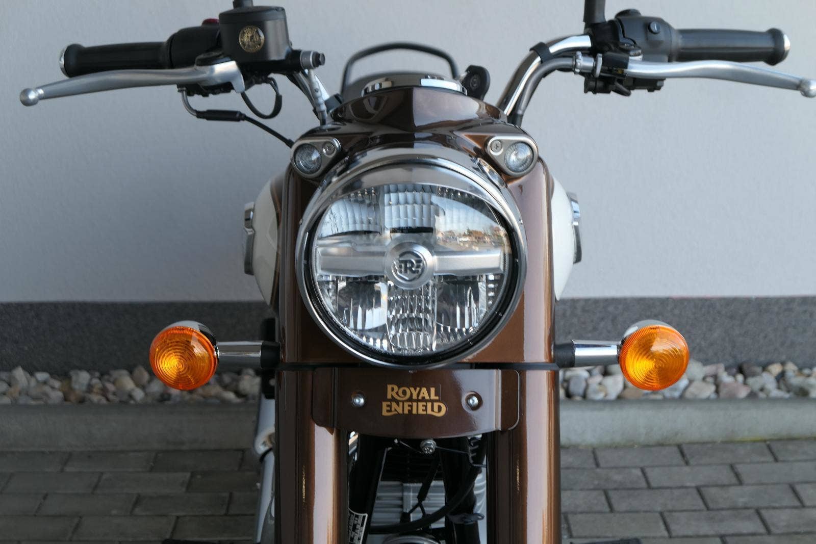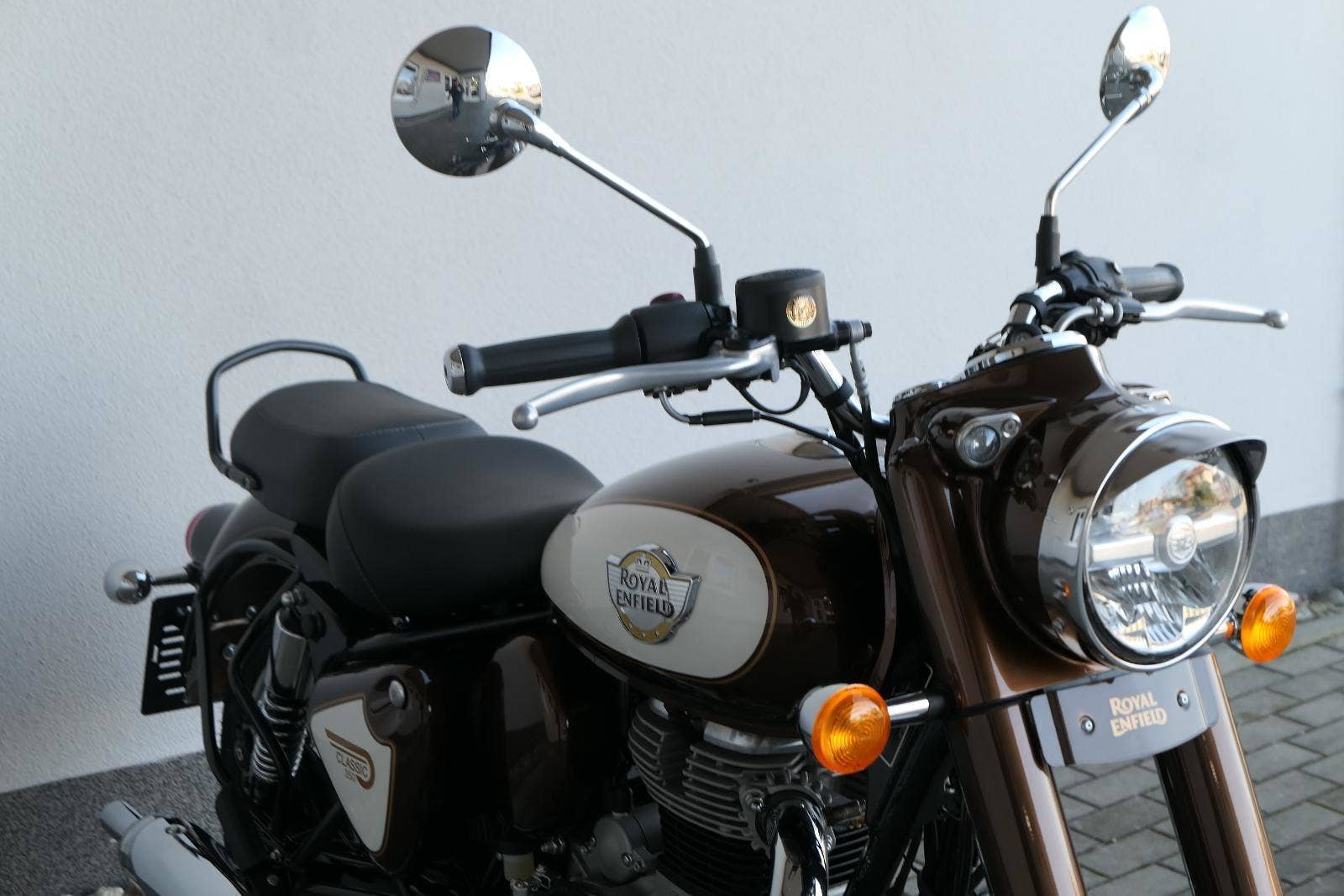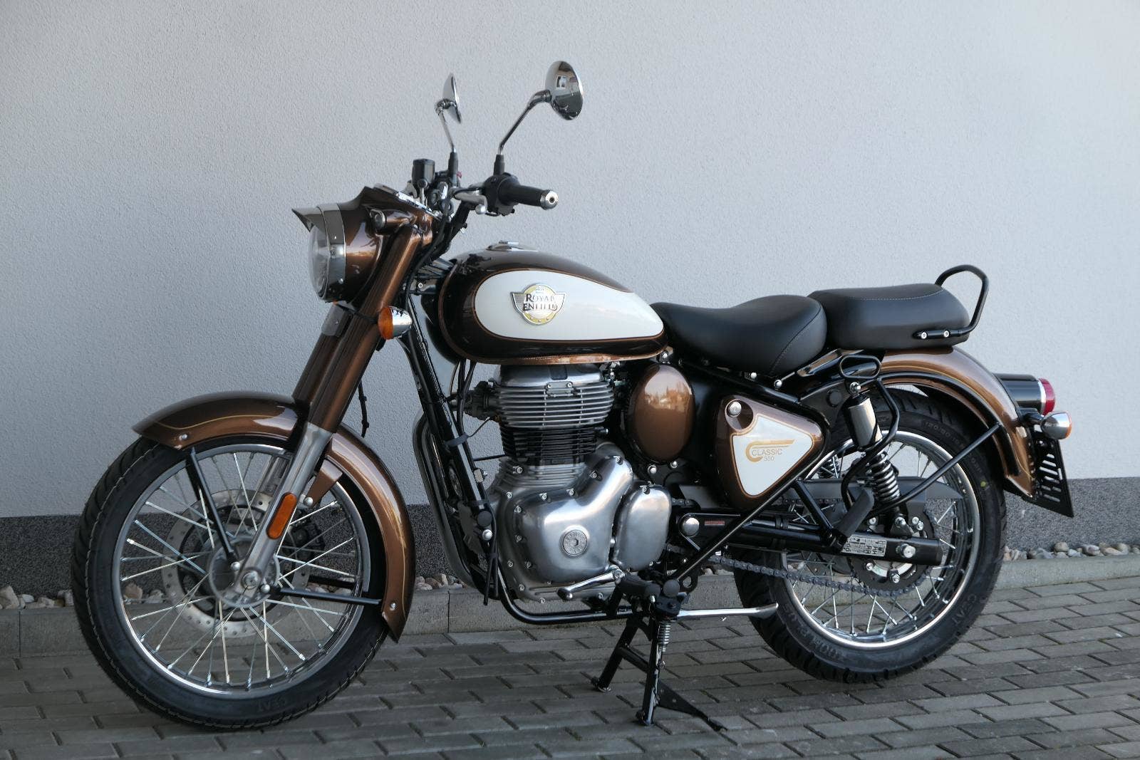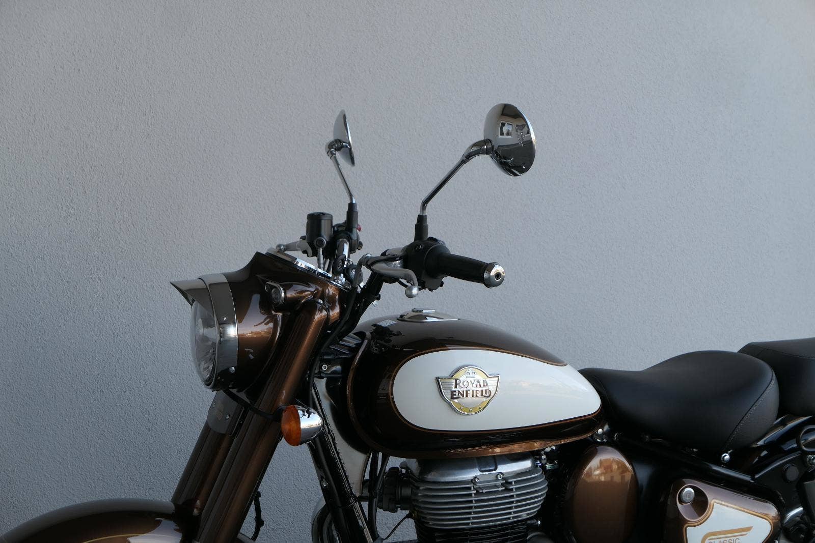 Ústředním prvkem nového Classic 350 je zcela nové srdce, které bije do jedinečného rytmu Royal Enfield. Ve spojení s novým rámem se dvěma spodními trubkami, který jezdí pevně a věrně, solidní a spolehlivou kvalitou konstrukce, je Classic vaším spojencem, ať už je váš cíl kdekoliv. Vzpřímená jízdní poloha dává jezdci Classicu vynikající vzhled na silnici, zatímco brzdy s větším průměrem zvyšují jeho brzdnou sílu. Ale silnější neznamená jen schopný a odolný, Classic je obdařen také pohodlím, s vylepšeným širším sedlem, které zpříjemňuje jízdu.