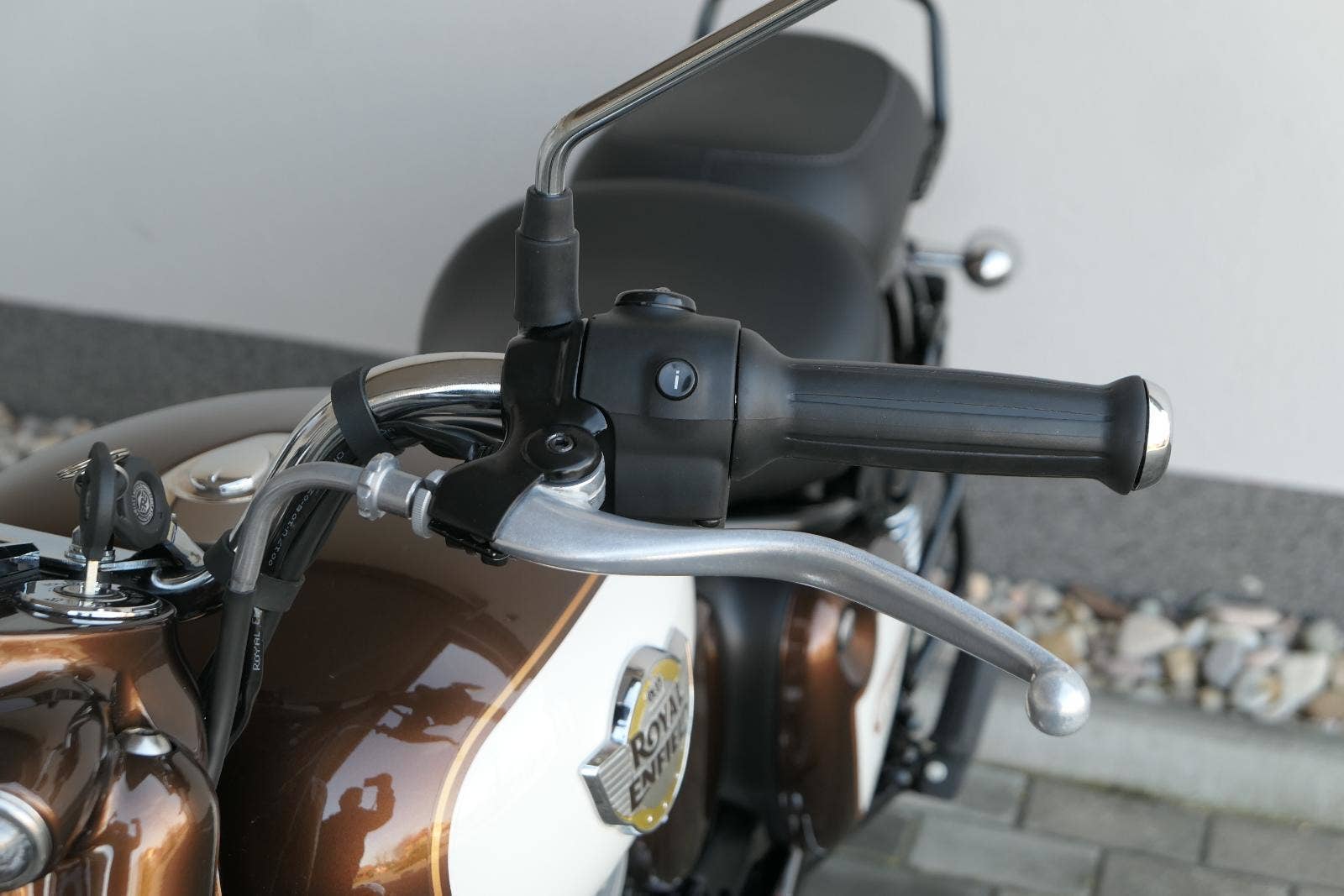 Nastavitelné rozpětí a vylepšená ergonomie na páčkách spojky a brzdy umožňují jezdcům všech velikostí a dovedností manévrovat jejich motocykl s důvěrou. Aktualizovaná přístrojová deska nového Classic 350 obsahuje indikátor polohy převodovky, který zlepšuje převod řízení, zabraňuje namáhání motoru a zajišťuje nejhladší řazení.