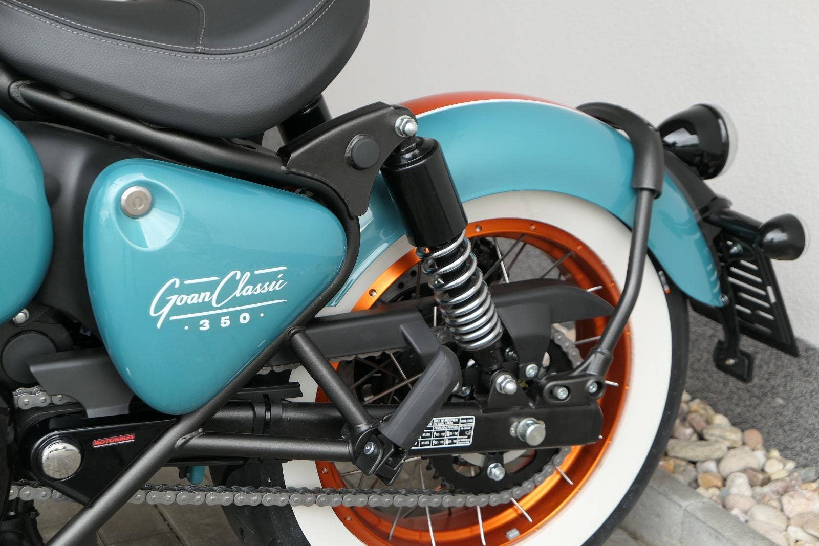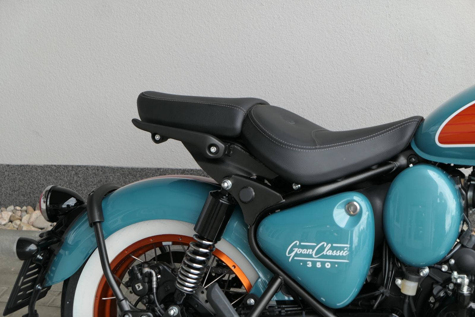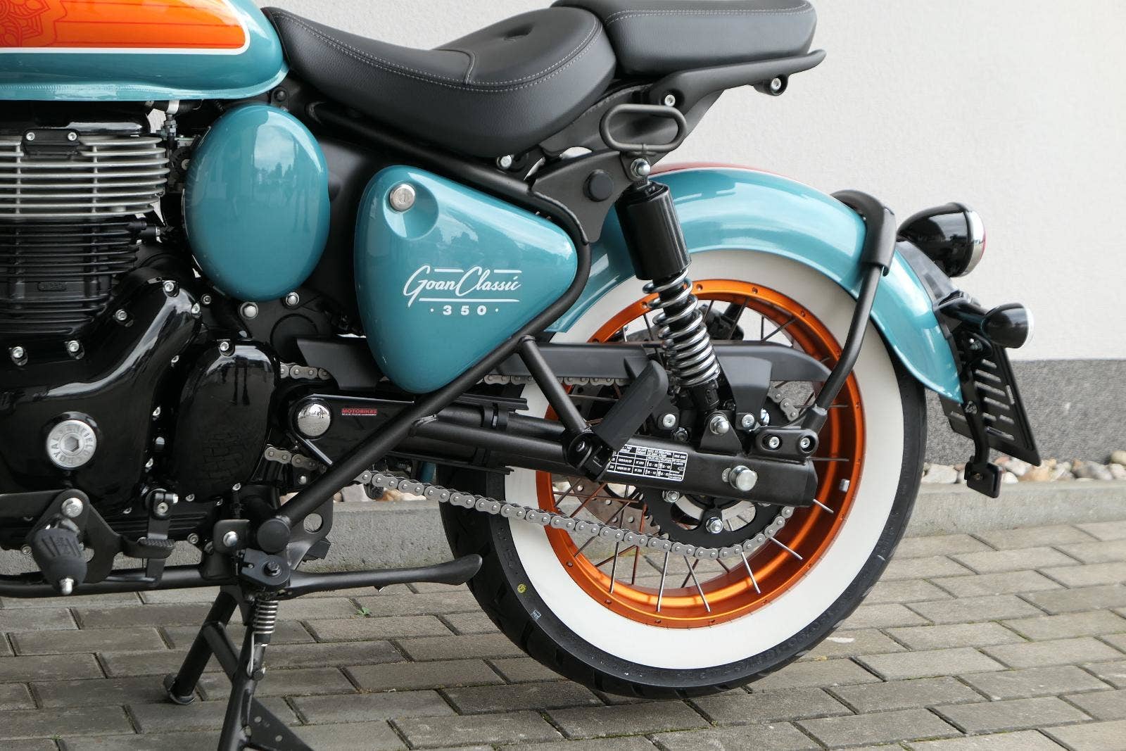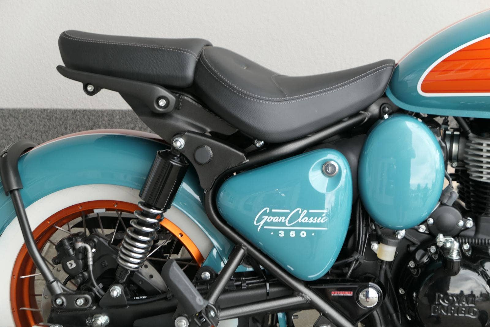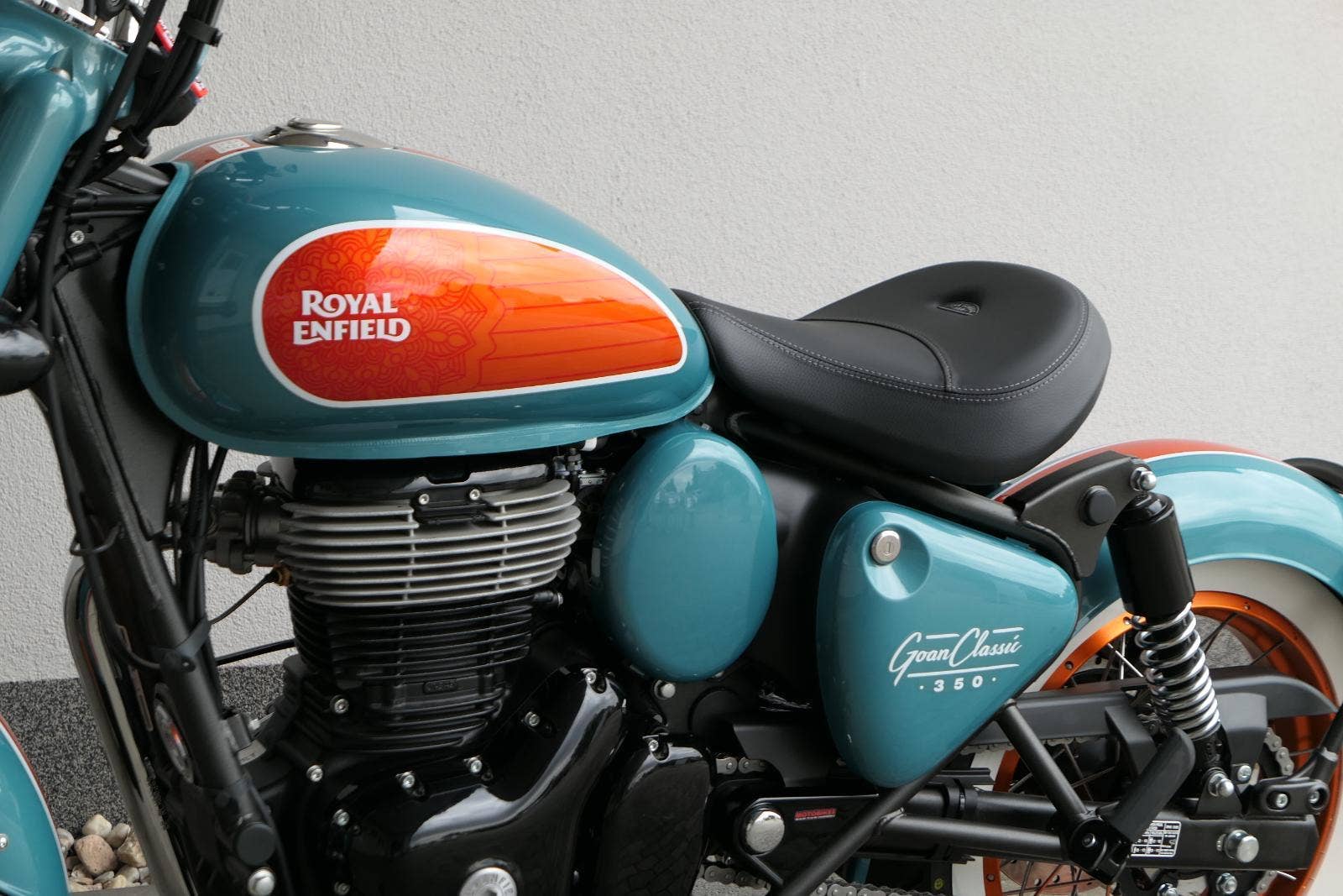 „Trip Teal Green“ s oranžovými akcenty evokujícími ducha Goan moto-kultury.