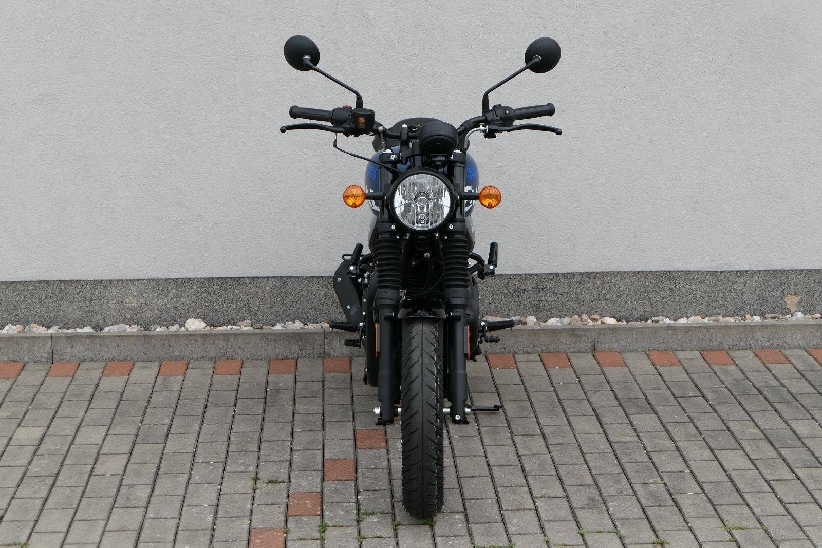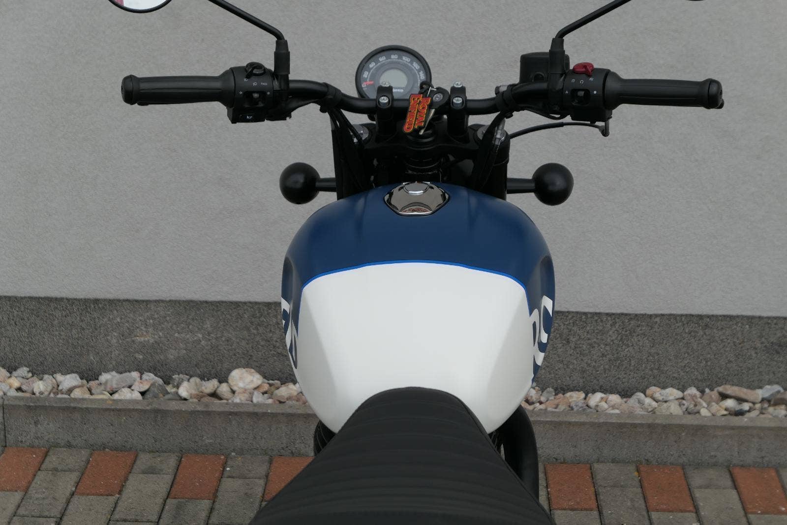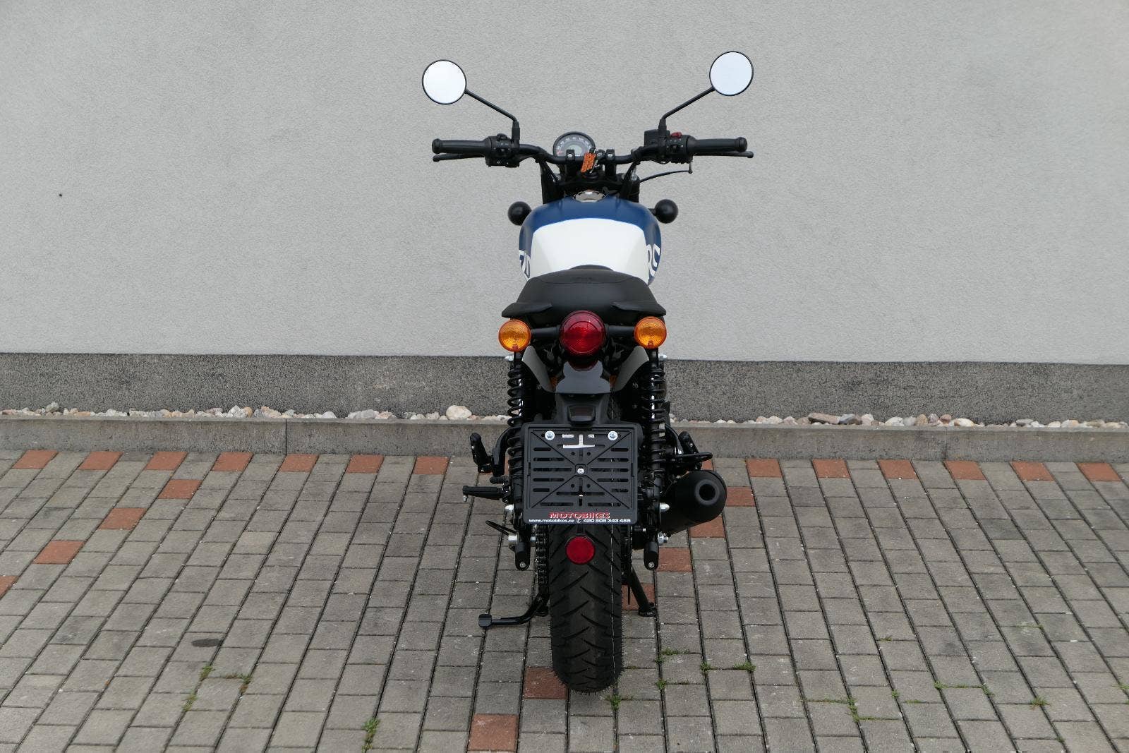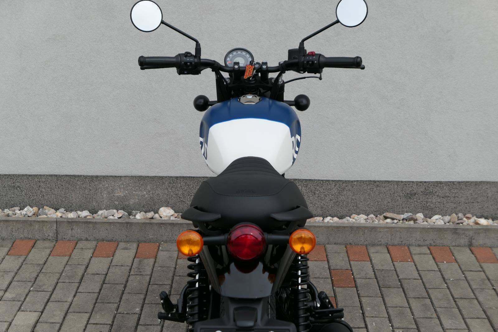 Kratší rozvor, menší váha a sevřenější geometrie, robustní rám je vybavený sadou super ovladatelných 17” kol, módní estetika v retro stylu a motor s objemem 350 ccm jako extra sval do každé tlačenice.