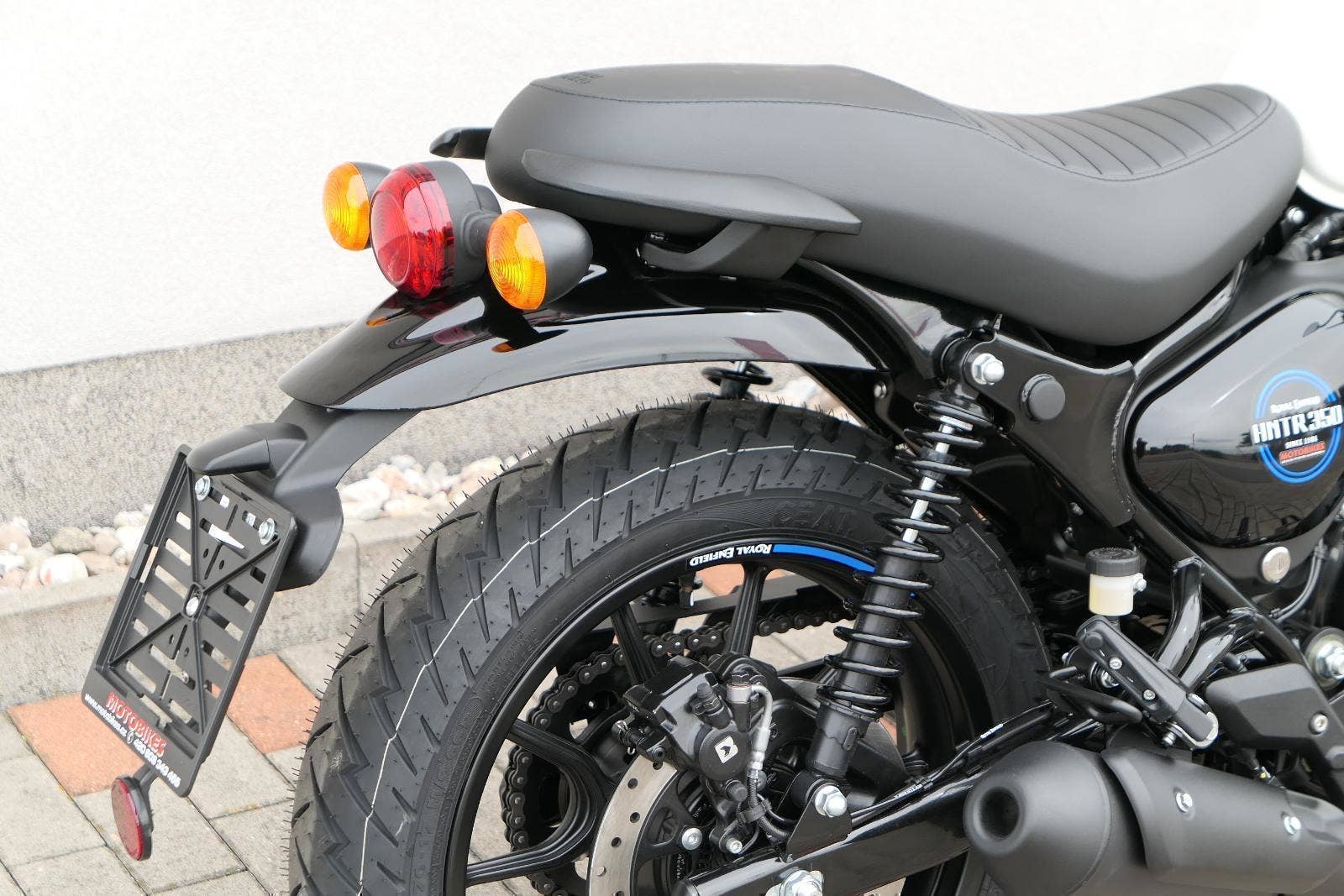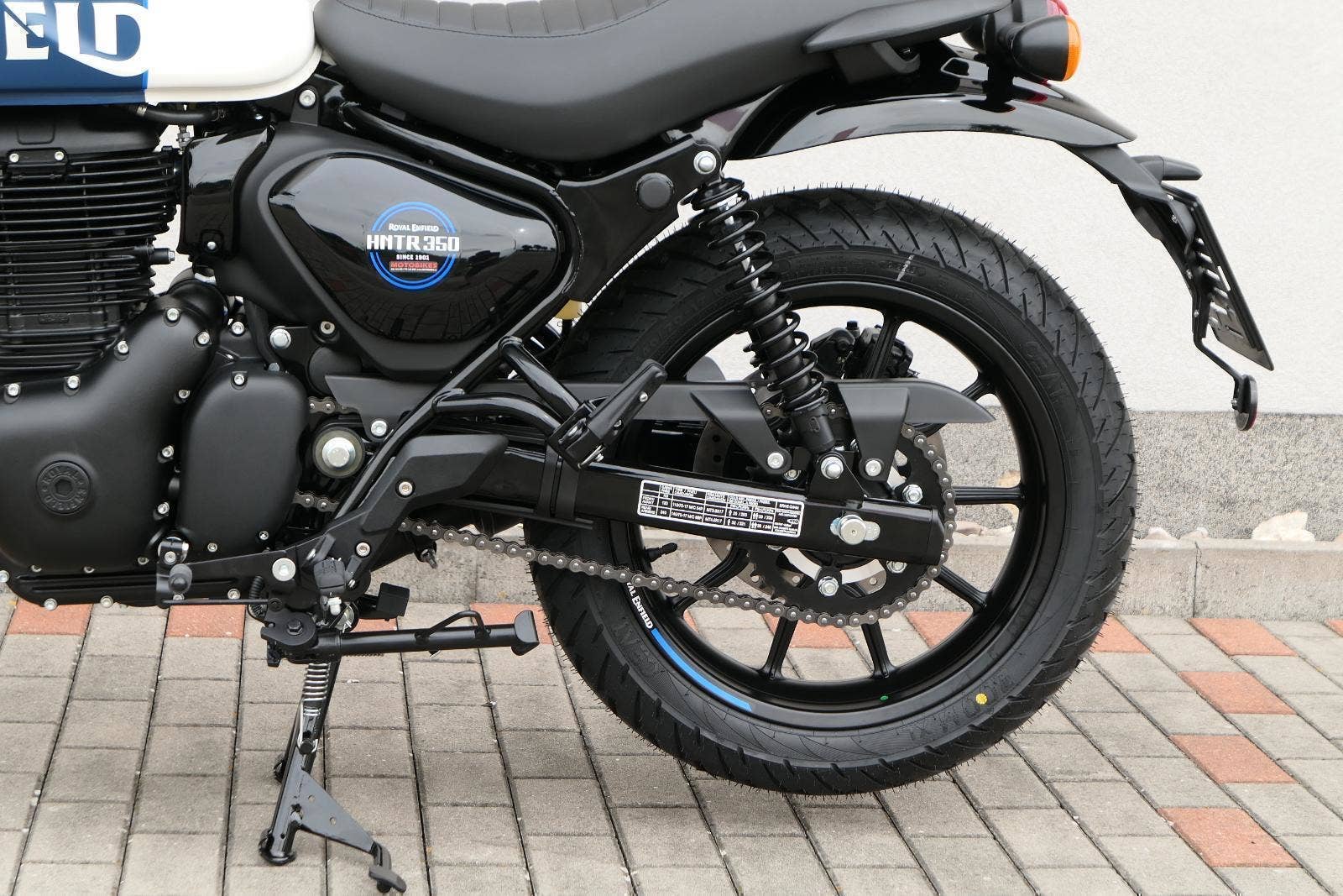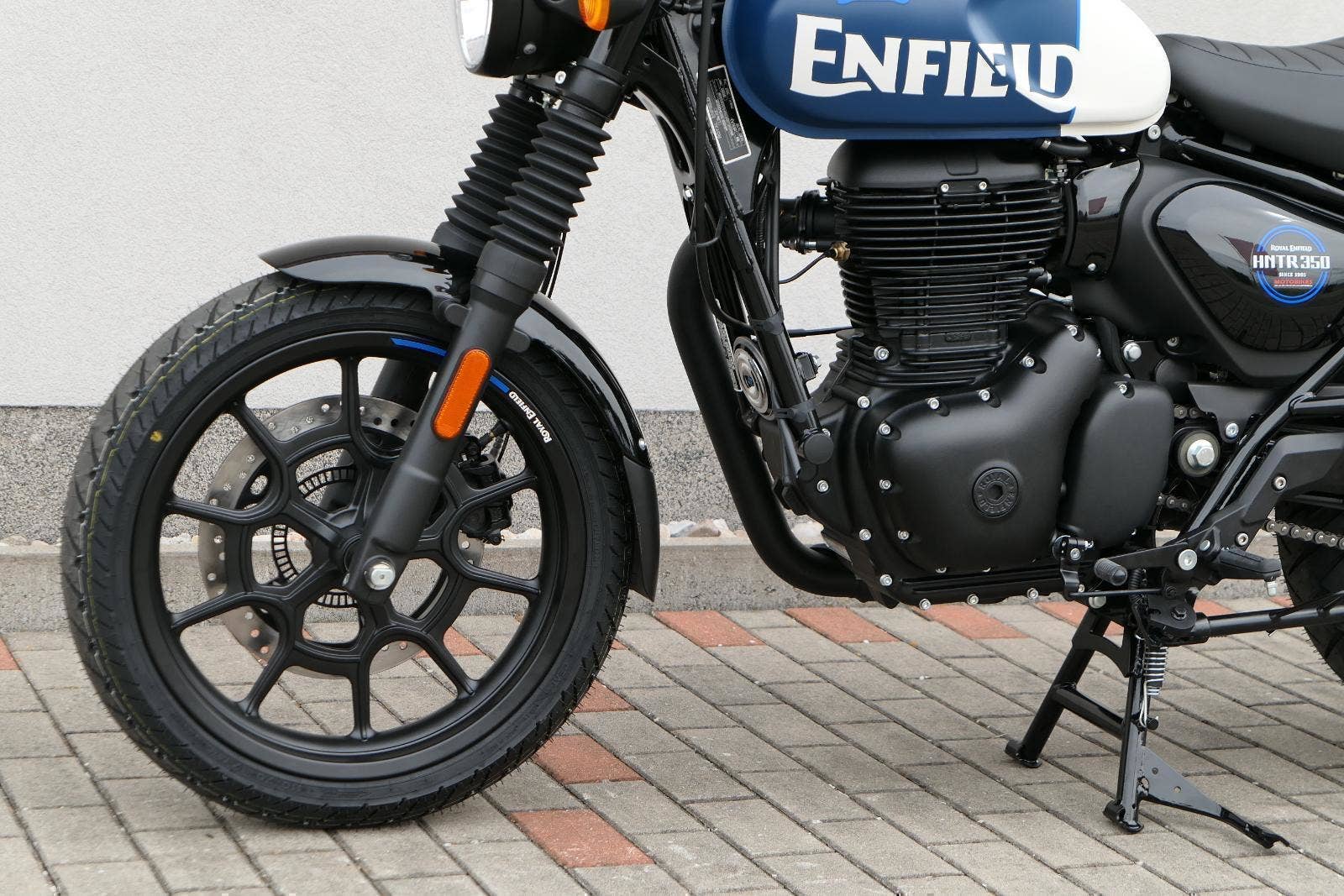 HNTR 350 je jediný vyráběný model Royal Enfield, který používá super ovladatelné 17” přední a zadní pneumatiky a nápadná litá kola. S bezdušovými pneumatikami můžete jet bez přerušení tak dlouho, jak chcete, bez strachu z píchnutí.