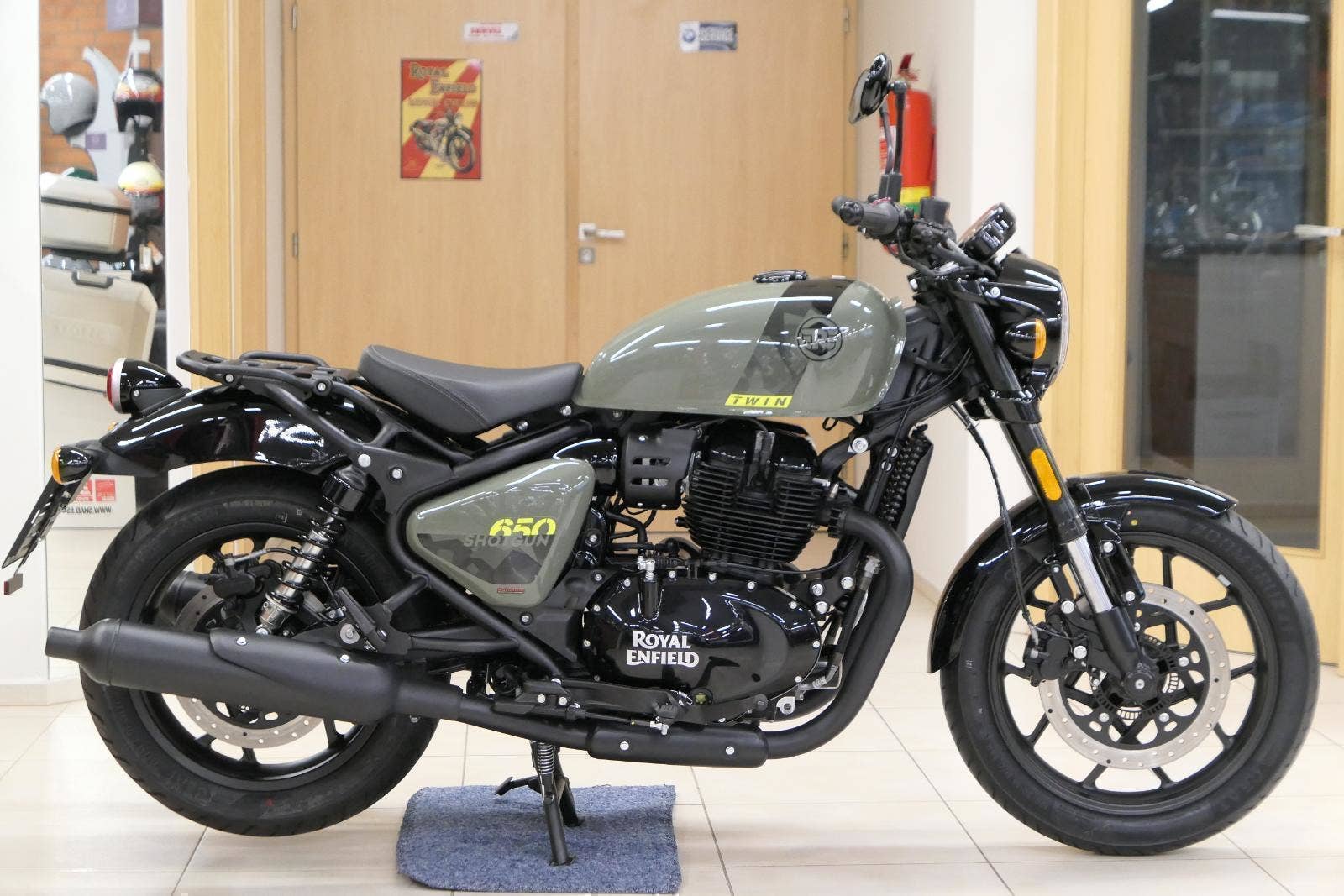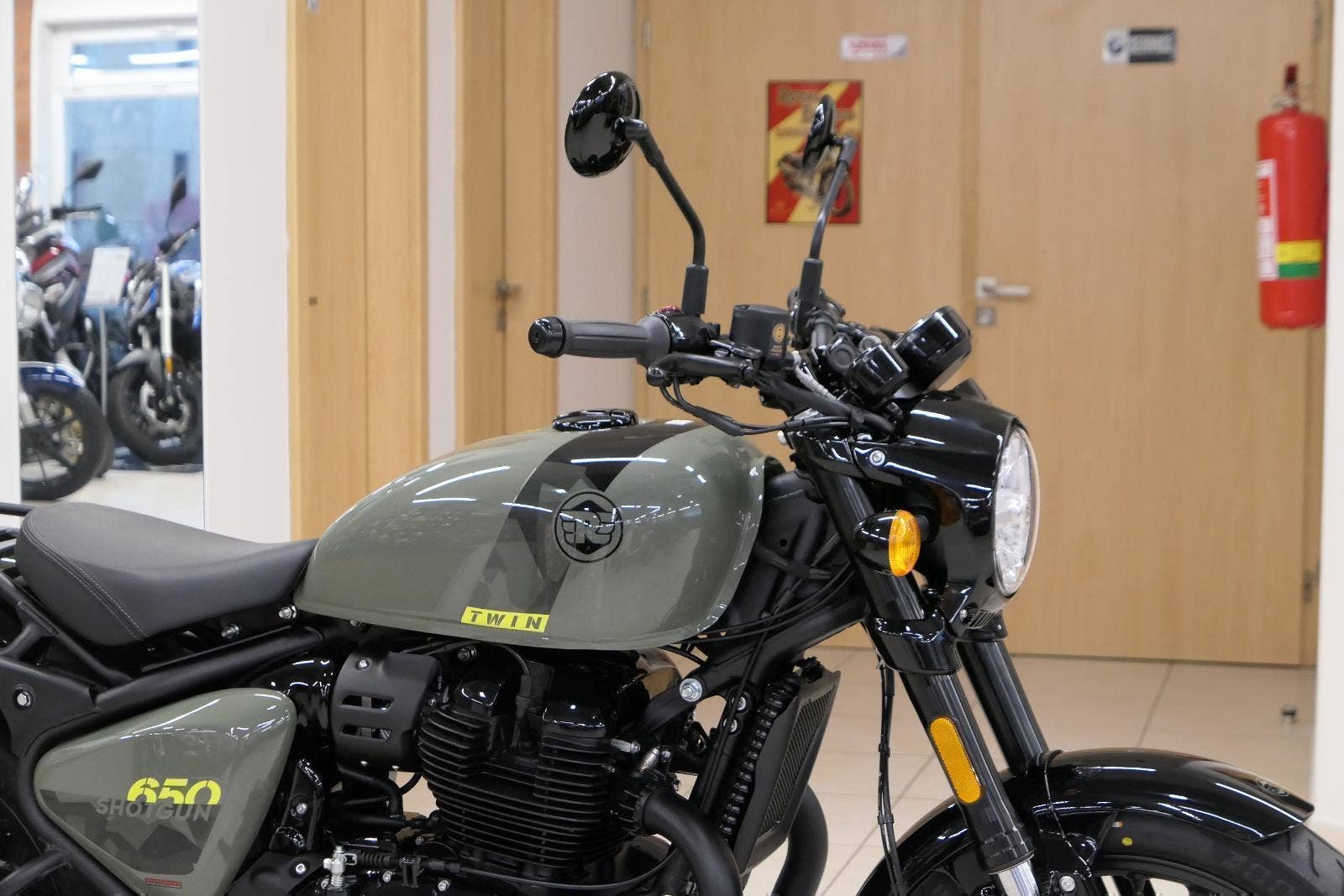 Nový Royal Enfield Shotgun 650 je motocykl, který je definován svým jezdcem. Jeho zcela nová karoserie a postoj jsou prázdným plátnem, které se vzpírá tradiční kategorizaci motocyklů a přebírá osobnost svého jezdce. Jeho modulární konstrukce umožňuje snadné přepínání mezi třemi režimy - od jednomístného přes dvoumístný až po cestovní vůz pro přepravu zavazadel. Otočením klíčku se odklopí sedadlo spolujezdce, což nabízí maximální flexibilitu. Těm, kteří hledají poutavou a agresivní jízdu, nebo těm, kteří hledají pohodovější zážitek, Shotgun 650 bez námahy vyhoví svou vzpřímenou a jistou jízdní pozicí, která podporuje obojí a přizpůsobuje se náladě a stylu jízdy jezdce. Kombinuje retro-futuristický design s moderními prvky. LED světlomet umístěný v nádherné neomoderní gondole na zakázku zůstává věrný estetice neo-retro fúze a zároveň nabízí lepší viditelnost. Motocykl je vybaven digitálně-analogovým sdruženým přístrojem, který je vybaven navigačním systémem Tripper a je navržen tak, aby poskytoval všechny informace, které potřebujete, když se vydáte na cestu. Je také vybaven nabíjecím portem USB, abyste měli svá zařízení na cestách stále nabitá.