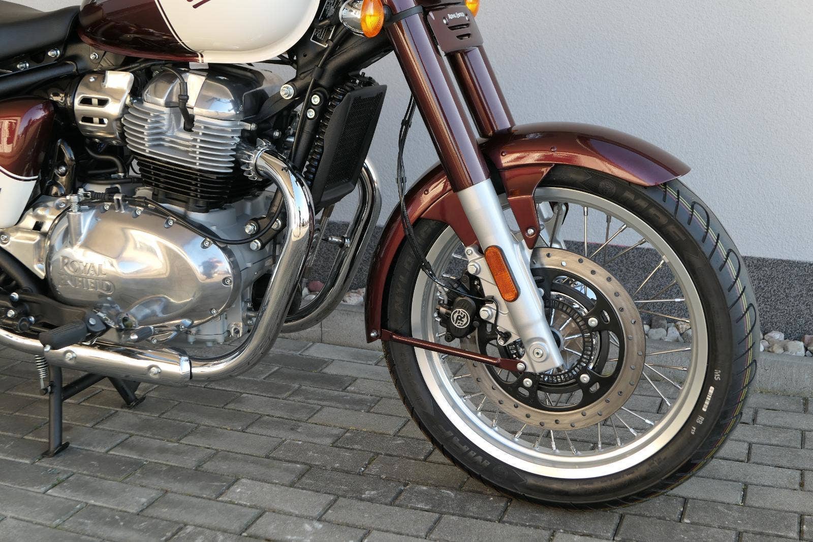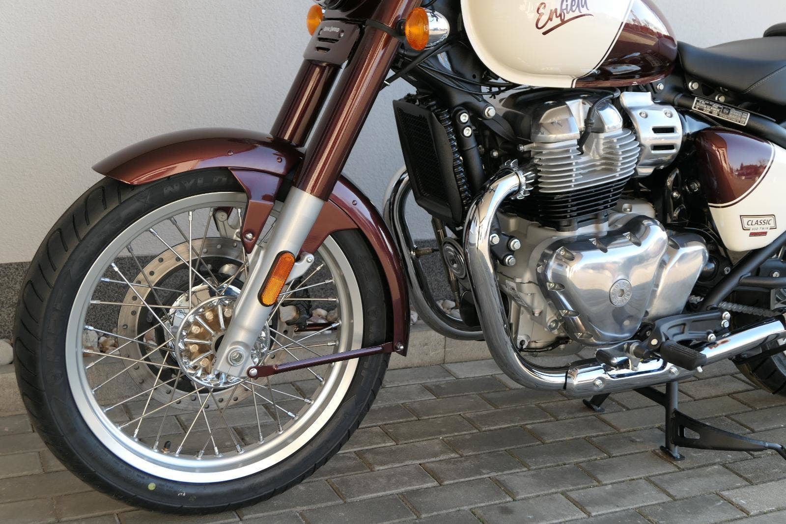 -sebejistotu a plynulost jízdy bez ohledu na to, kam máte namířeno, zajistí ověřené přední odpružení modelu Classic 650 i dvoutrubkové hydraulické zadní odpružení od společnosti Showa.