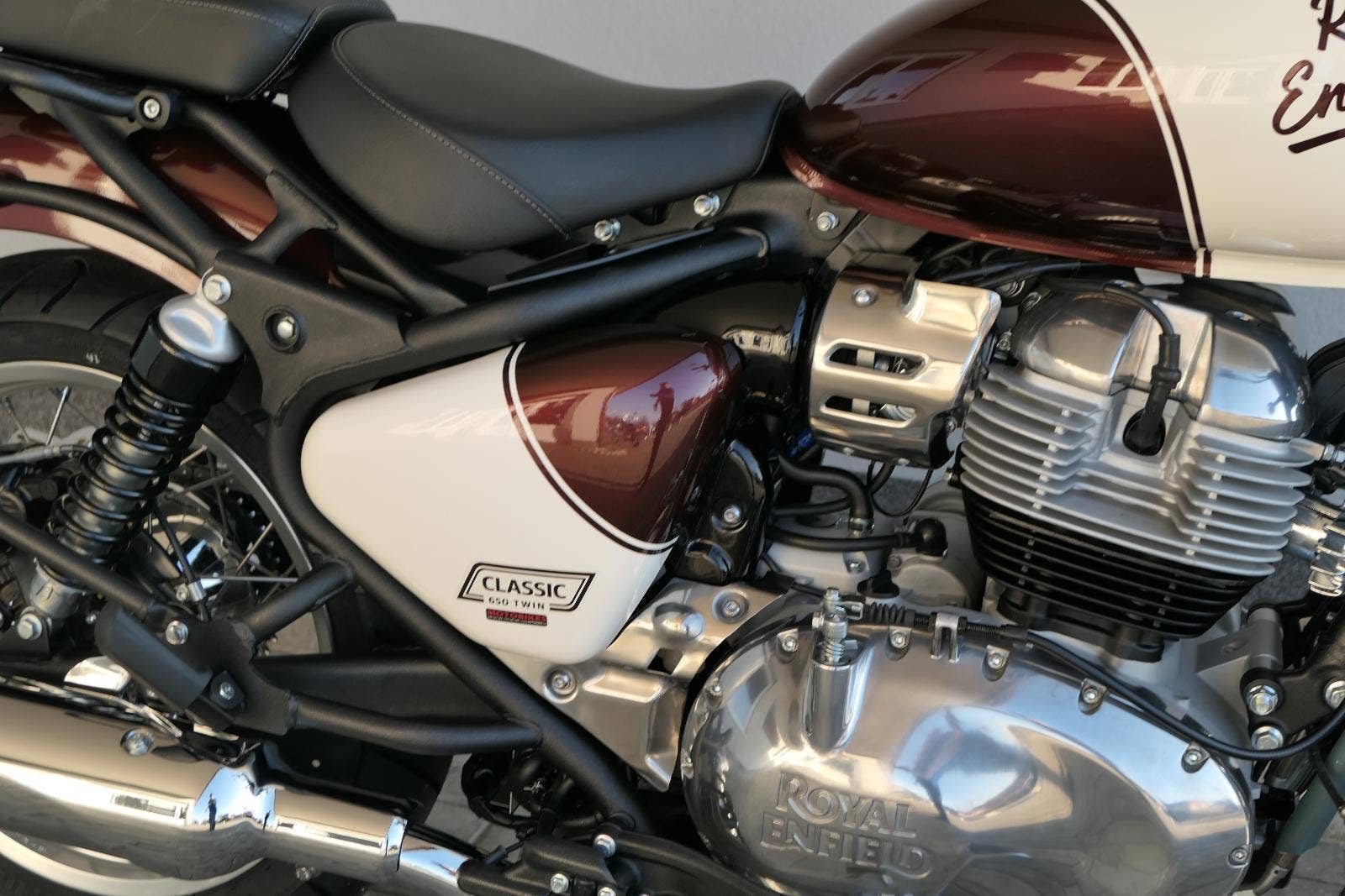 -model Classic vstupuje do éry 650 se dvěma vysoce výkonnými výfuky typu Peashooter v zářivé chromové úpravě, která jim dává zbrusu nový vzhled i zvuk.