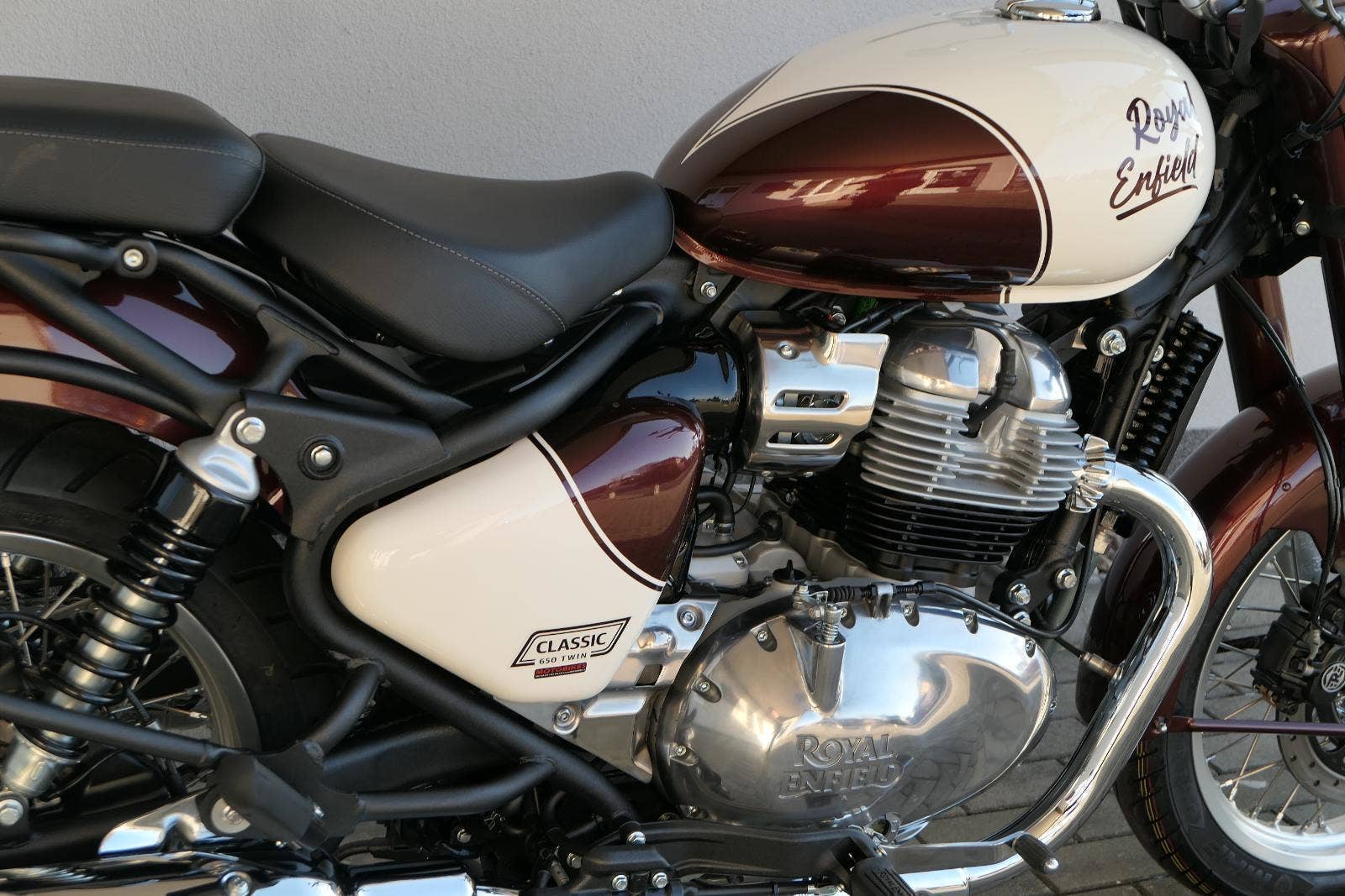 Oblíbený paralelní dvouválec Royal Enfield 648 ccm se představuje u modelu Classic 650 vůbec poprvé v nově vyladěné formě, která je kalibrovaná pro elegantní, plynulou jízdu, avšak s nedostižným výkonem, kdykoli si zamanete.