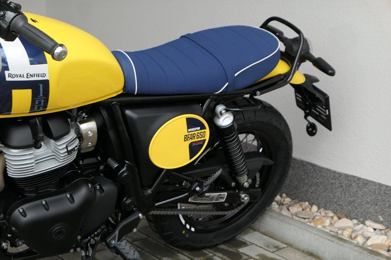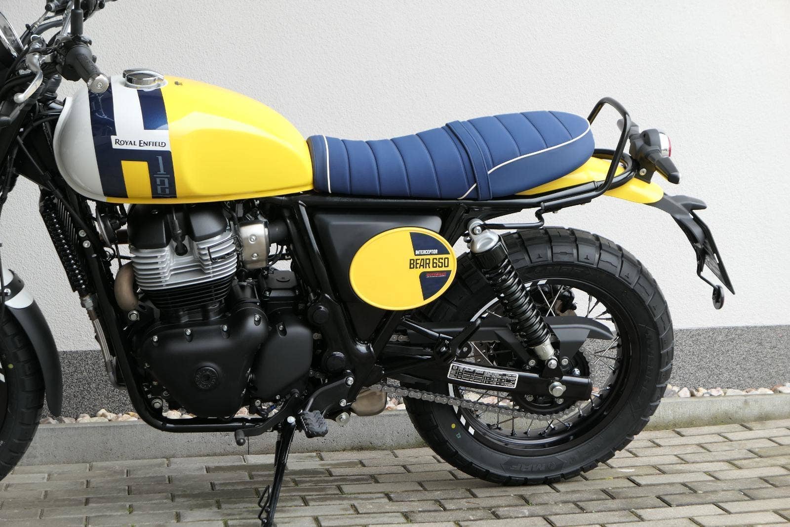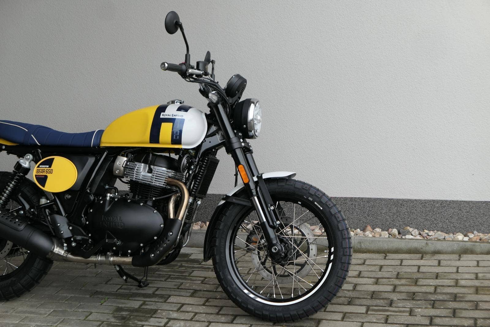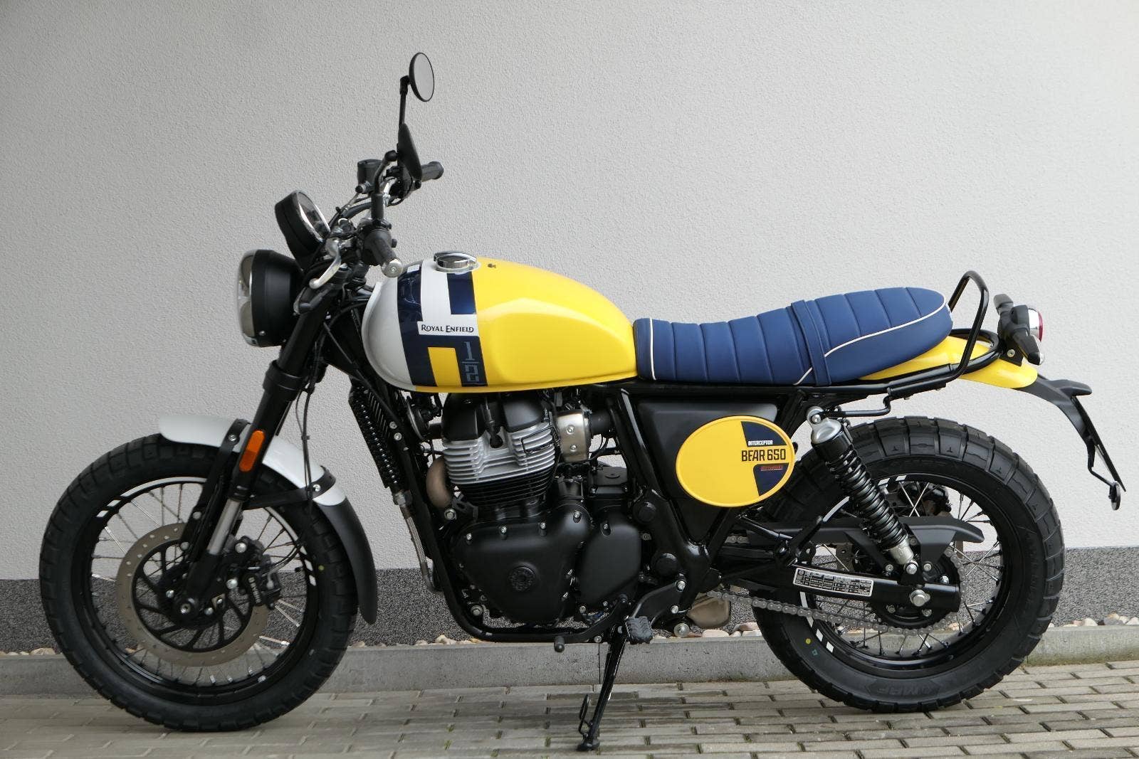 Silniční scramler s duší šedesátých let. Bear 650 ztělesňuje ducha šestnáctiletého nováčka, který se v roce 1960 seřadil vedle stovek spálených nadějí, všichni hladoví po vítězství v nejdivočejším závodě, jaký kdy kalifornská poušť znala - Big Bear Run.