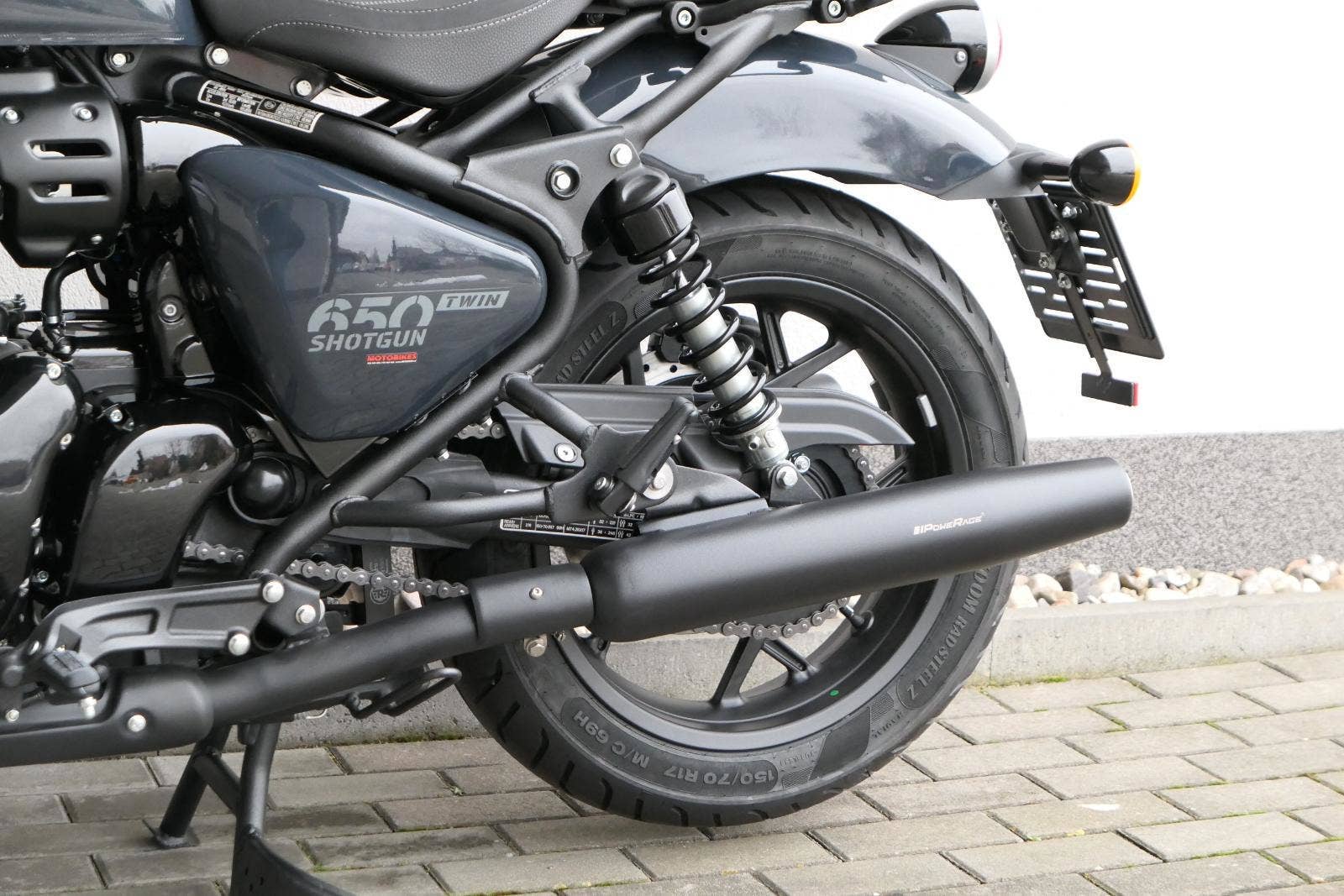 Nový Royal Enfield Shotgun 650 je motocykl, který je definován svým jezdcem. Jeho zcela nová karoserie a postoj jsou prázdným plátnem, které se vzpírá tradiční kategorizaci motocyklů a přebírá osobnost svého jezdce. Jeho modulární konstrukce umožňuje snadné přepínání mezi třemi režimy - od jednomístného přes dvoumístný až po cestovní vůz pro přepravu zavazadel. Otočením klíčku se odklopí sedadlo spolujezdce, což nabízí maximální flexibilitu. Těm, kteří hledají poutavou a agresivní jízdu, nebo těm, kteří hledají pohodovější zážitek, Shotgun 650 bez námahy vyhoví svou vzpřímenou a jistou jízdní pozicí, která podporuje obojí a přizpůsobuje se náladě a stylu jízdy jezdce. Kombinuje retro-futuristický design s moderními prvky. LED světlomet umístěný v nádherné neomoderní gondole na zakázku zůstává věrný estetice neo-retro fúze a zároveň nabízí lepší viditelnost. Motocykl je vybaven digitálně-analogovým sdruženým přístrojem, který je vybaven navigačním systémem Tripper a je navržen tak, aby poskytoval všechny informace, které potřebujete, když se vydáte na cestu. Je také vybaven nabíjecím portem USB, abyste měli svá zařízení na cestách stále nabitá.