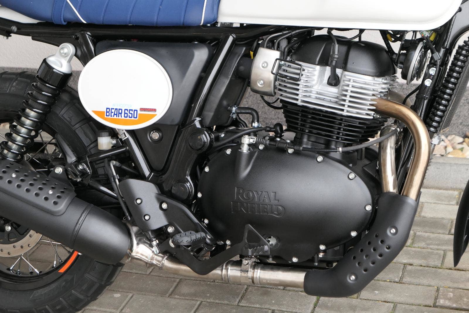 Napájení díky emocím a pohon zajišťuje ověřený paralelní dvouválec Royal Enfield o objemu 650 ccm. Je chráněn pláštěm ve vysoce odolné, prémiové černé úpravě, čímž získává robustní a účelné vzezření a je očividně dokonalým scramblerem.
