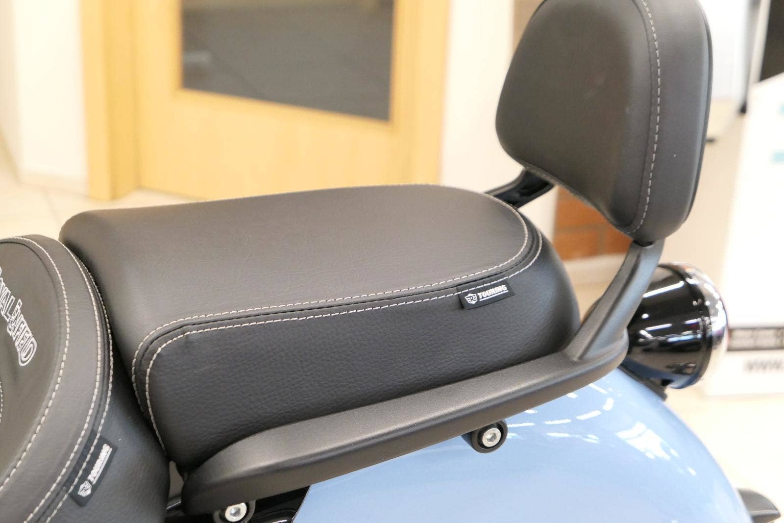 Nízké a široké dělené sedadlo s polstrovaným opěradlem pro snadný přístup a celodenní jízdní komfort pro jezdce i spolujezdce.