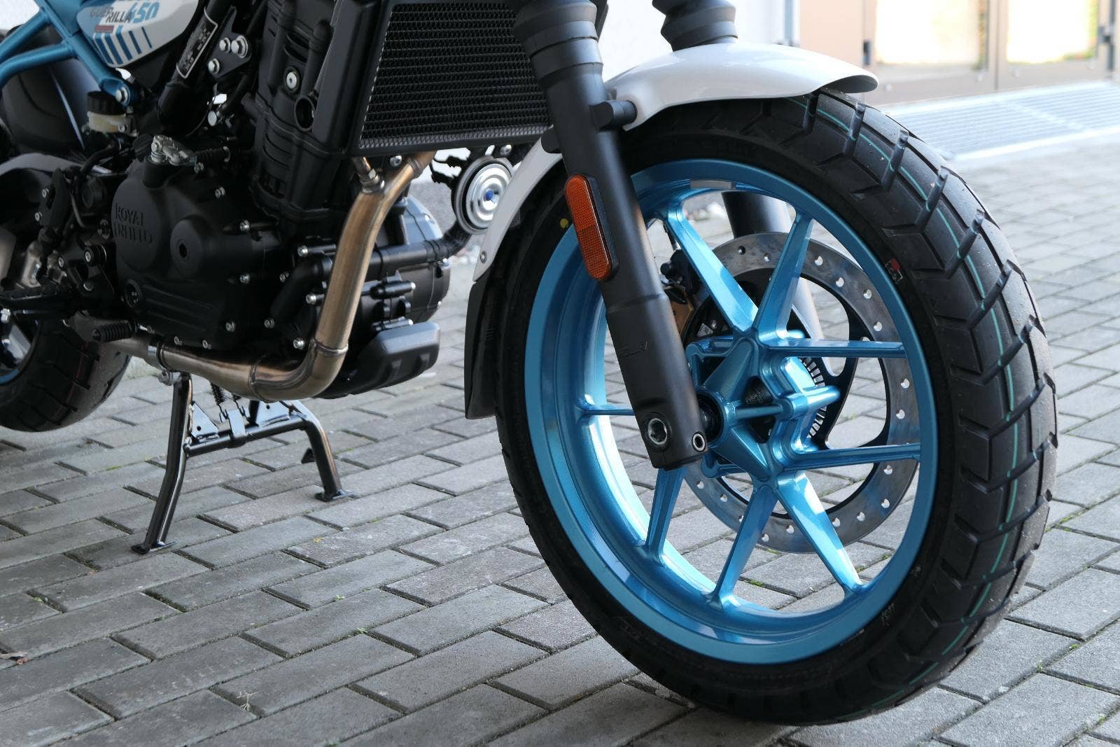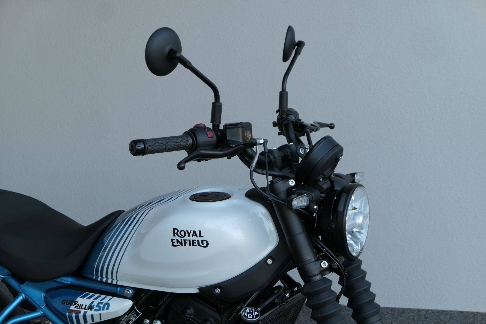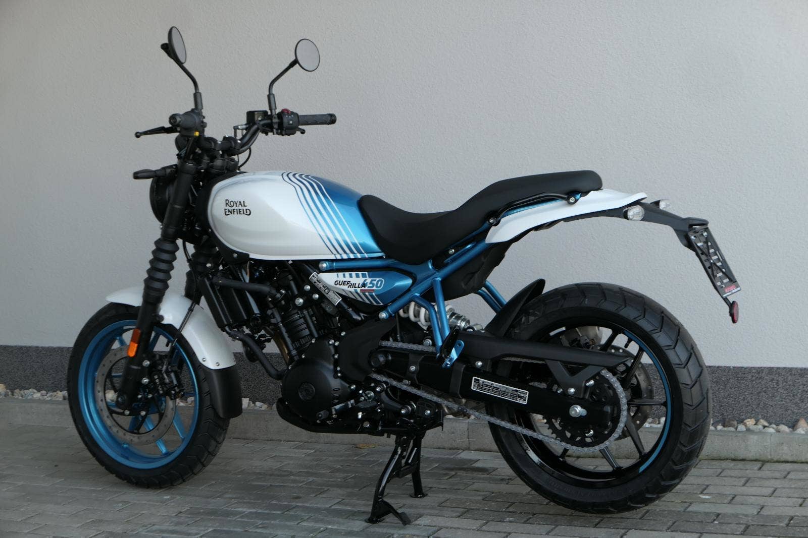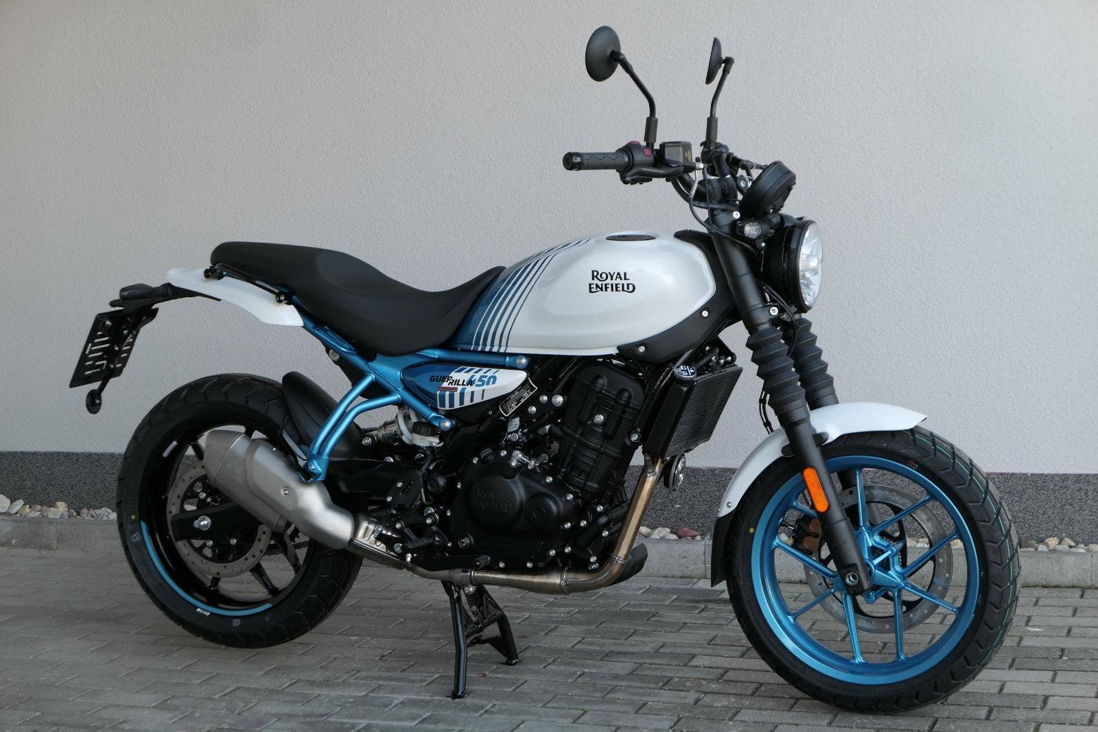 Royal Enfield Guerrilla 450 sdílí motor a technický základ s cestovním endurem Himalayan 450, stojí ale na malých silničních kolech a místo cestování míří na každodenní dojíždění, i na radovánky okolo komína.