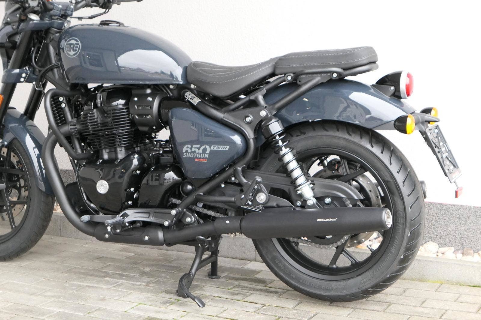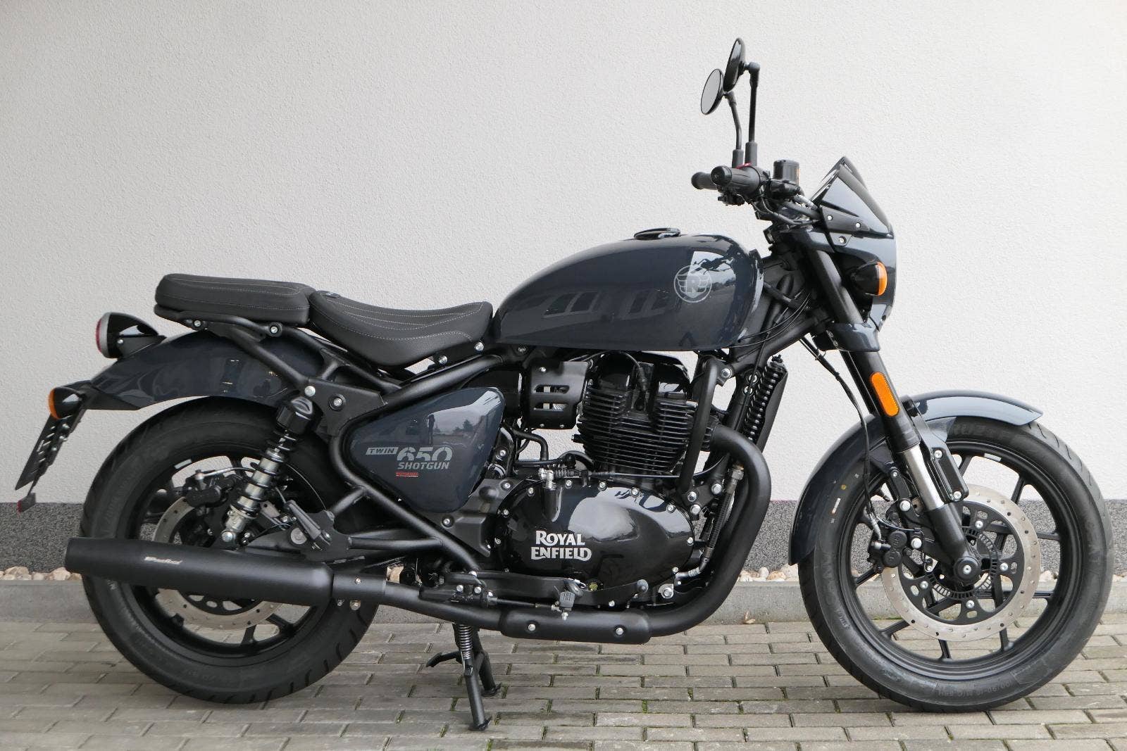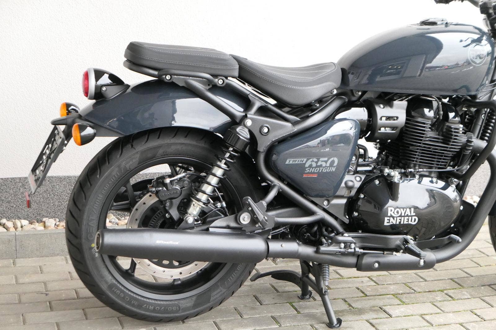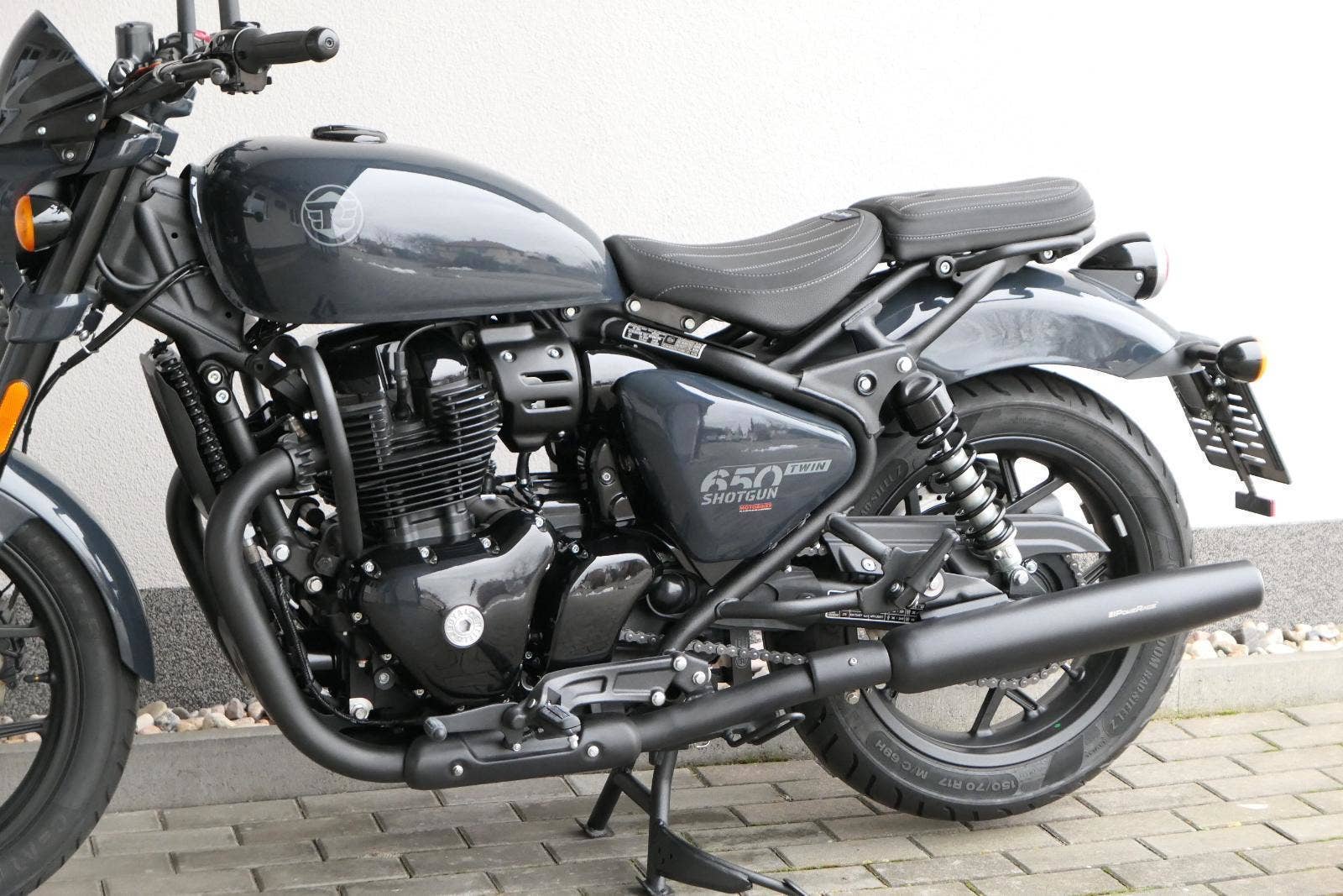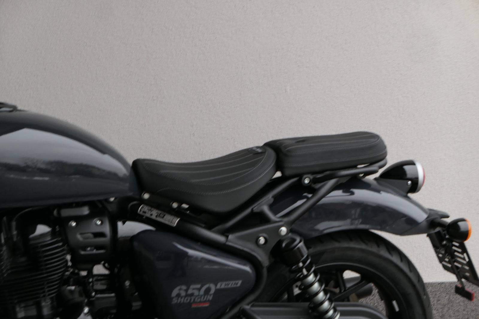 Nový Royal Enfield Shotgun 650 je motocykl, který je definován svým jezdcem. Jeho zcela nová karoserie a postoj jsou prázdným plátnem, které se vzpírá tradiční kategorizaci motocyklů a přebírá osobnost svého jezdce. Jeho modulární konstrukce umožňuje snadné přepínání mezi třemi režimy - od jednomístného přes dvoumístný až po cestovní vůz pro přepravu zavazadel. Otočením klíčku se odklopí sedadlo spolujezdce, což nabízí maximální flexibilitu. Těm, kteří hledají poutavou a agresivní jízdu, nebo těm, kteří hledají pohodovější zážitek, Shotgun 650 bez námahy vyhoví svou vzpřímenou a jistou jízdní pozicí, která podporuje obojí a přizpůsobuje se náladě a stylu jízdy jezdce. Kombinuje retro-futuristický design s moderními prvky. LED světlomet umístěný v nádherné neomoderní gondole na zakázku zůstává věrný estetice neo-retro fúze a zároveň nabízí lepší viditelnost. Motocykl je vybaven digitálně-analogovým sdruženým přístrojem, který je vybaven navigačním systémem Tripper a je navržen tak, aby poskytoval všechny informace, které potřebujete, když se vydáte na cestu. Je také vybaven nabíjecím portem USB, abyste měli svá zařízení na cestách stále nabitá.