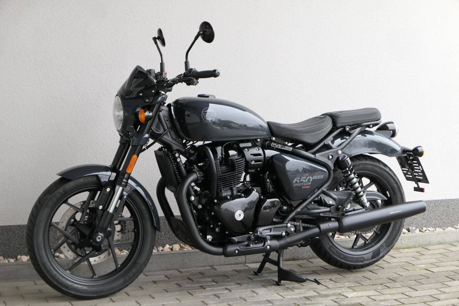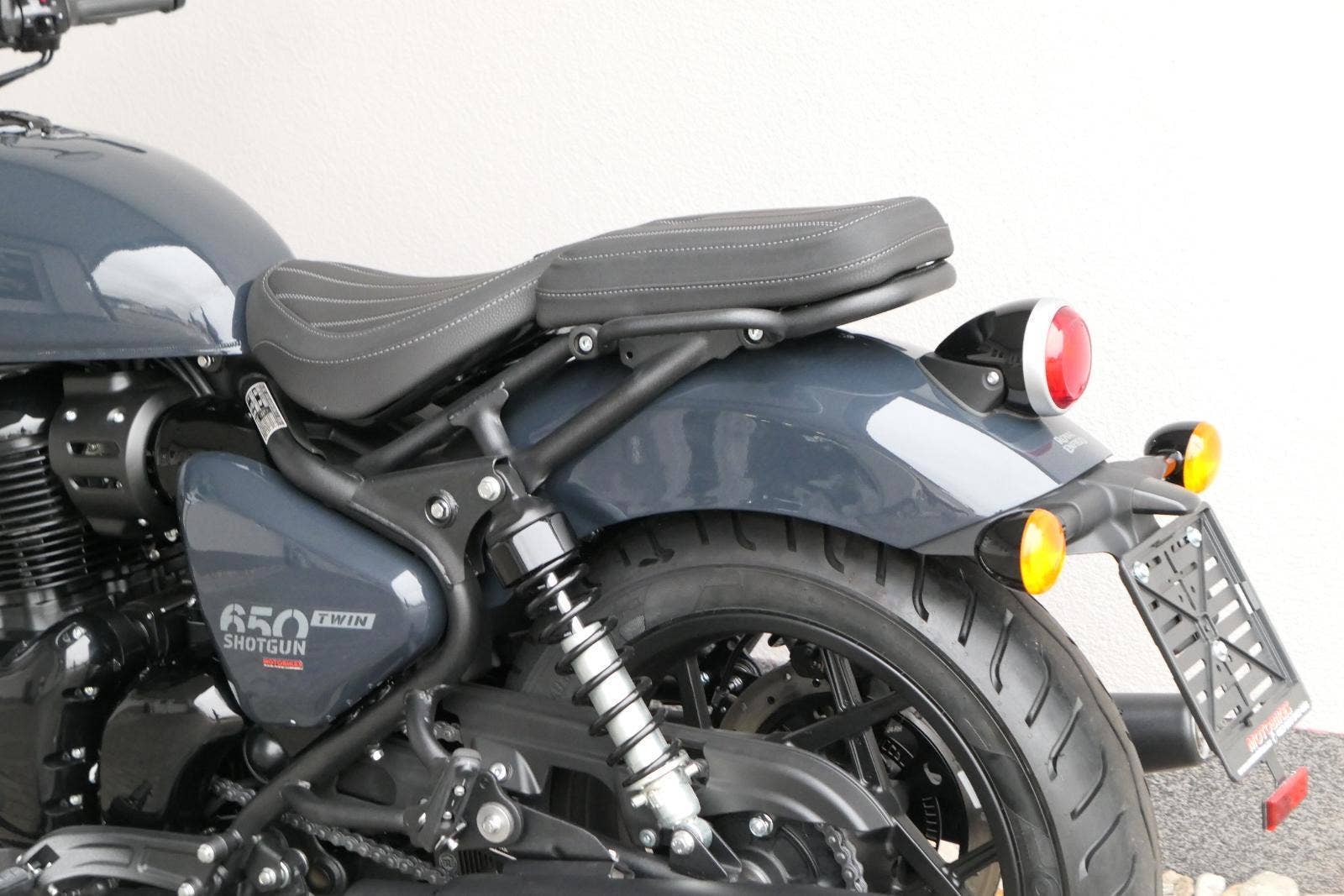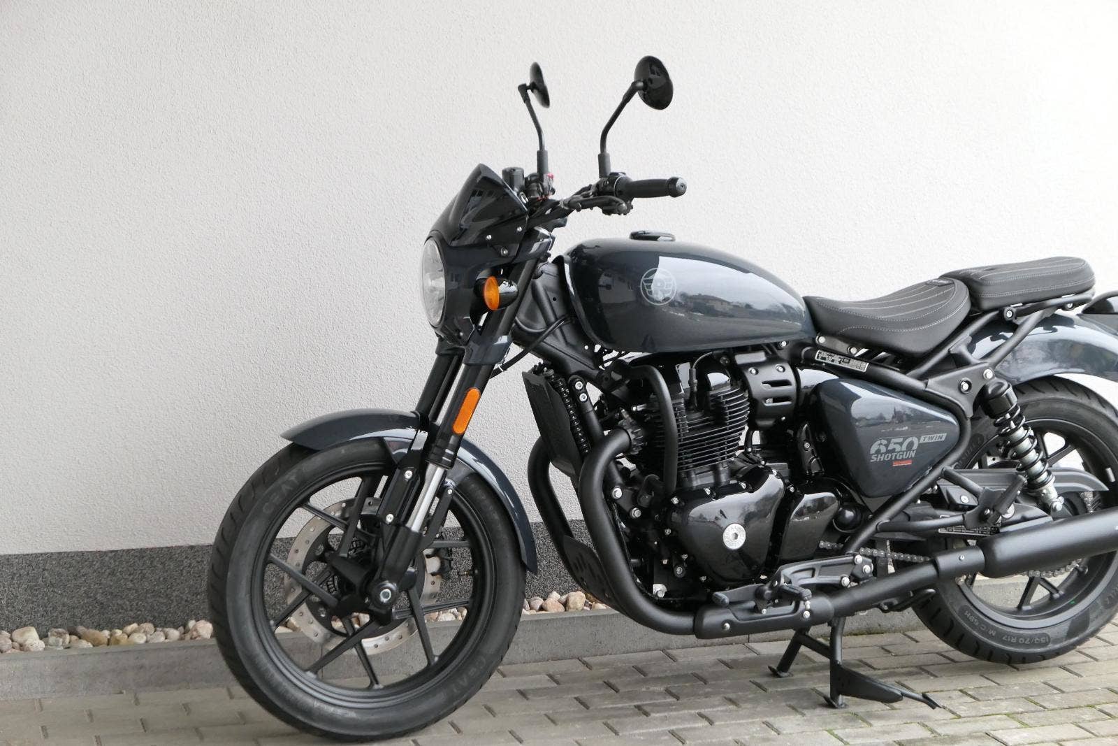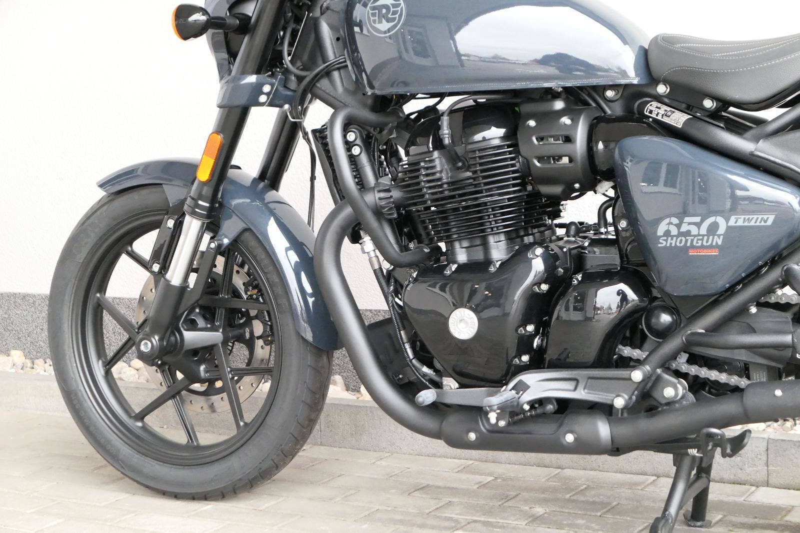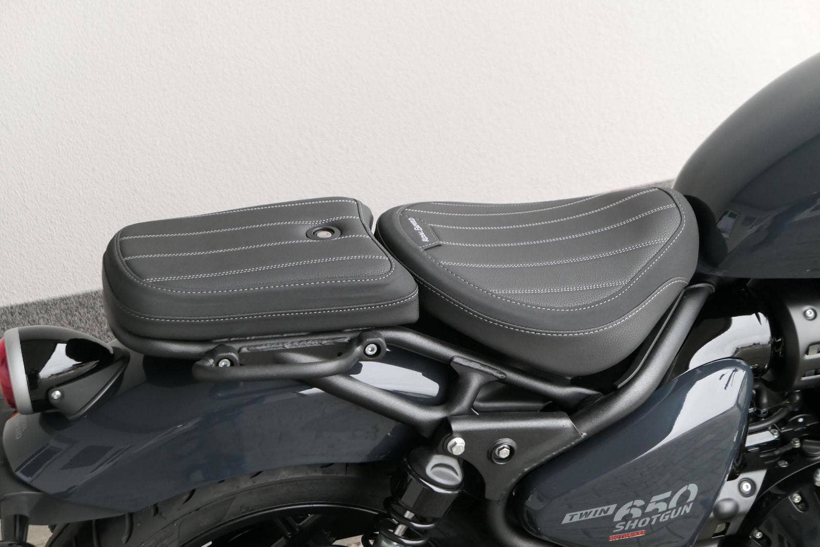 Nový Royal Enfield Shotgun 650 je motocykl, který je definován svým jezdcem. Jeho zcela nová karoserie a postoj jsou prázdným plátnem, které se vzpírá tradiční kategorizaci motocyklů a přebírá osobnost svého jezdce. Jeho modulární konstrukce umožňuje snadné přepínání mezi třemi režimy - od jednomístného přes dvoumístný až po cestovní vůz pro přepravu zavazadel. Otočením klíčku se odklopí sedadlo spolujezdce, což nabízí maximální flexibilitu. Těm, kteří hledají poutavou a agresivní jízdu, nebo těm, kteří hledají pohodovější zážitek, Shotgun 650 bez námahy vyhoví svou vzpřímenou a jistou jízdní pozicí, která podporuje obojí a přizpůsobuje se náladě a stylu jízdy jezdce. Kombinuje retro-futuristický design s moderními prvky. LED světlomet umístěný v nádherné neomoderní gondole na zakázku zůstává věrný estetice neo-retro fúze a zároveň nabízí lepší viditelnost. Motocykl je vybaven digitálně-analogovým sdruženým přístrojem, který je vybaven navigačním systémem Tripper a je navržen tak, aby poskytoval všechny informace, které potřebujete, když se vydáte na cestu. Je také vybaven nabíjecím portem USB, abyste měli svá zařízení na cestách stále nabitá.
