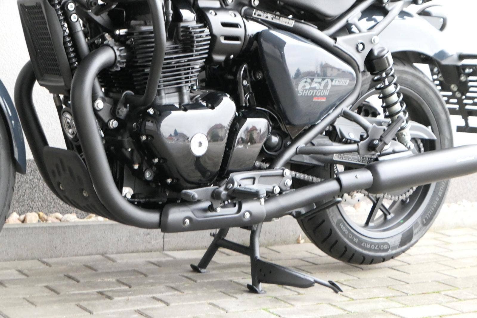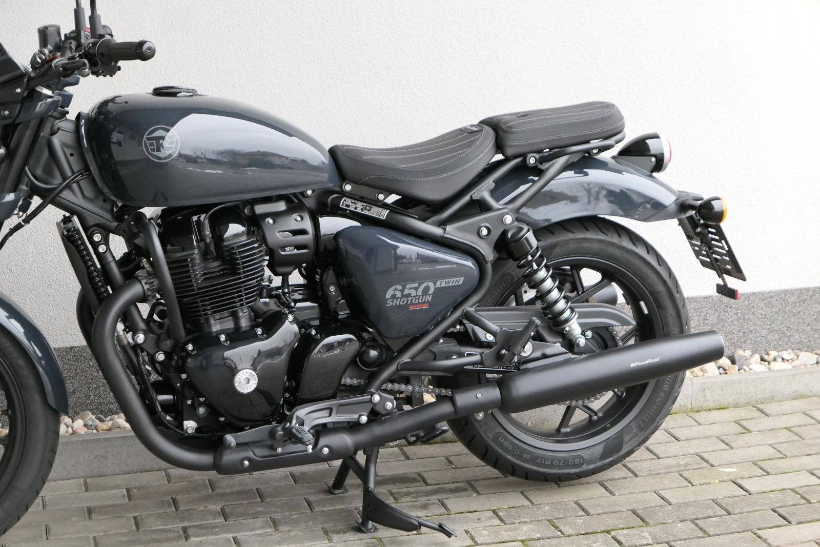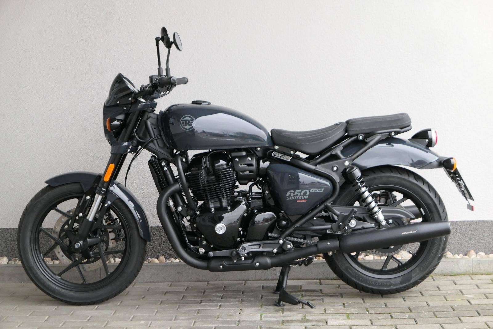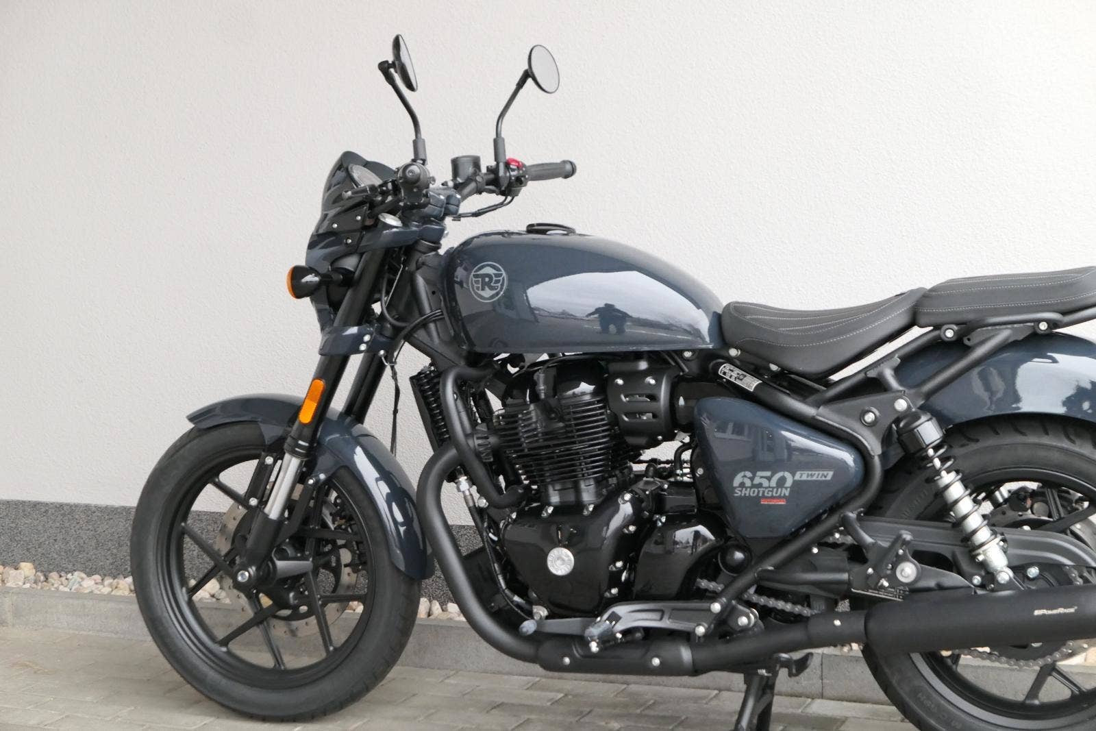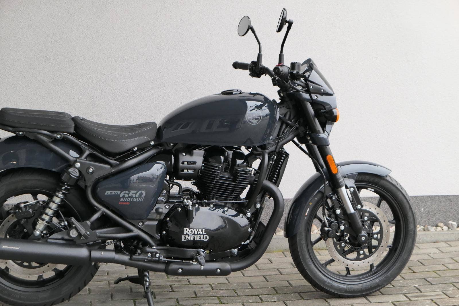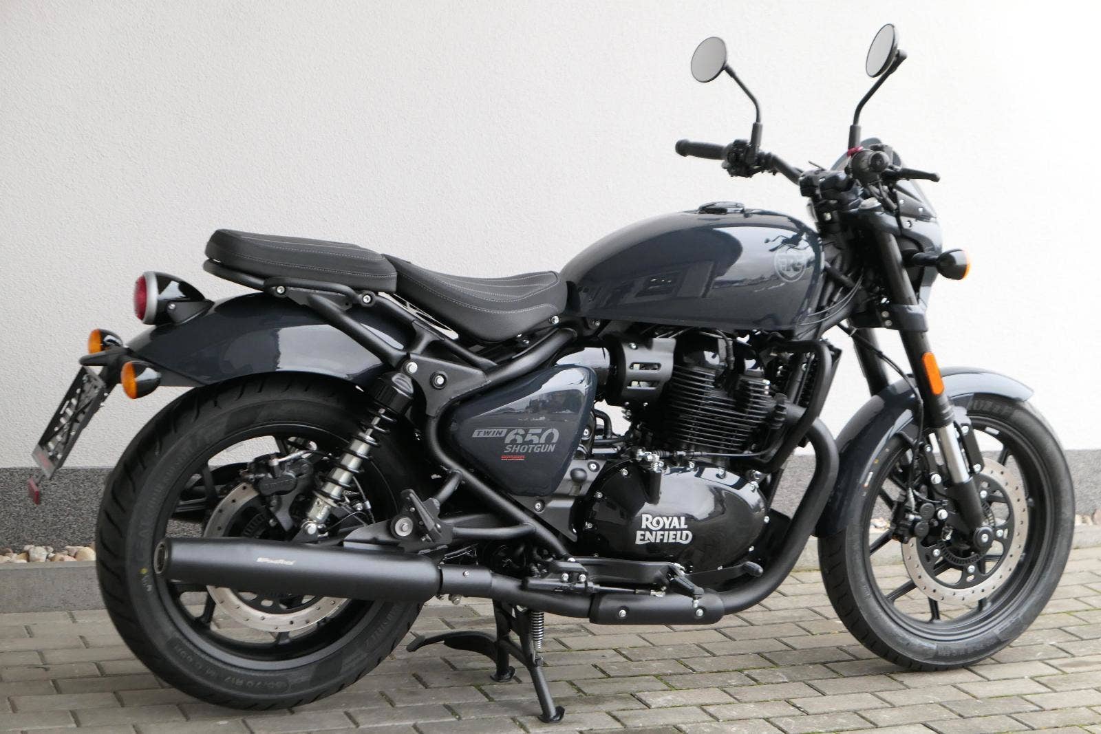 Nový Royal Enfield Shotgun 650 je motocykl, který je definován svým jezdcem. Jeho zcela nová karoserie a postoj jsou prázdným plátnem, které se vzpírá tradiční kategorizaci motocyklů a přebírá osobnost svého jezdce. Jeho modulární konstrukce umožňuje snadné přepínání mezi třemi režimy - od jednomístného přes dvoumístný až po cestovní vůz pro přepravu zavazadel. Otočením klíčku se odklopí sedadlo spolujezdce, což nabízí maximální flexibilitu. Těm, kteří hledají poutavou a agresivní jízdu, nebo těm, kteří hledají pohodovější zážitek, Shotgun 650 bez námahy vyhoví svou vzpřímenou a jistou jízdní pozicí, která podporuje obojí a přizpůsobuje se náladě a stylu jízdy jezdce. Kombinuje retro-futuristický design s moderními prvky. LED světlomet umístěný v nádherné neomoderní gondole na zakázku zůstává věrný estetice neo-retro fúze a zároveň nabízí lepší viditelnost. Motocykl je vybaven digitálně-analogovým sdruženým přístrojem, který je vybaven navigačním systémem Tripper a je navržen tak, aby poskytoval všechny informace, které potřebujete, když se vydáte na cestu. Je také vybaven nabíjecím portem USB, abyste měli svá zařízení na cestách stále nabitá.