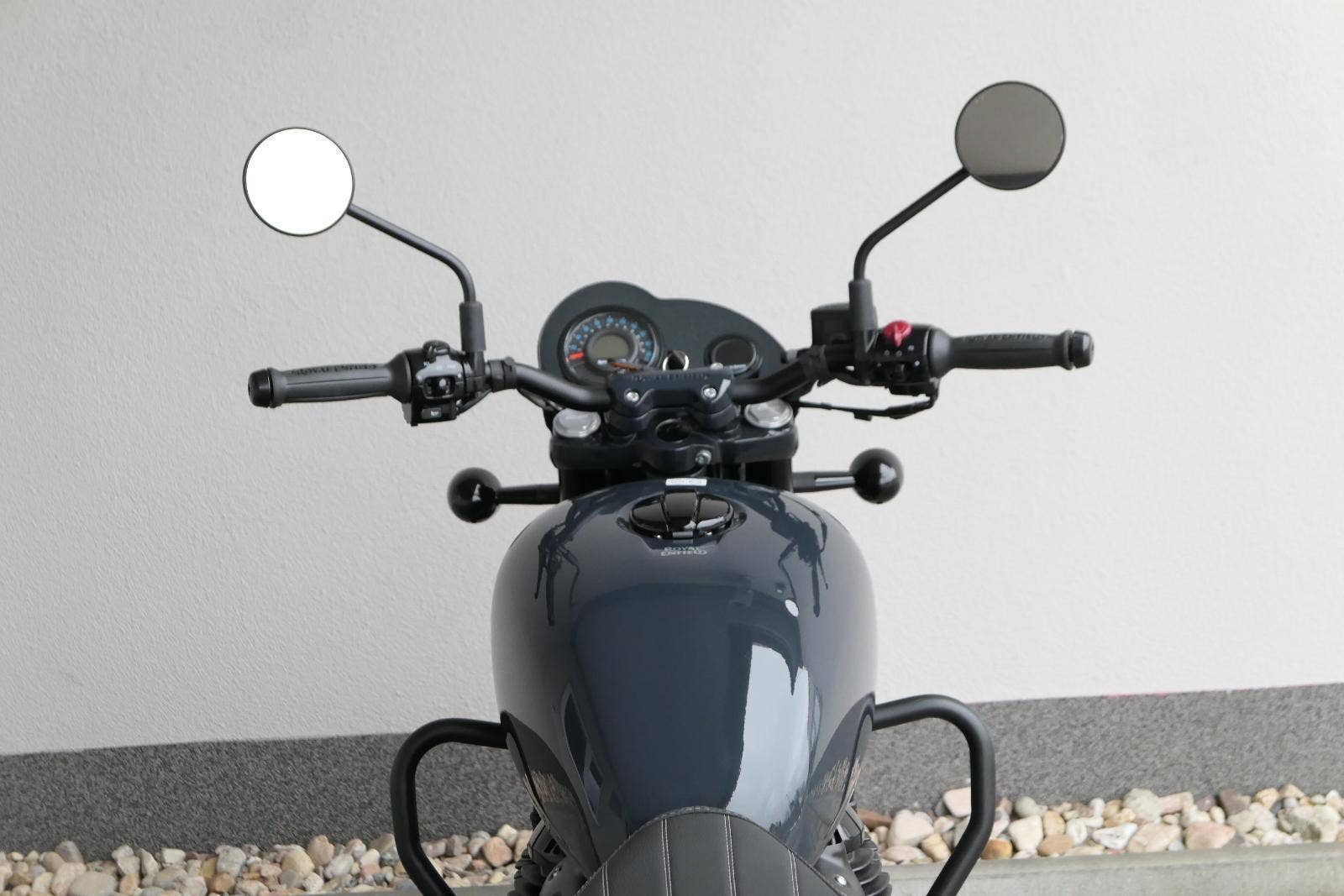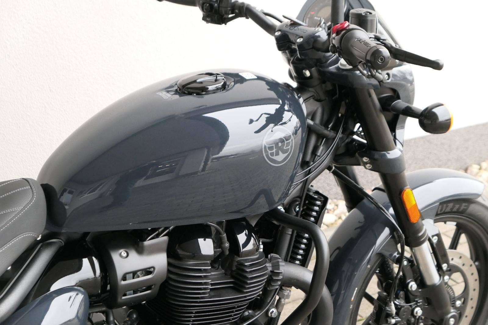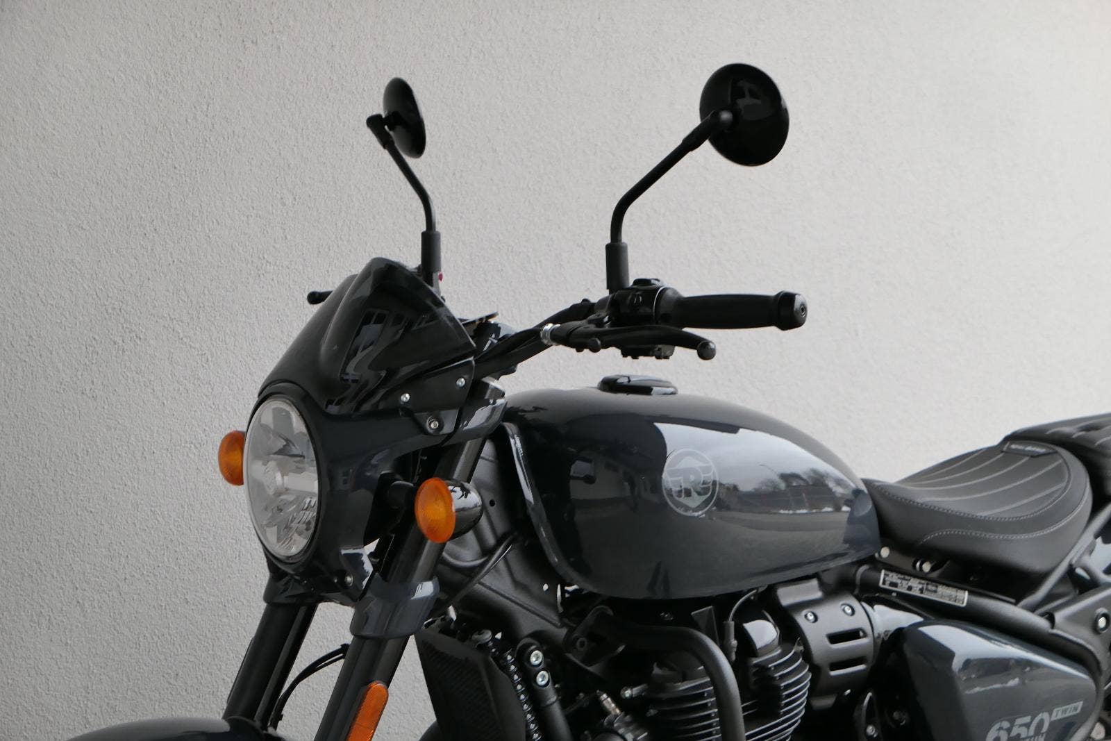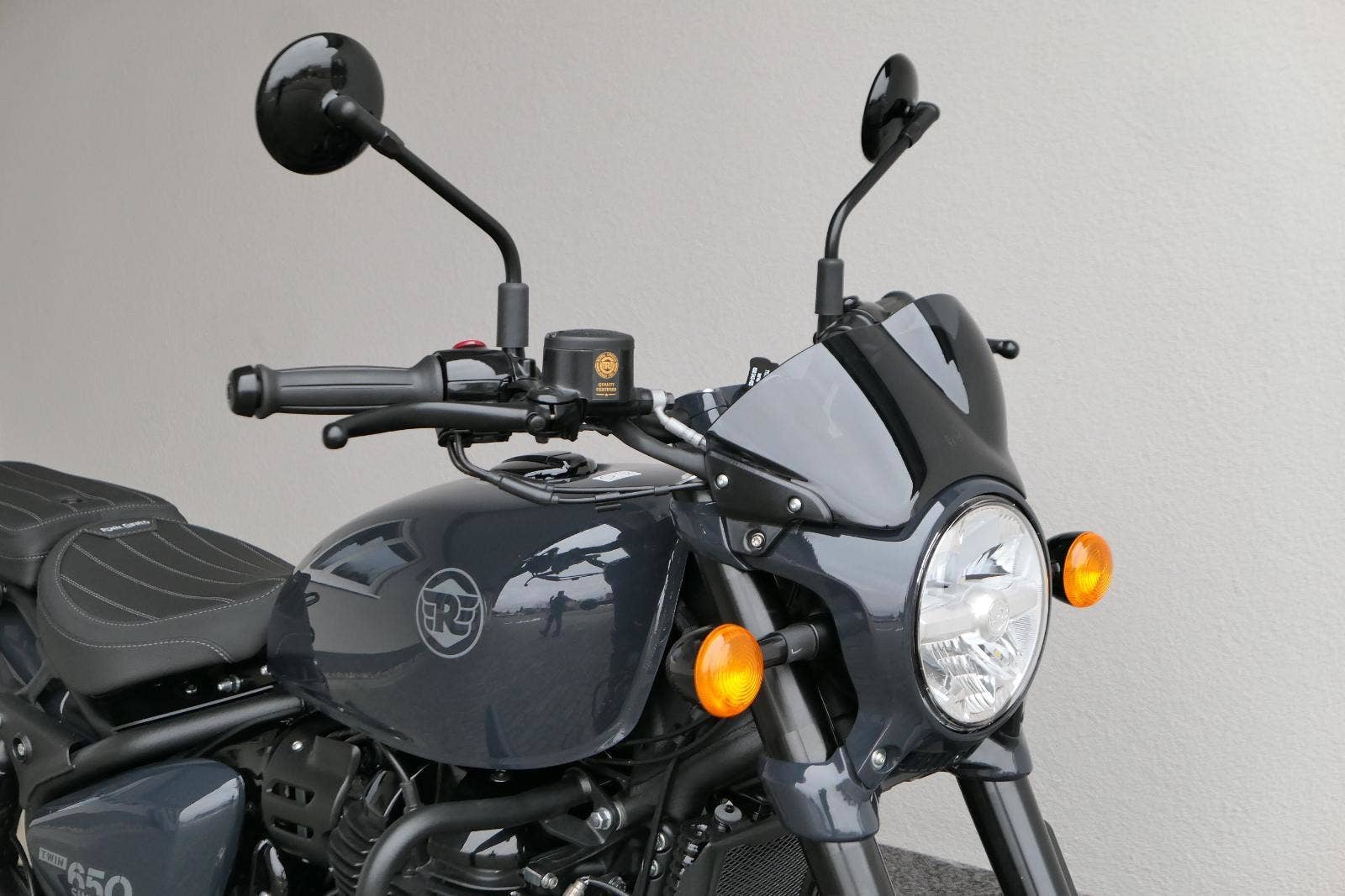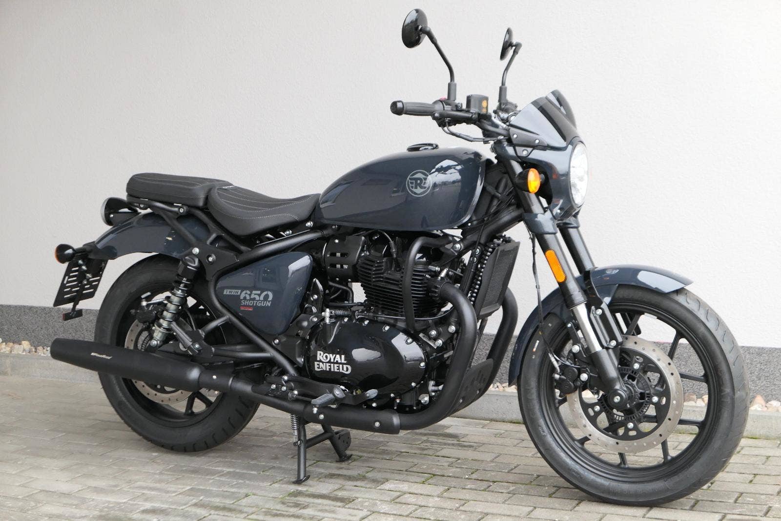 Nový Royal Enfield Shotgun 650 je motocykl, který je definován svým jezdcem. Jeho zcela nová karoserie a postoj jsou prázdným plátnem, které se vzpírá tradiční kategorizaci motocyklů a přebírá osobnost svého jezdce. Jeho modulární konstrukce umožňuje snadné přepínání mezi třemi režimy - od jednomístného přes dvoumístný až po cestovní vůz pro přepravu zavazadel. Otočením klíčku se odklopí sedadlo spolujezdce, což nabízí maximální flexibilitu. Těm, kteří hledají poutavou a agresivní jízdu, nebo těm, kteří hledají pohodovější zážitek, Shotgun 650 bez námahy vyhoví svou vzpřímenou a jistou jízdní pozicí, která podporuje obojí a přizpůsobuje se náladě a stylu jízdy jezdce. Kombinuje retro-futuristický design s moderními prvky. LED světlomet umístěný v nádherné neomoderní gondole na zakázku zůstává věrný estetice neo-retro fúze a zároveň nabízí lepší viditelnost. Motocykl je vybaven digitálně-analogovým sdruženým přístrojem, který je vybaven navigačním systémem Tripper a je navržen tak, aby poskytoval všechny informace, které potřebujete, když se vydáte na cestu. Je také vybaven nabíjecím portem USB, abyste měli svá zařízení na cestách stále nabitá.