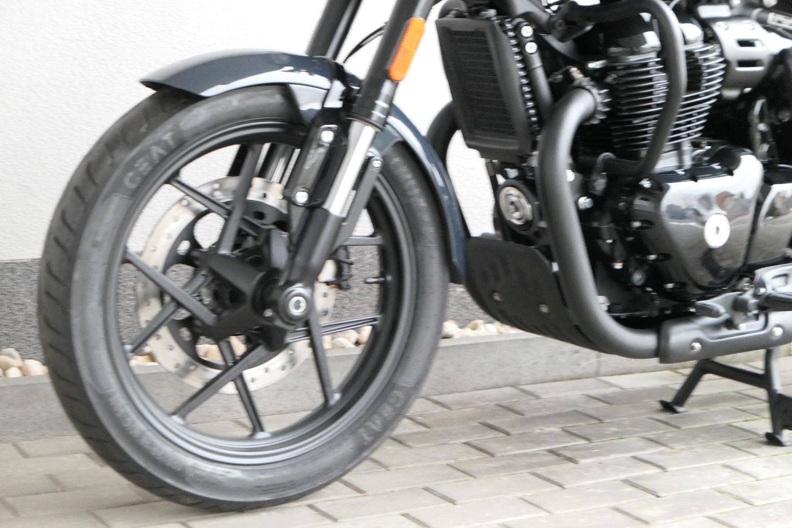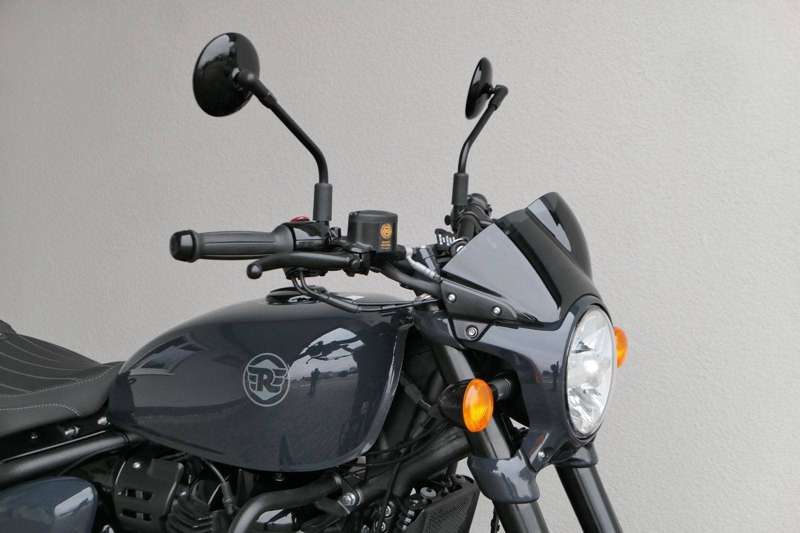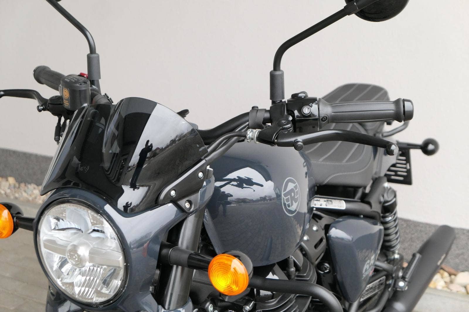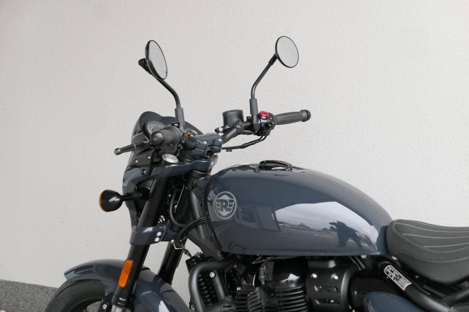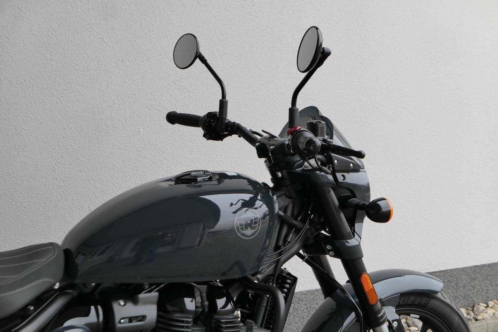 Nový Royal Enfield Shotgun 650 je motocykl, který je definován svým jezdcem. Jeho zcela nová karoserie a postoj jsou prázdným plátnem, které se vzpírá tradiční kategorizaci motocyklů a přebírá osobnost svého jezdce. Jeho modulární konstrukce umožňuje snadné přepínání mezi třemi režimy - od jednomístného přes dvoumístný až po cestovní vůz pro přepravu zavazadel. Otočením klíčku se odklopí sedadlo spolujezdce, což nabízí maximální flexibilitu. Těm, kteří hledají poutavou a agresivní jízdu, nebo těm, kteří hledají pohodovější zážitek, Shotgun 650 bez námahy vyhoví svou vzpřímenou a jistou jízdní pozicí, která podporuje obojí a přizpůsobuje se náladě a stylu jízdy jezdce. Kombinuje retro-futuristický design s moderními prvky. LED světlomet umístěný v nádherné neomoderní gondole na zakázku zůstává věrný estetice neo-retro fúze a zároveň nabízí lepší viditelnost. Motocykl je vybaven digitálně-analogovým sdruženým přístrojem, který je vybaven navigačním systémem Tripper a je navržen tak, aby poskytoval všechny informace, které potřebujete, když se vydáte na cestu. Je také vybaven nabíjecím portem USB, abyste měli svá zařízení na cestách stále nabitá.