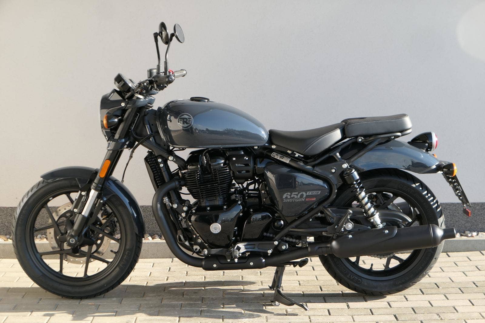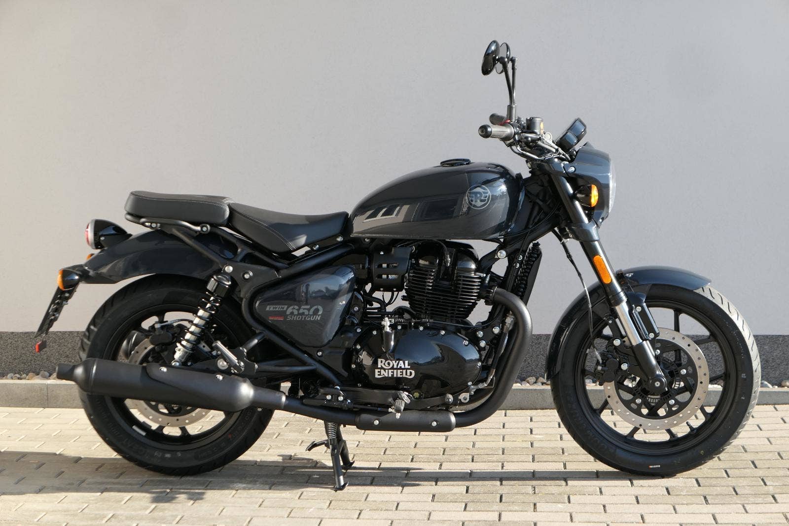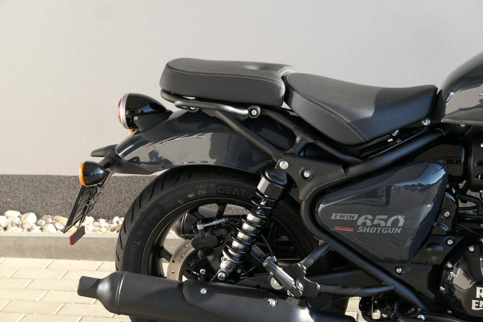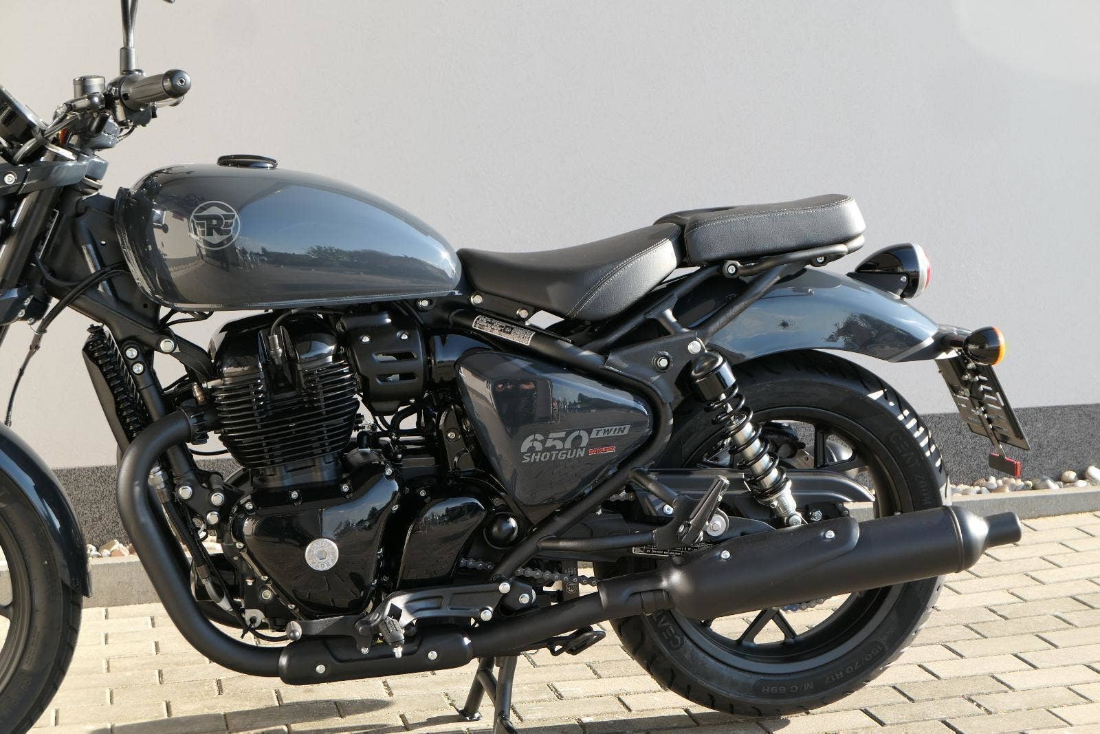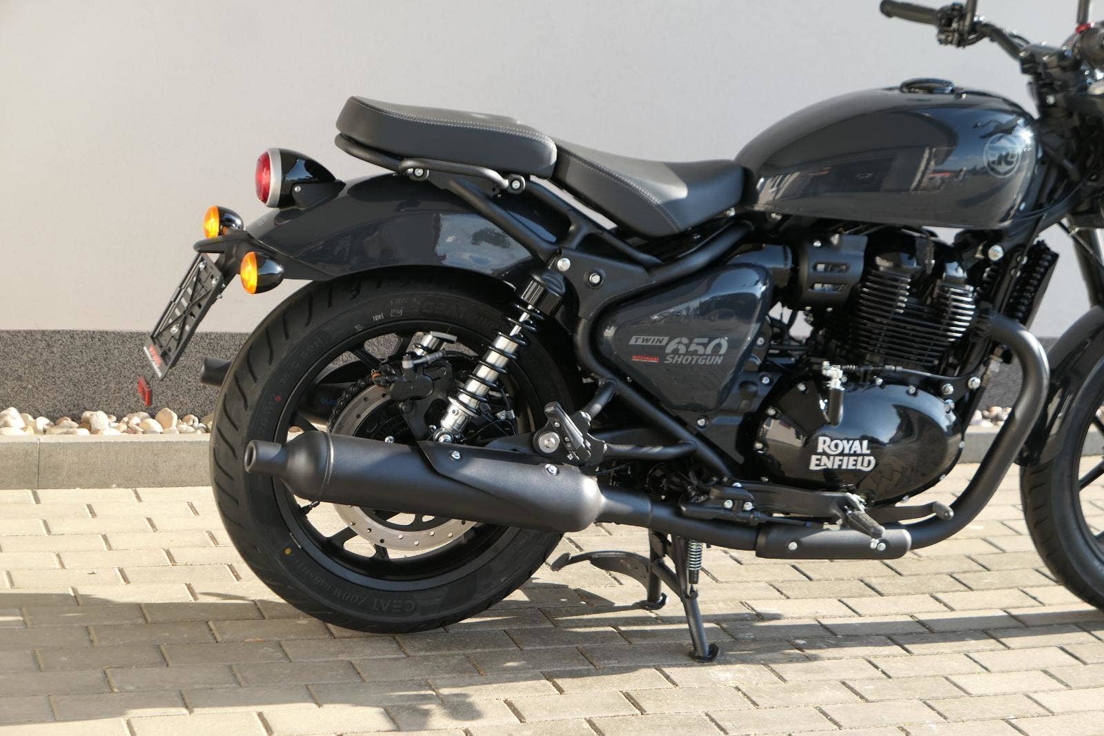 Nový Royal Enfield Shotgun 650 je motocykl, který je definován svým jezdcem. Jeho zcela nová karoserie a postoj jsou prázdným plátnem, které se vzpírá tradiční kategorizaci motocyklů a přebírá osobnost svého jezdce. Jeho modulární konstrukce umožňuje snadné přepínání mezi třemi režimy - od jednomístného přes dvoumístný až po cestovní vůz pro přepravu zavazadel. Otočením klíčku se odklopí sedadlo spolujezdce, což nabízí maximální flexibilitu. Těm, kteří hledají poutavou a agresivní jízdu, nebo těm, kteří hledají pohodovější zážitek, Shotgun 650 bez námahy vyhoví svou vzpřímenou a jistou jízdní pozicí, která podporuje obojí a přizpůsobuje se náladě a stylu jízdy jezdce. Kombinuje retro-futuristický design s moderními prvky. LED světlomet umístěný v nádherné neomoderní gondole na zakázku zůstává věrný estetice neo-retro fúze a zároveň nabízí lepší viditelnost. Motocykl je vybaven digitálně-analogovým sdruženým přístrojem, který je vybaven navigačním systémem Tripper a je navržen tak, aby poskytoval všechny informace, které potřebujete, když se vydáte na cestu. Je také vybaven nabíjecím portem USB, abyste měli svá zařízení na cestách stále nabitá.