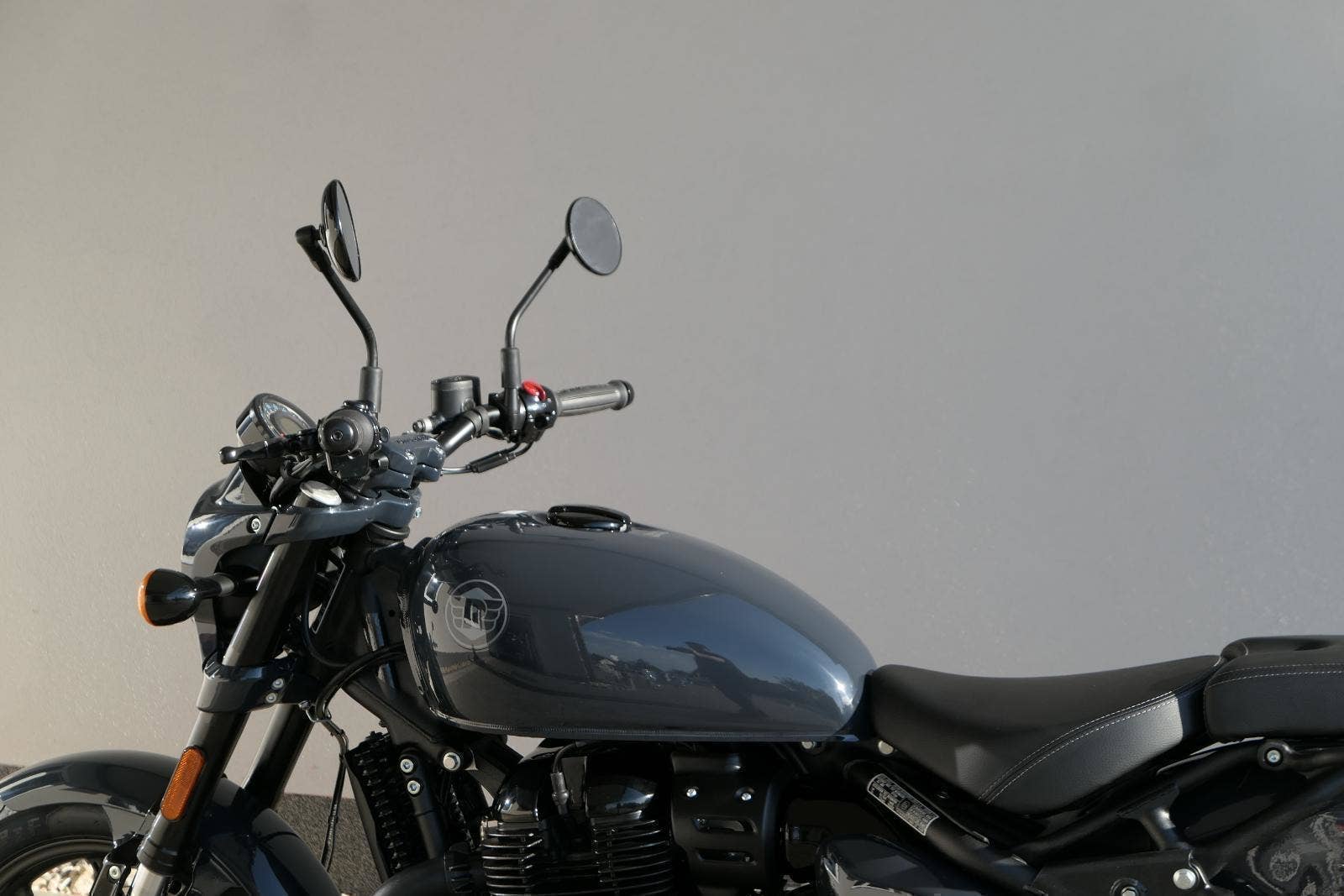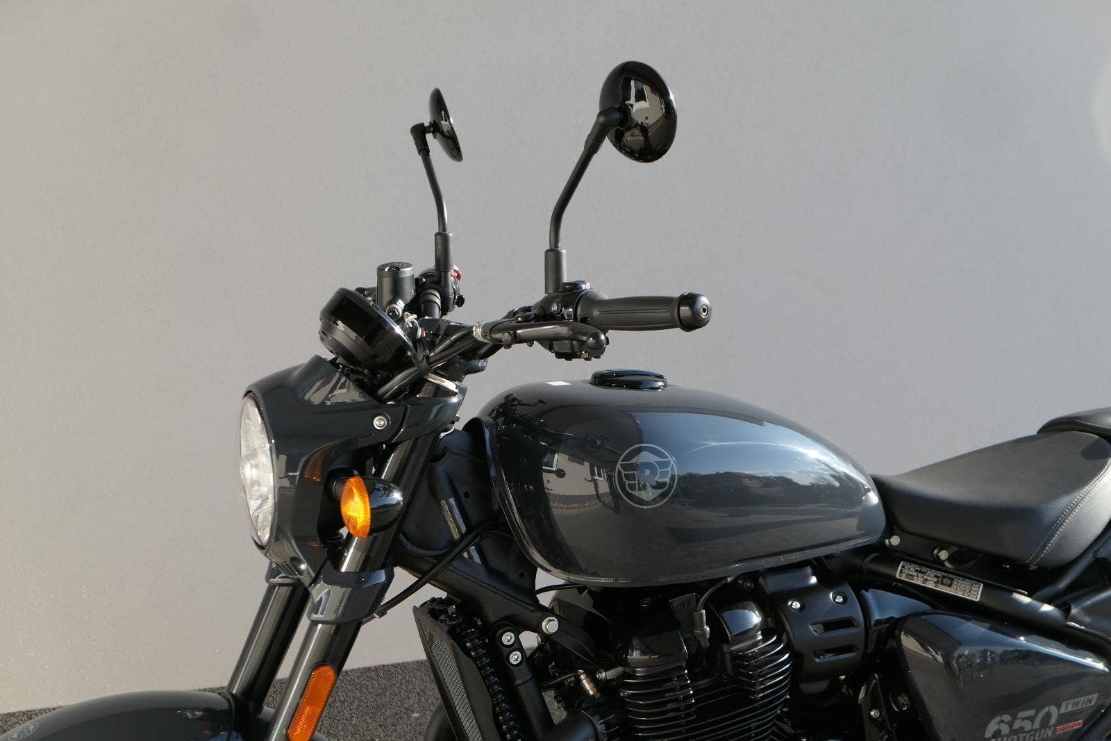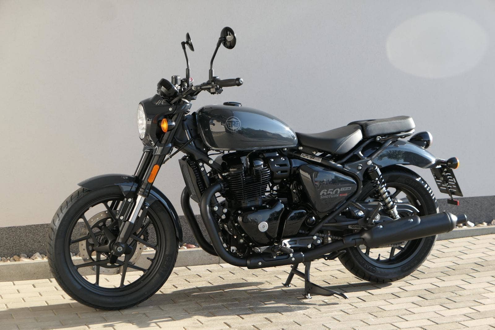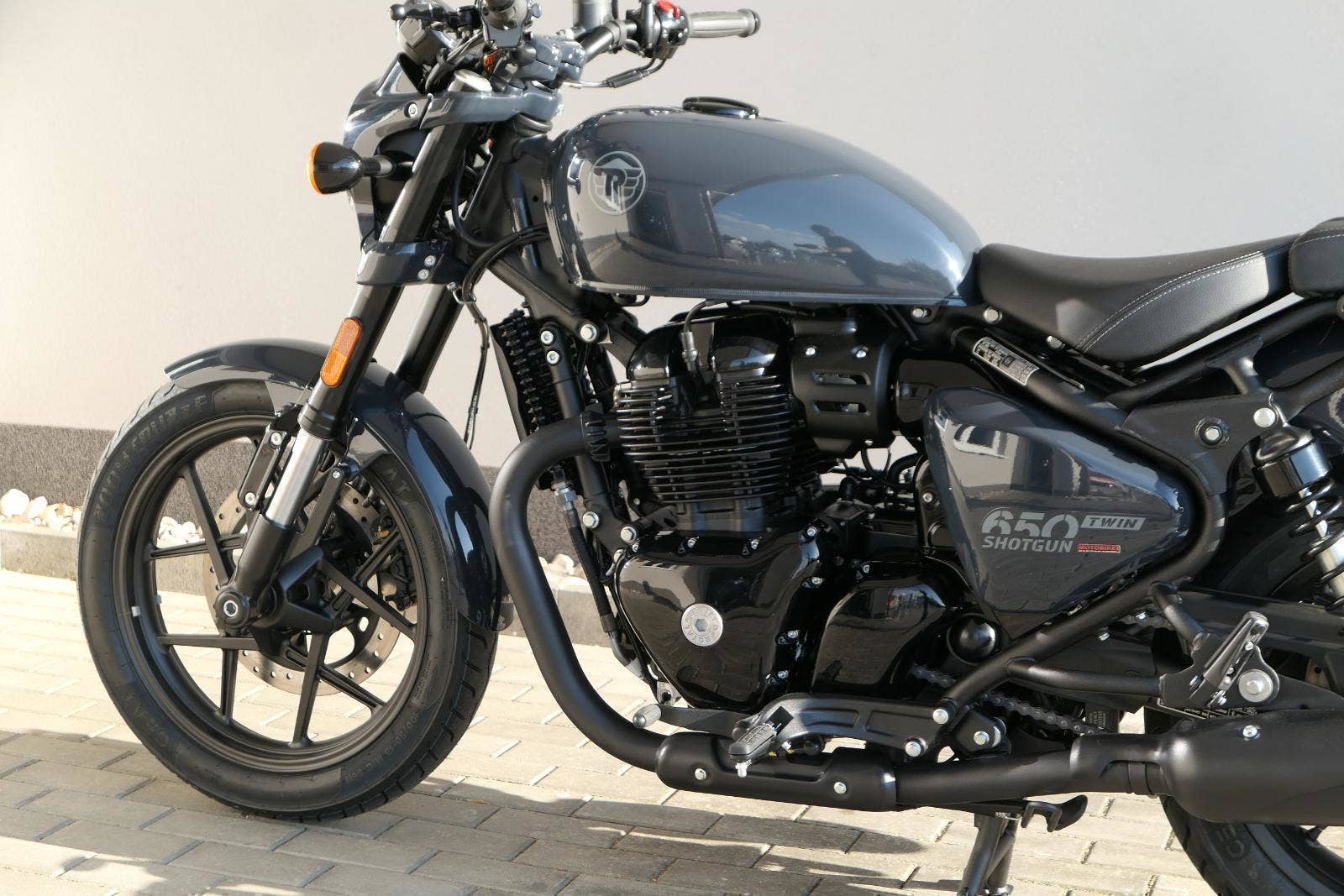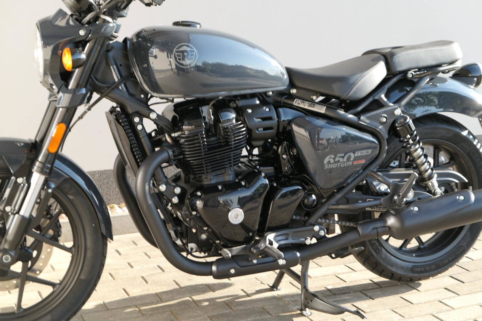 Nový Royal Enfield Shotgun 650 je motocykl, který je definován svým jezdcem. Jeho zcela nová karoserie a postoj jsou prázdným plátnem, které se vzpírá tradiční kategorizaci motocyklů a přebírá osobnost svého jezdce. Jeho modulární konstrukce umožňuje snadné přepínání mezi třemi režimy - od jednomístného přes dvoumístný až po cestovní vůz pro přepravu zavazadel. Otočením klíčku se odklopí sedadlo spolujezdce, což nabízí maximální flexibilitu. Těm, kteří hledají poutavou a agresivní jízdu, nebo těm, kteří hledají pohodovější zážitek, Shotgun 650 bez námahy vyhoví svou vzpřímenou a jistou jízdní pozicí, která podporuje obojí a přizpůsobuje se náladě a stylu jízdy jezdce. Kombinuje retro-futuristický design s moderními prvky. LED světlomet umístěný v nádherné neomoderní gondole na zakázku zůstává věrný estetice neo-retro fúze a zároveň nabízí lepší viditelnost. Motocykl je vybaven digitálně-analogovým sdruženým přístrojem, který je vybaven navigačním systémem Tripper a je navržen tak, aby poskytoval všechny informace, které potřebujete, když se vydáte na cestu. Je také vybaven nabíjecím portem USB, abyste měli svá zařízení na cestách stále nabitá.