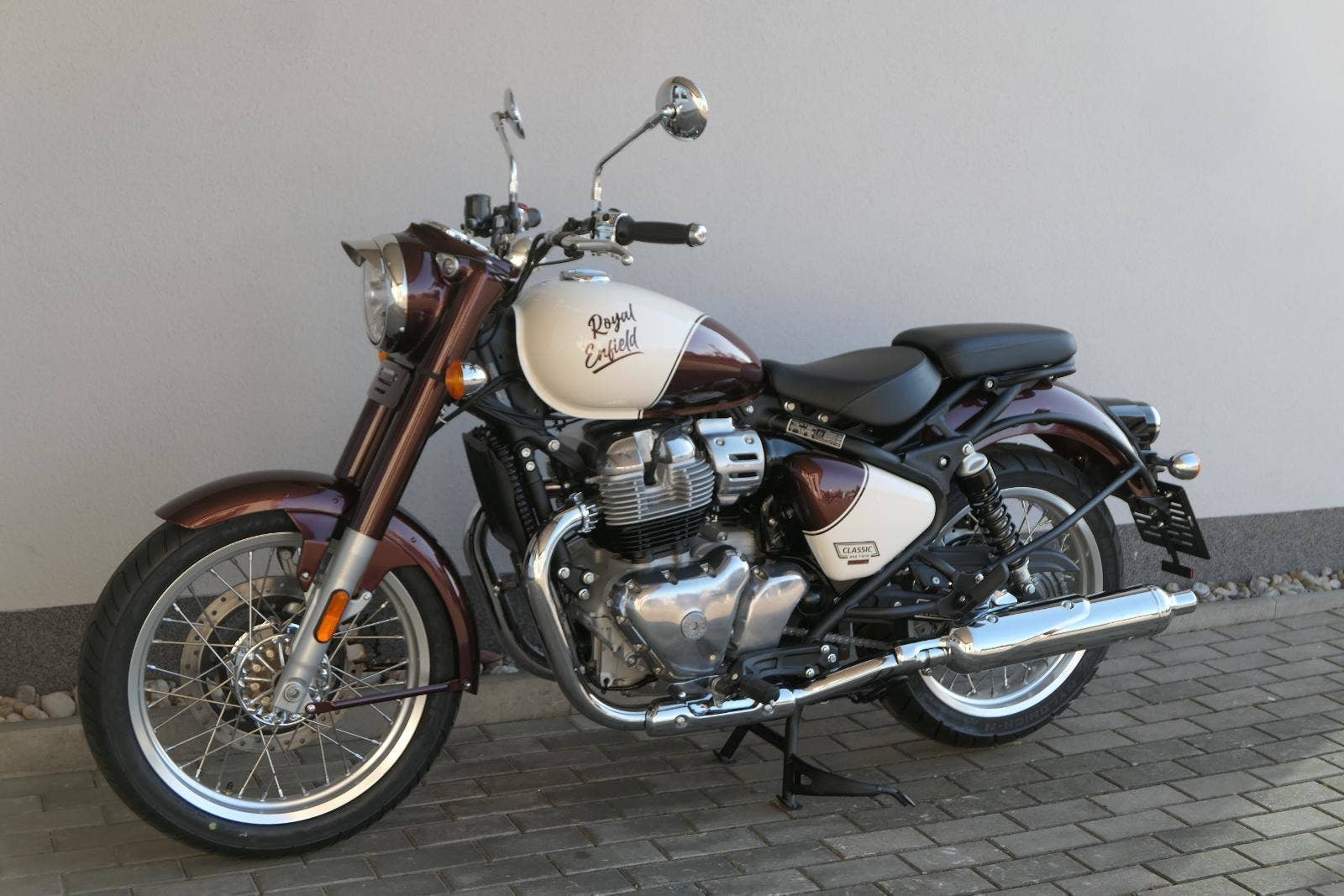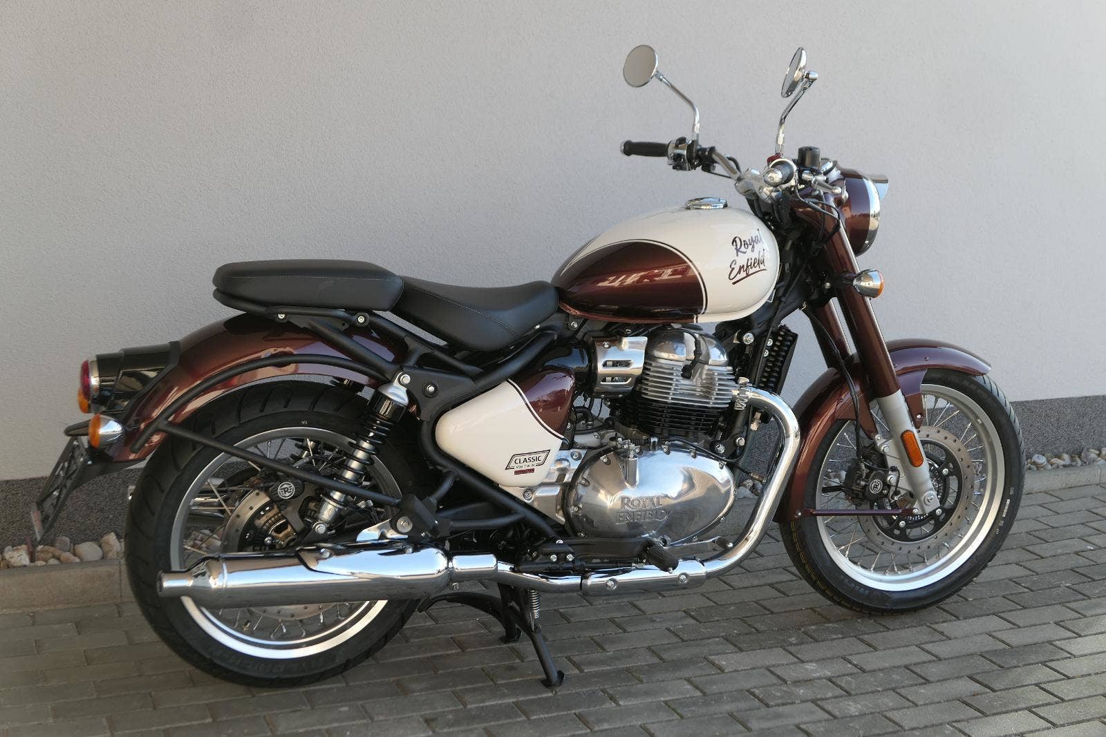 -sebejistotu a plynulost jízdy bez ohledu na to, kam máte namířeno, zajistí ověřené přední odpružení modelu Classic 650 i dvoutrubkové hydraulické zadní odpružení od společnosti Showa.