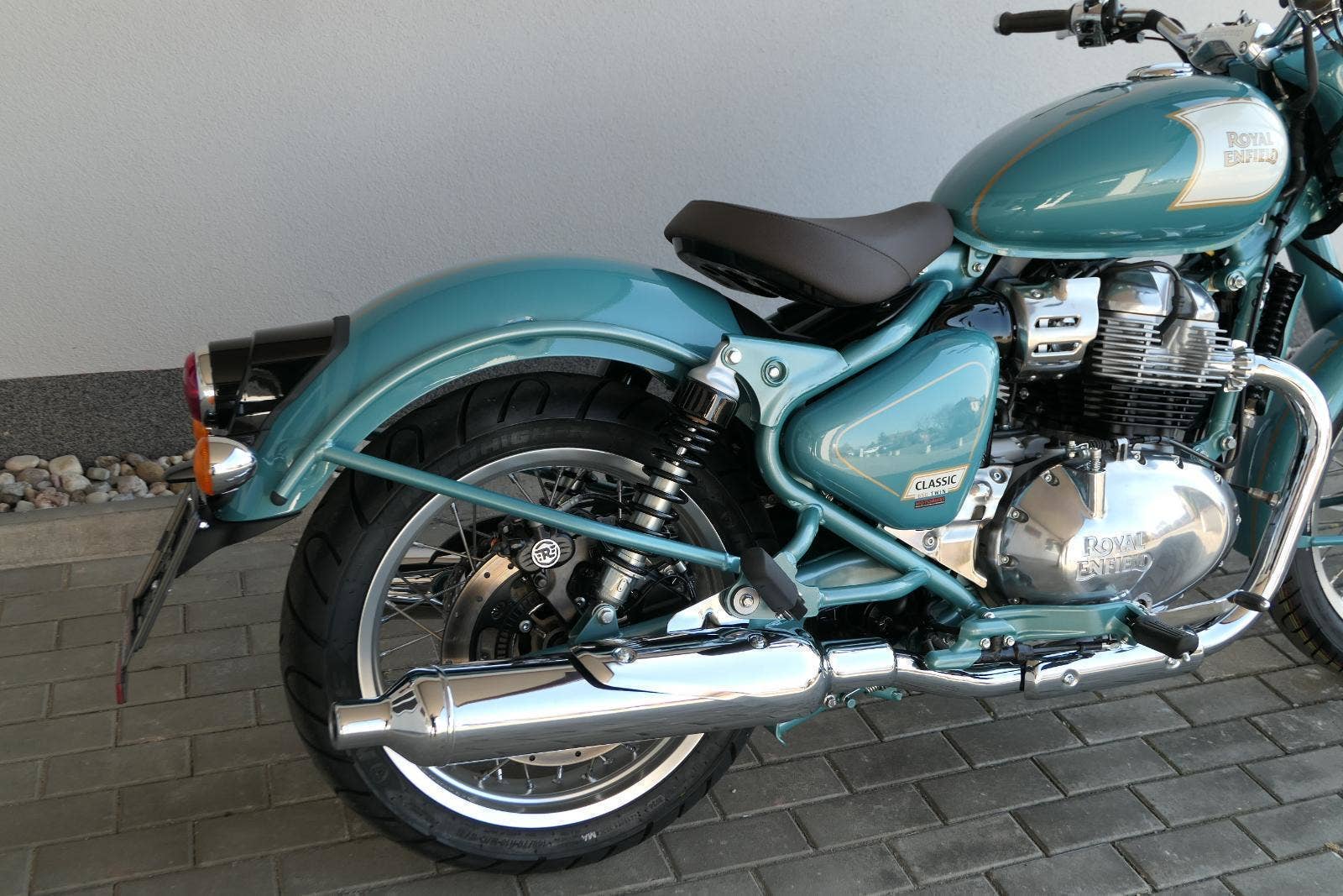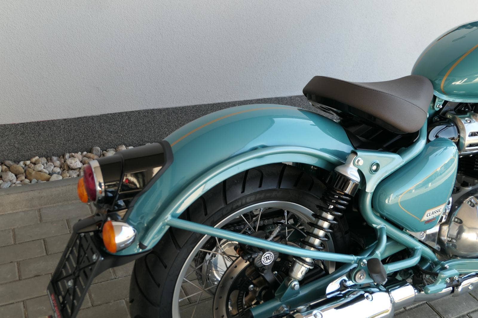 -sebejistotu a plynulost jízdy bez ohledu na to, kam máte namířeno, zajistí ověřené přední odpružení modelu Classic 650 i dvoutrubkové hydraulické zadní odpružení od společnosti Showa.
