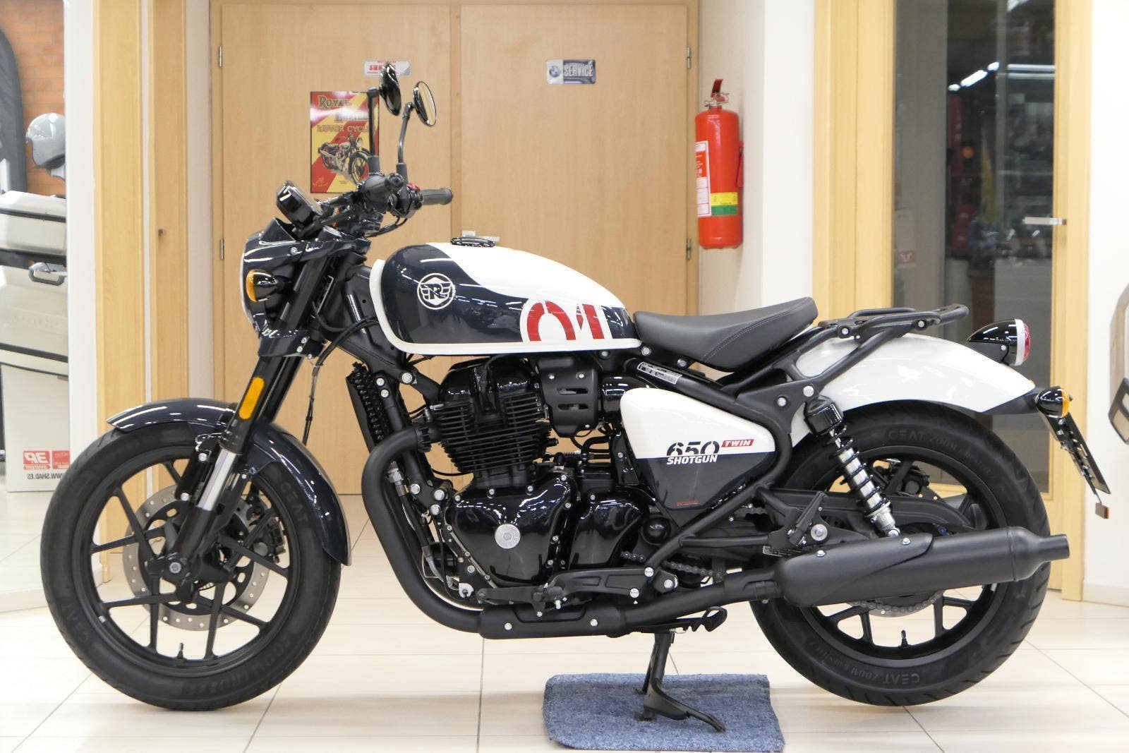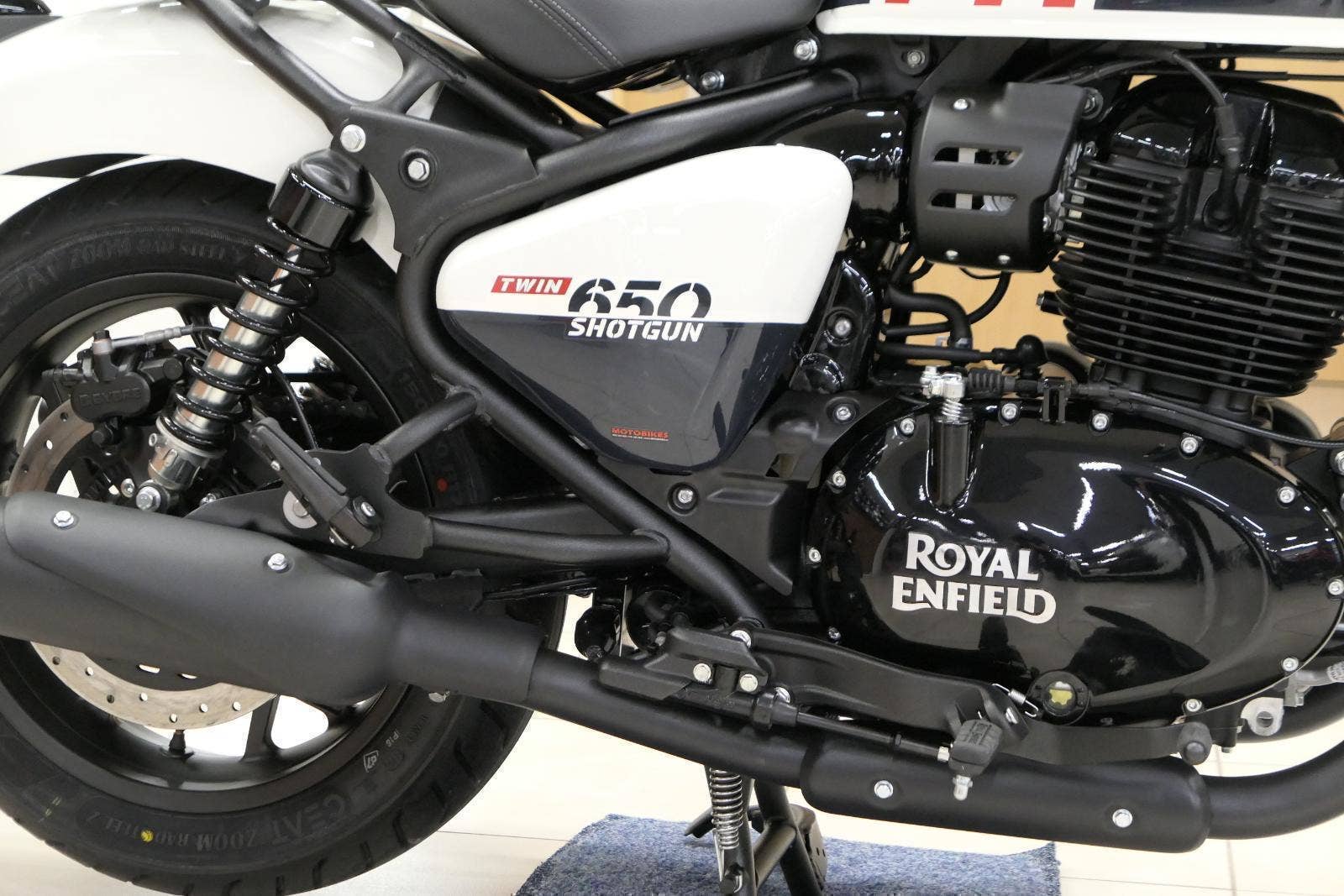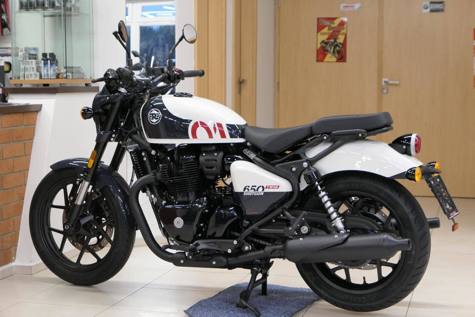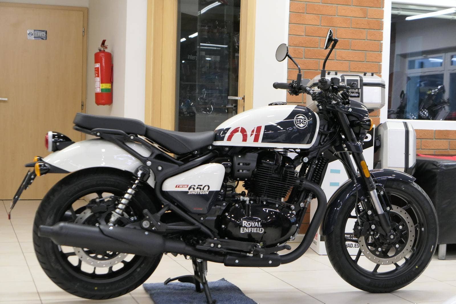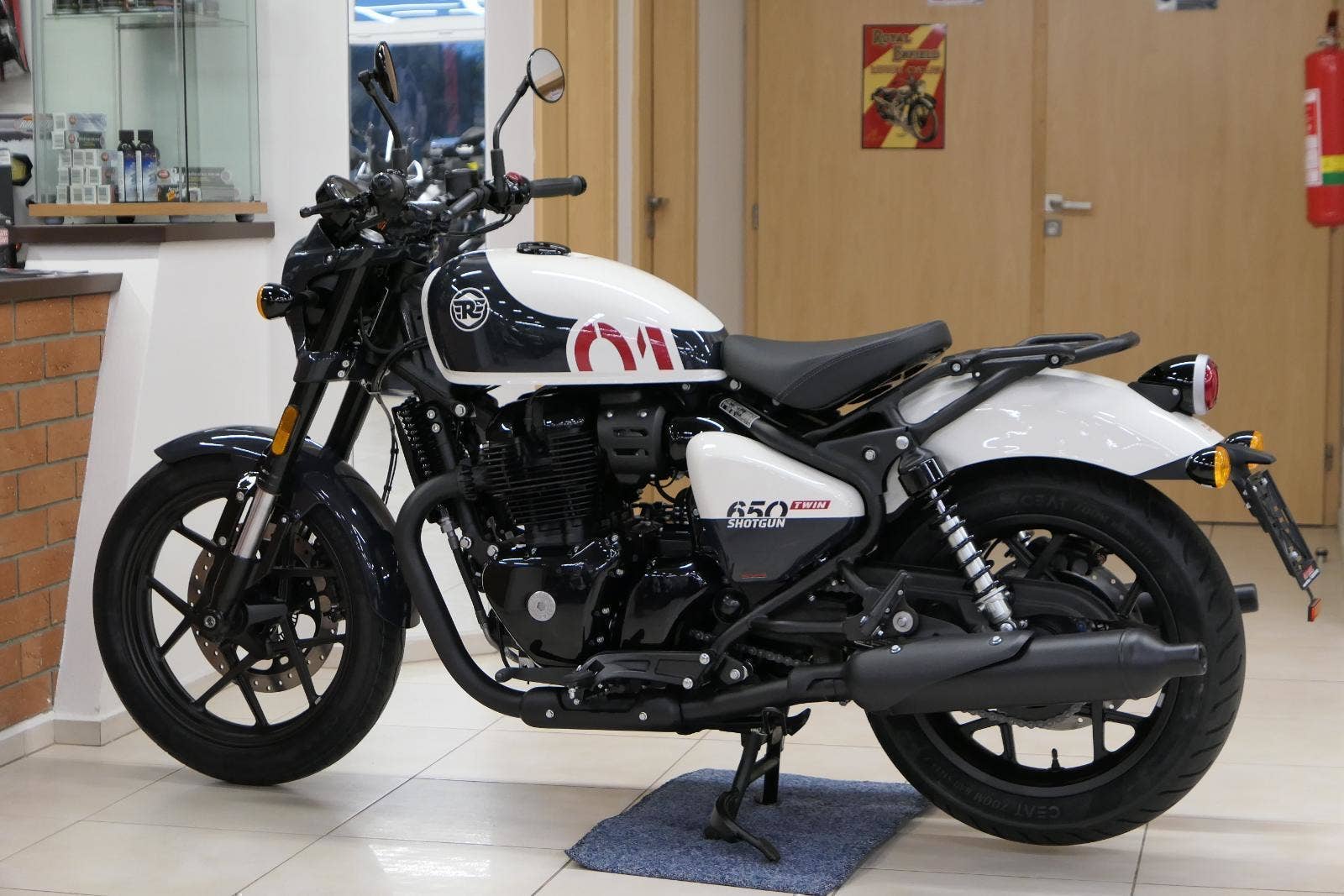 Nový Royal Enfield Shotgun 650 je motocykl, který je definován svým jezdcem. Jeho zcela nová karoserie a postoj jsou prázdným plátnem, které se vzpírá tradiční kategorizaci motocyklů a přebírá osobnost svého jezdce. Jeho modulární konstrukce umožňuje snadné přepínání mezi třemi režimy - od jednomístného přes dvoumístný až po cestovní vůz pro přepravu zavazadel. Otočením klíčku se odklopí sedadlo spolujezdce, což nabízí maximální flexibilitu. Těm, kteří hledají poutavou a agresivní jízdu, nebo těm, kteří hledají pohodovější zážitek, Shotgun 650 bez námahy vyhoví svou vzpřímenou a jistou jízdní pozicí, která podporuje obojí a přizpůsobuje se náladě a stylu jízdy jezdce. Kombinuje retro-futuristický design s moderními prvky. LED světlomet umístěný v nádherné neomoderní gondole na zakázku zůstává věrný estetice neo-retro fúze a zároveň nabízí lepší viditelnost. Motocykl je vybaven digitálně-analogovým sdruženým přístrojem, který je vybaven navigačním systémem Tripper a je navržen tak, aby poskytoval všechny informace, které potřebujete, když se vydáte na cestu. Je také vybaven nabíjecím portem USB, abyste měli svá zařízení na cestách stále nabitá.